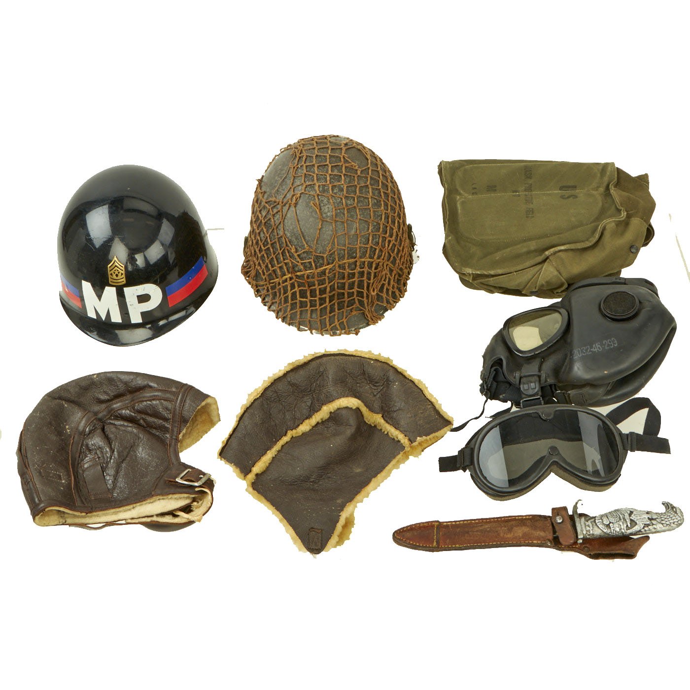 Original & Reproduction Items: Only One Set Available. Recently acquired from a large military collection purchase, this is a very nice set of original & reproduction items, including helmets, a hat, and bayonets. Over the years many collectors assembly a wide variety of original and reproduction items, as well as post war items. We are offering these items as collector's sets, which can then be researched and used to maybe give some budding collector a start. We will try to note which items are original and reproduction, but cannot guarantee accuracy. Some of these may have been produced or modified for reenactment use. Please consult the pictures for condition and other details.