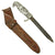 - Post War / Reproduction German WWII fighting knife made from bayonet with cast aluminum handle in leather sheath.