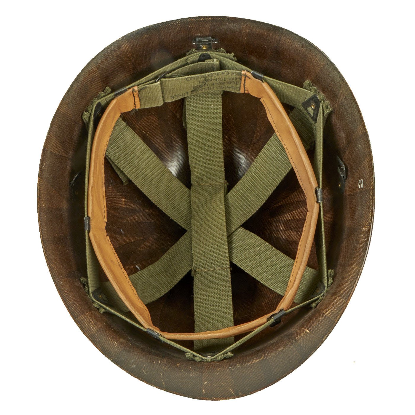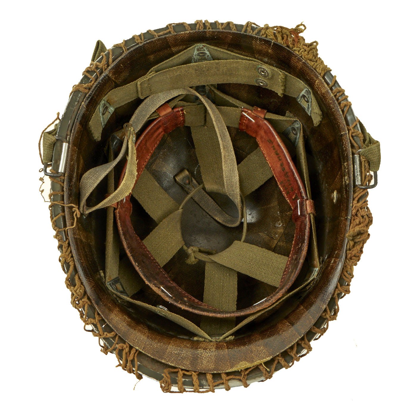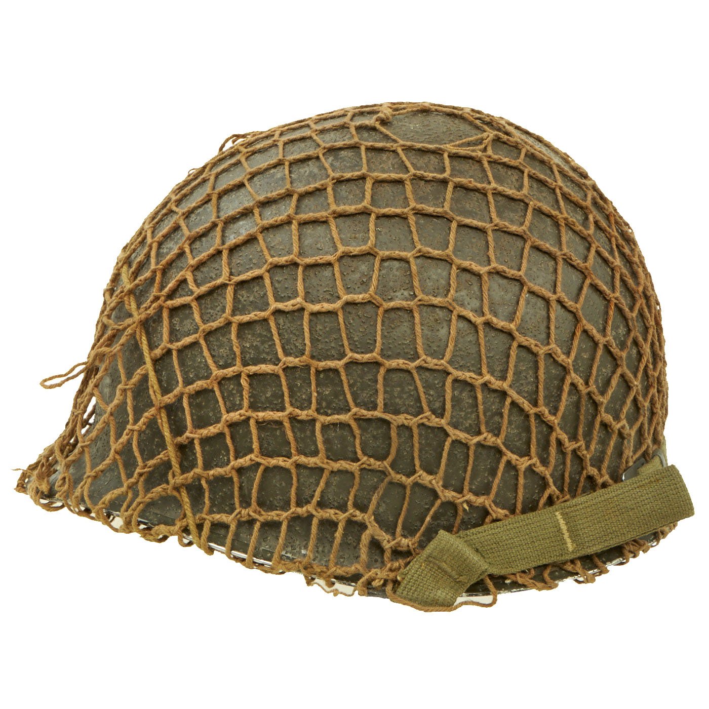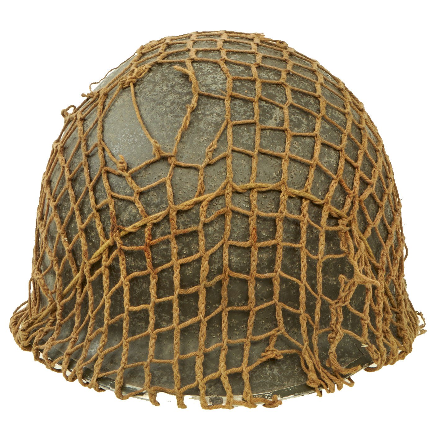 - Original WWII U.S. M1 Front Seam Swivel Bale Helmet with Helmet Net and European Liner.