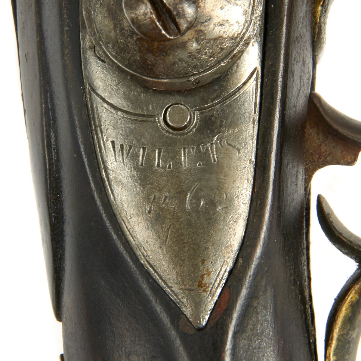 This particular example is a Pattern 1756 Long Land Flintlock Musket with a 46" Barrel and regulation brass mounts. The Lock is marked WILETS / 1762 across the tail with a CROWN over G.R. to the center although now rather faint. The barrel is engraved with 31 REGT, although that also has become faint with old corrosion. WILETS was a Birmingham, England Gun Maker to the Crown who started business in 1745.