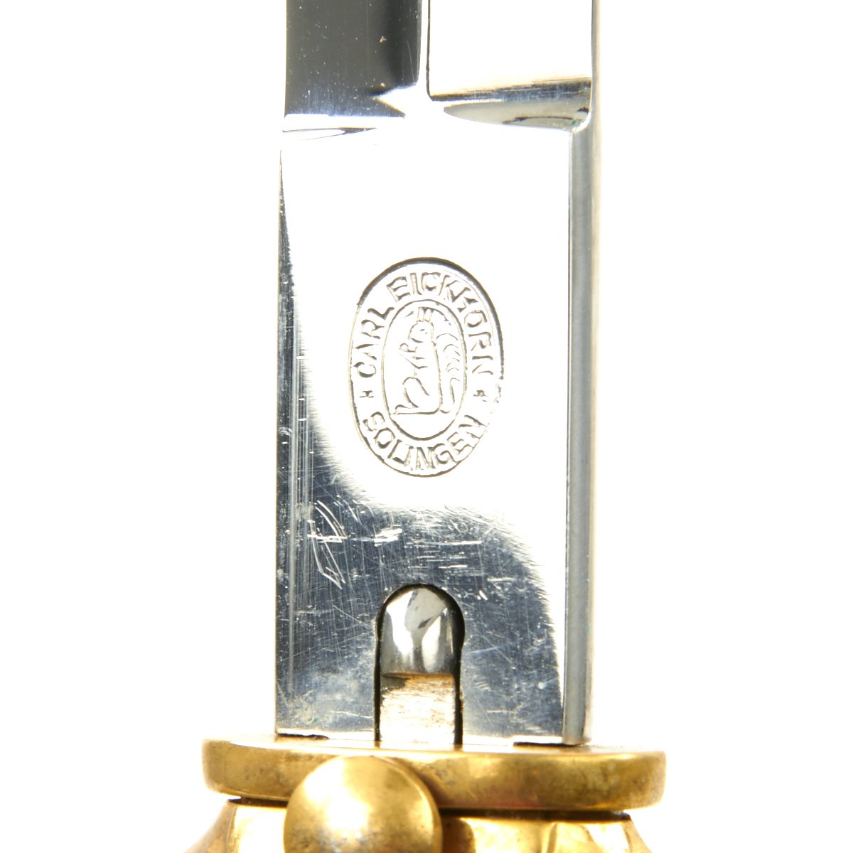 Original Item: Only One Available. This is an excellent condition Royal Dutch Airforce Model 1964 Officer's Dagger (KLu officiers ponjaard 1964). The double edged blade is in near mint condition, the ricasso is nicely maker marked with a Eickhorn squirrel logo and the company name Carl Eickhorn of Solingen, Germany.