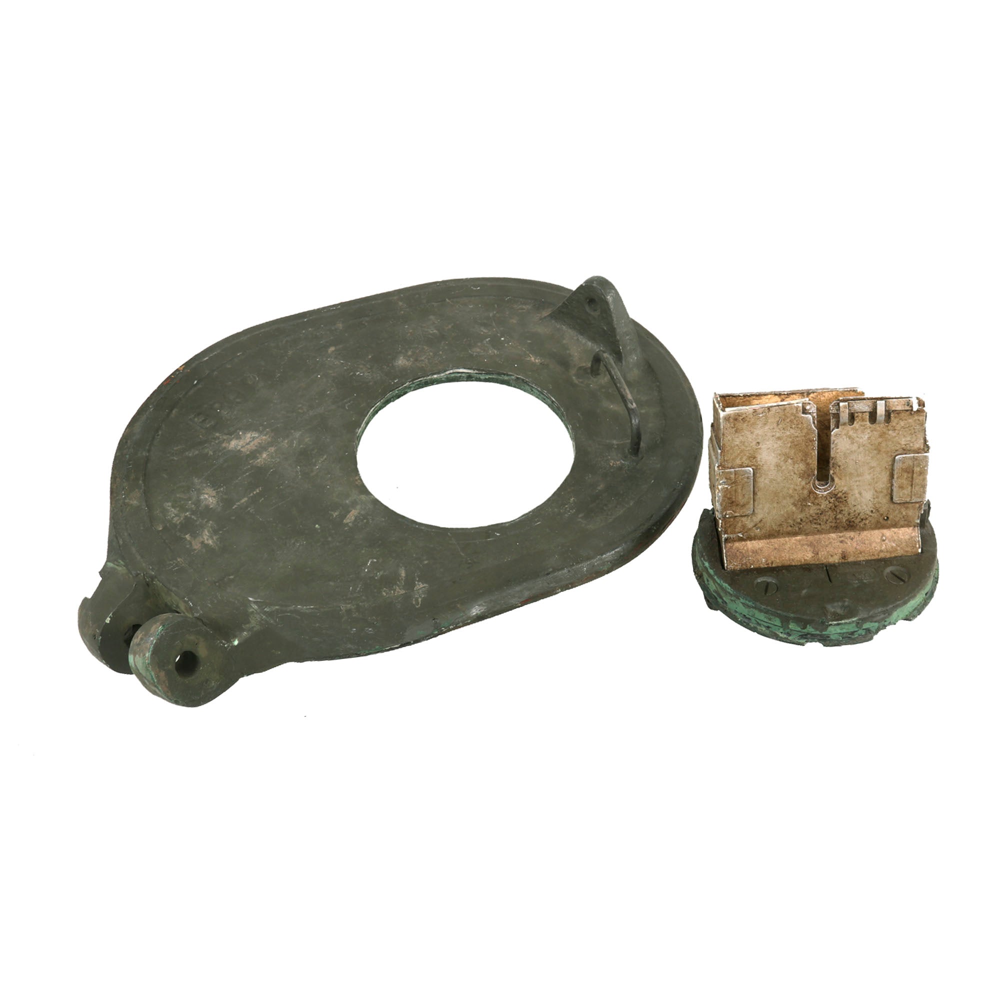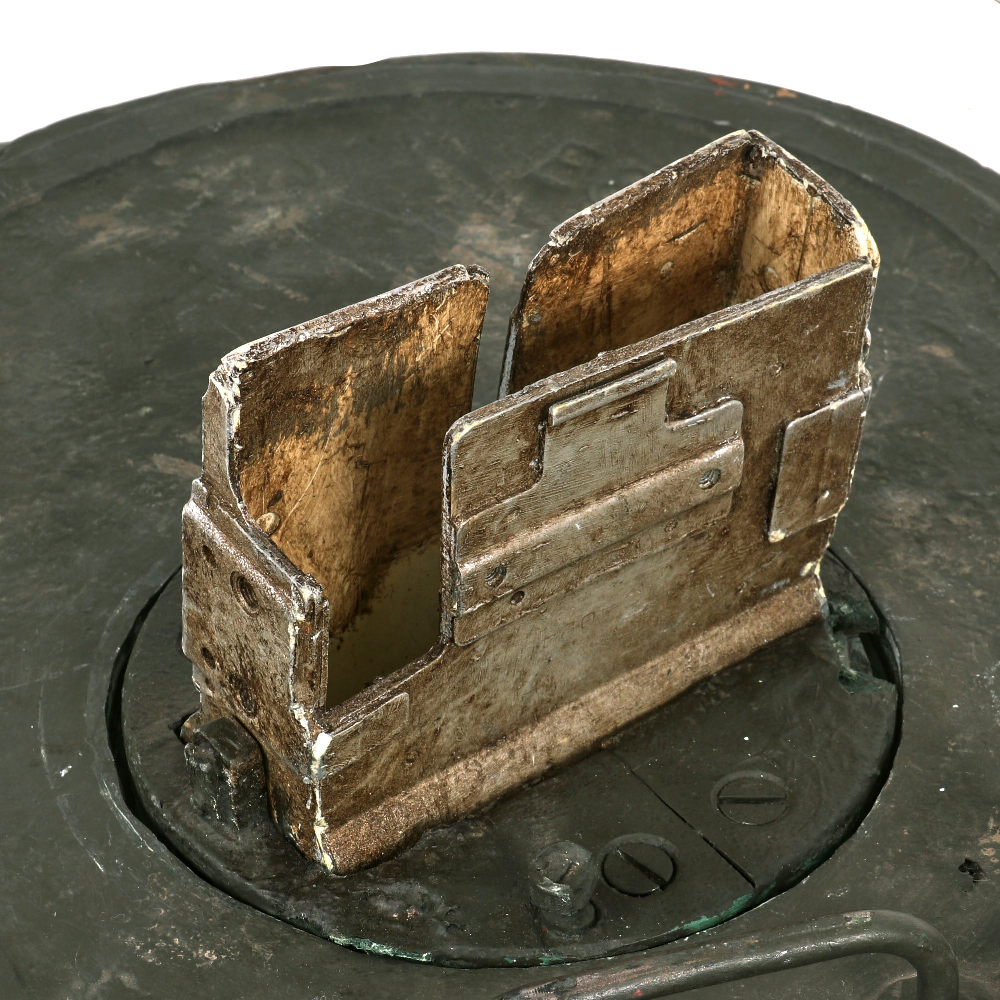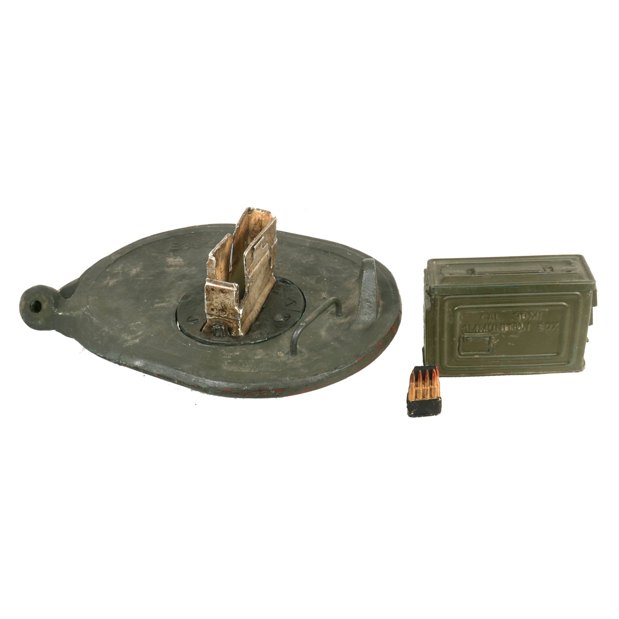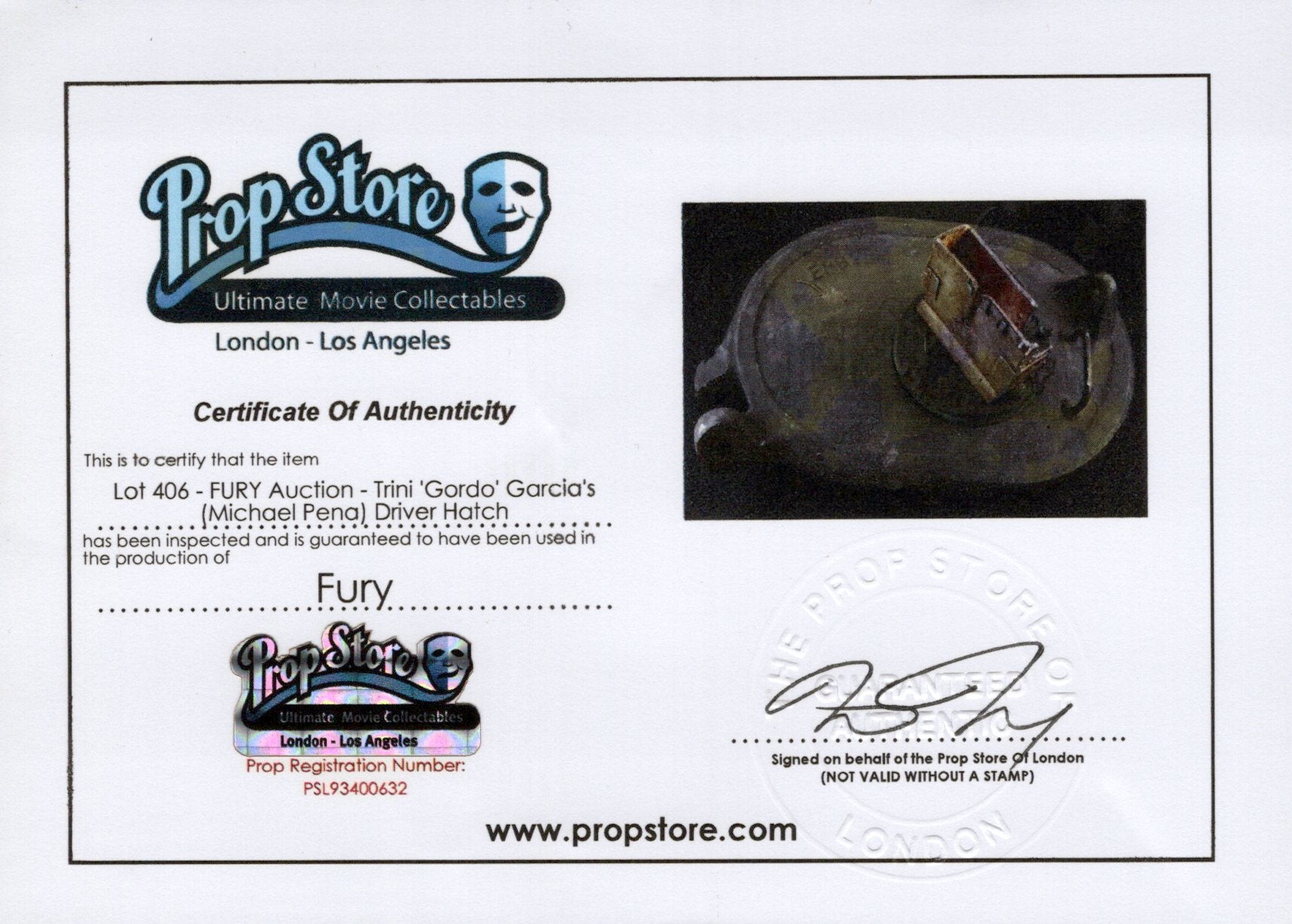 Original Item. Only One Available. This is a great set of full-scale rubber film props used in the 2014 World War II Film Fury, starring Brad Pitt & Michael Peña. The props include a fully-rubber .30M1 Ammunition box, a rubber Mannlicher-style clip for an M1 Garand Rifle, and the driver hatch as used in the film by Trini ‘Gordo’ Garcia played by Michael Peña. The latter pierce comes with a Certificate of Authenticity confirming it as this exact piece.