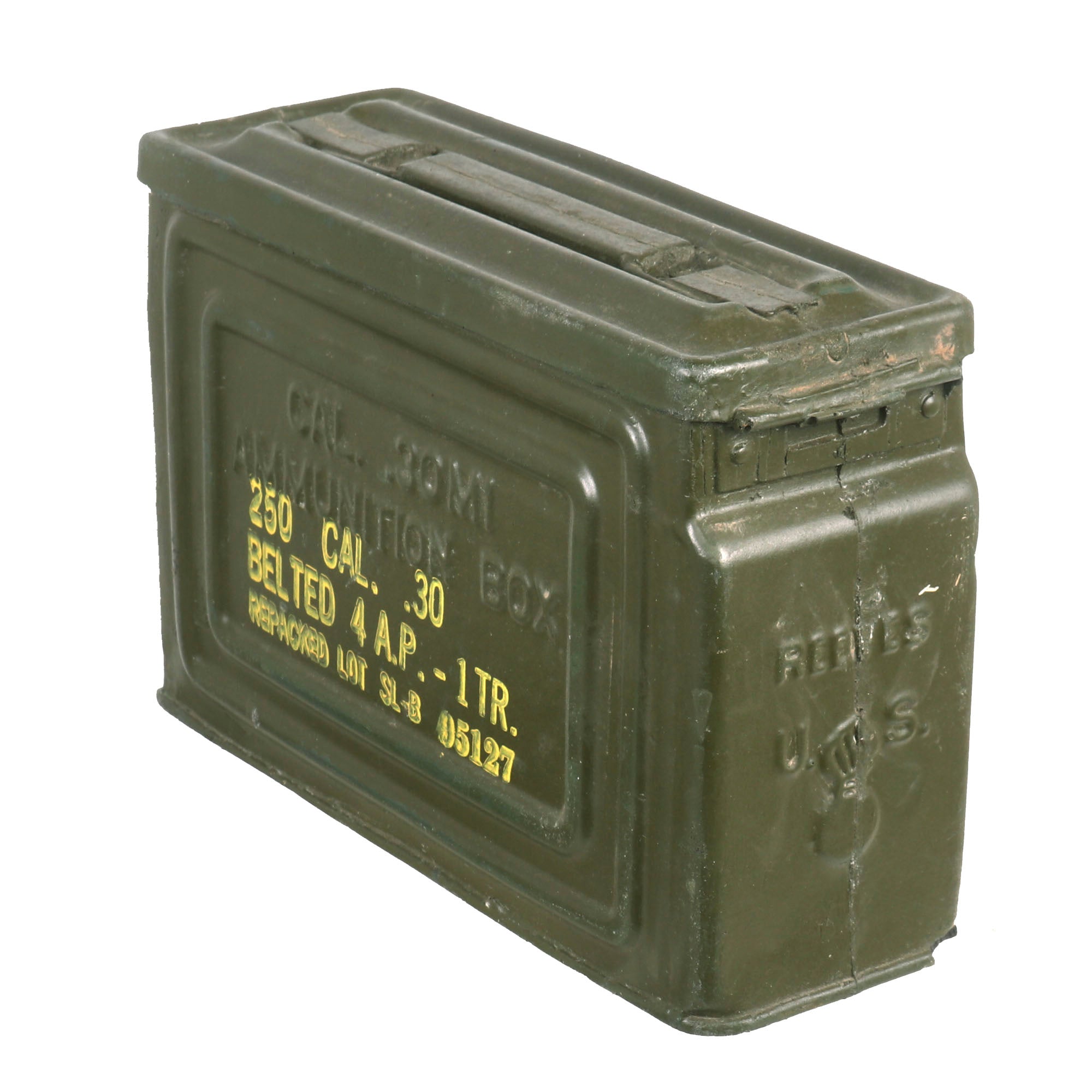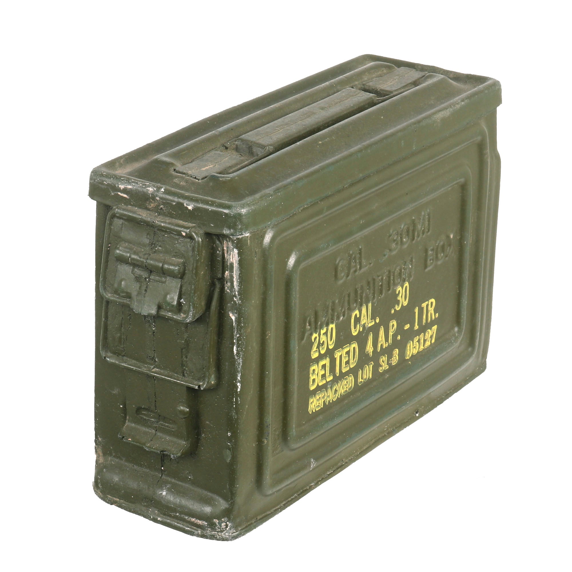 The ammunition box measures 10½ x 3⅝ x 6¾”, the Garand clip measures 3¼ x 2 x 1”, and the driver’s hatch without the insert measures 25 x 18 x 6”.