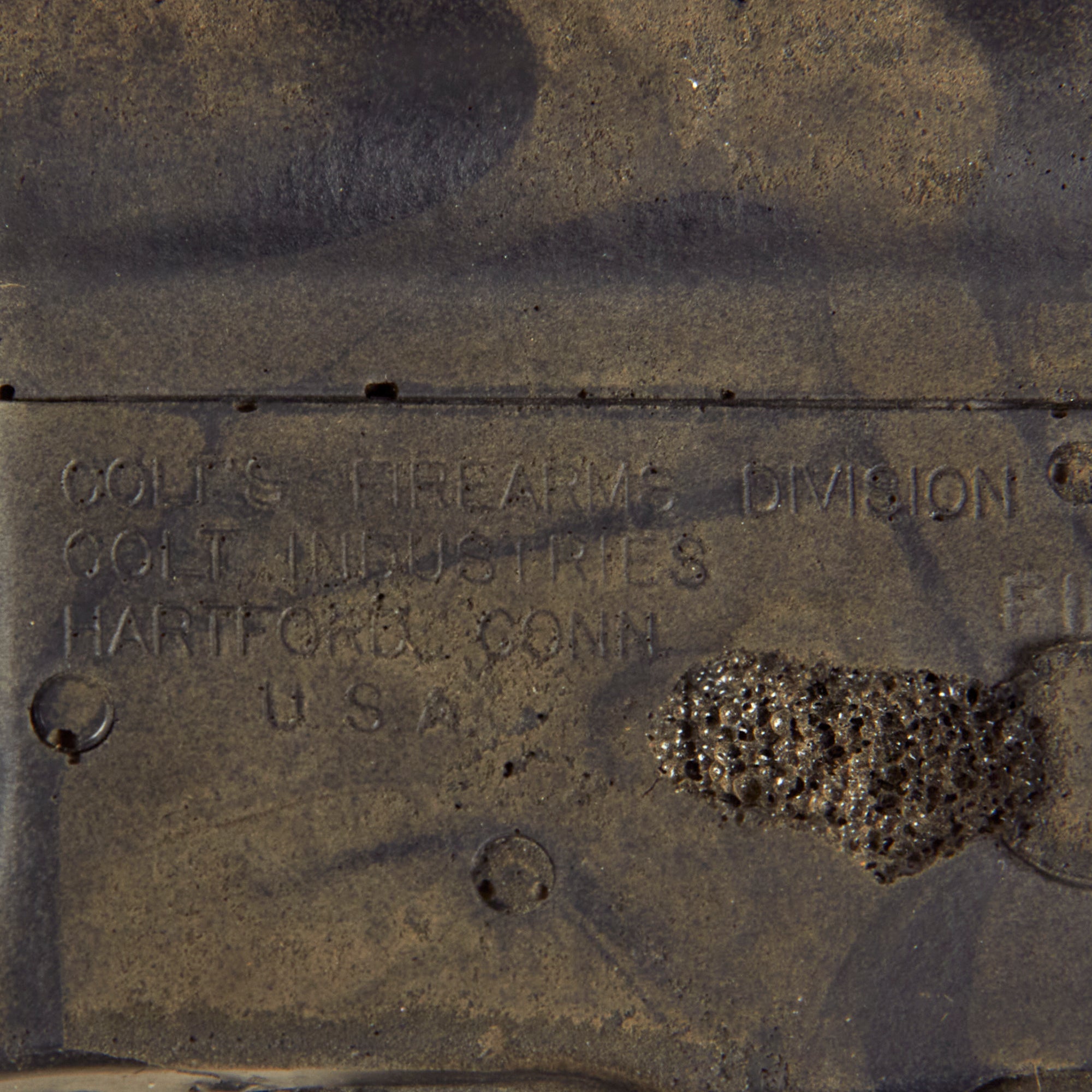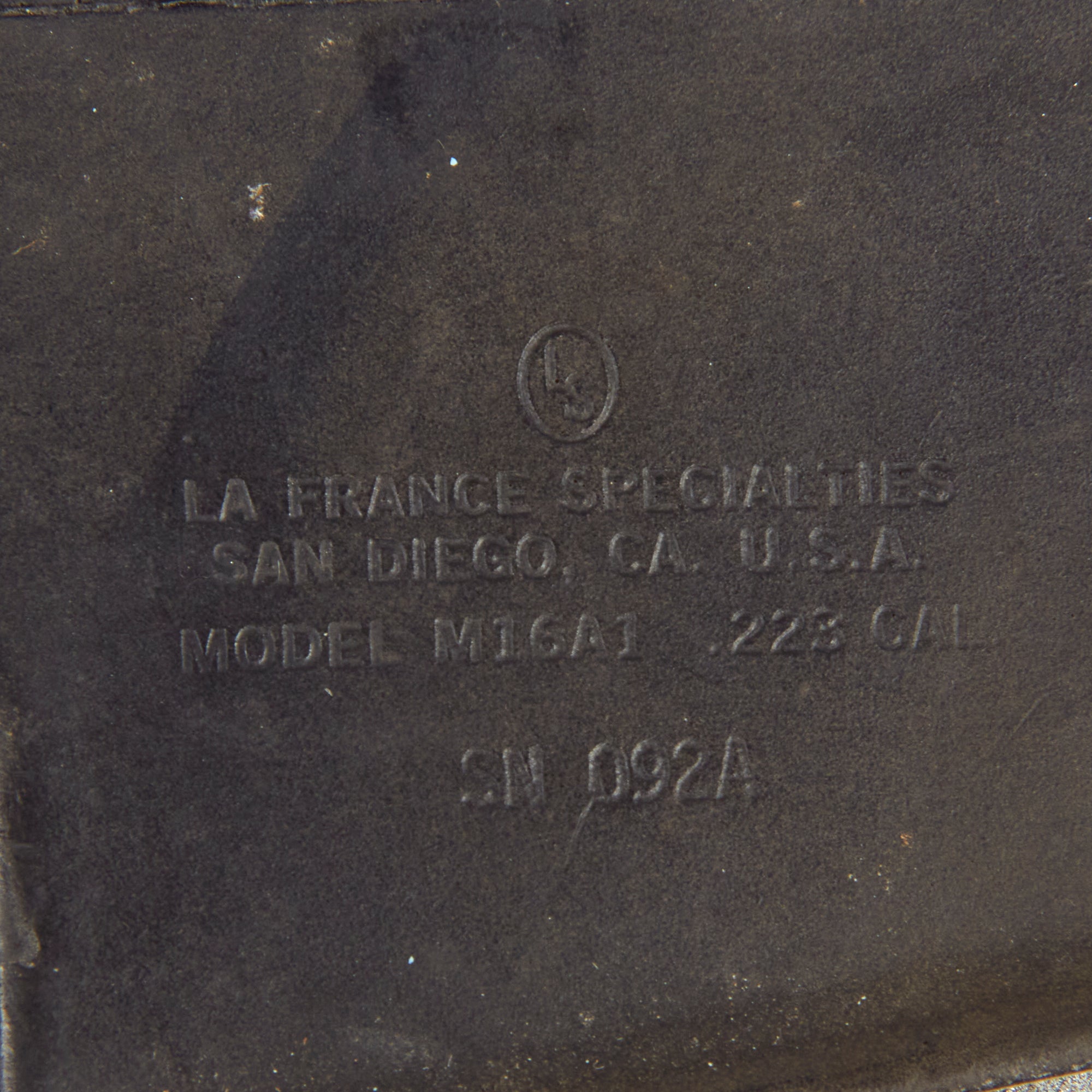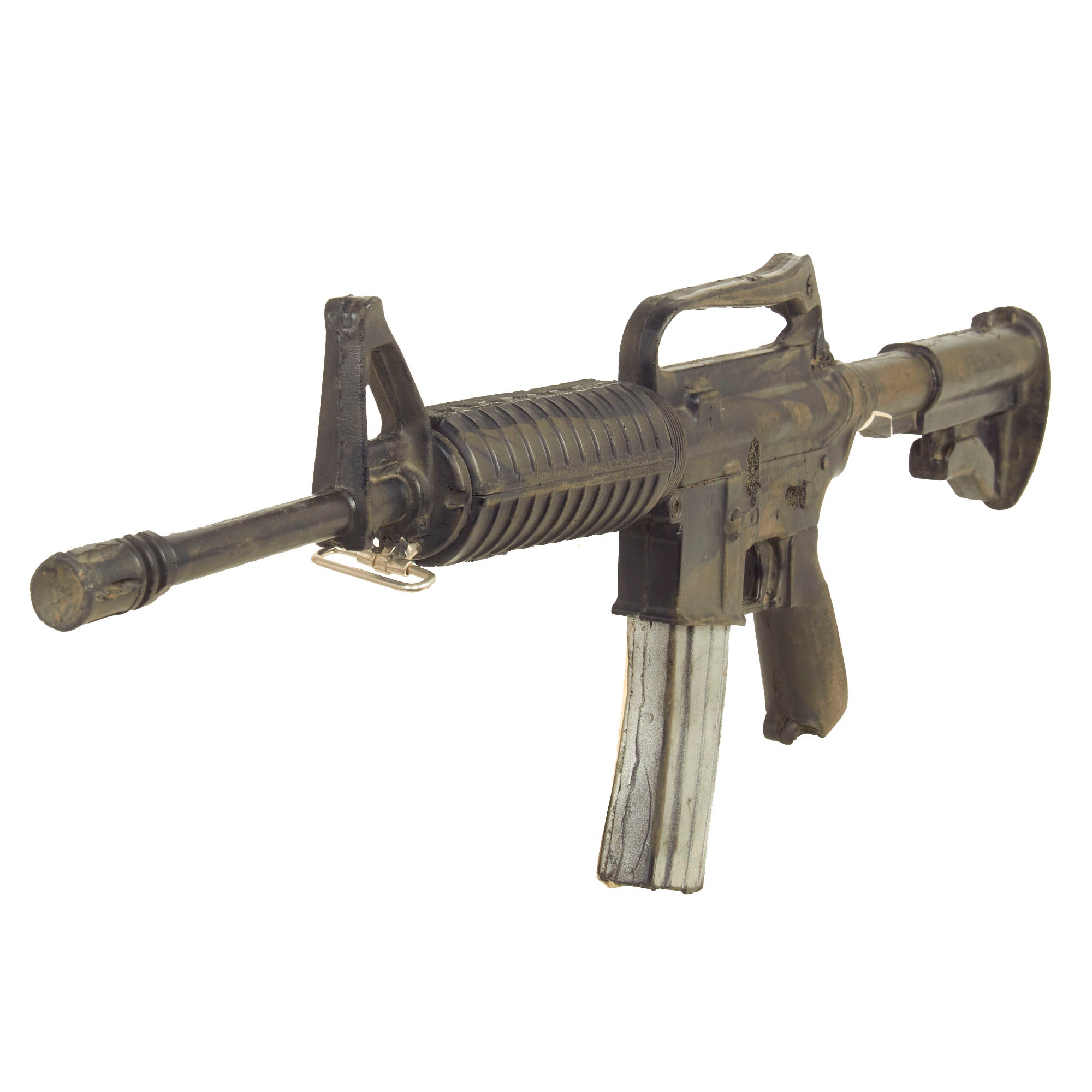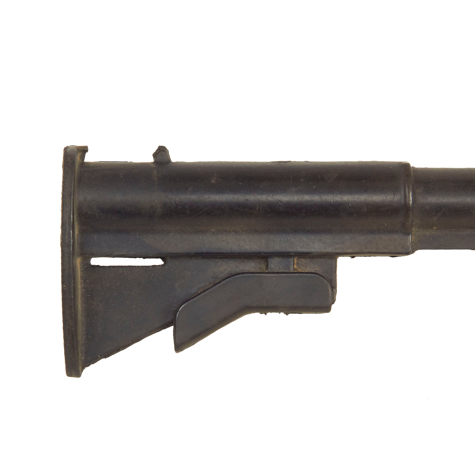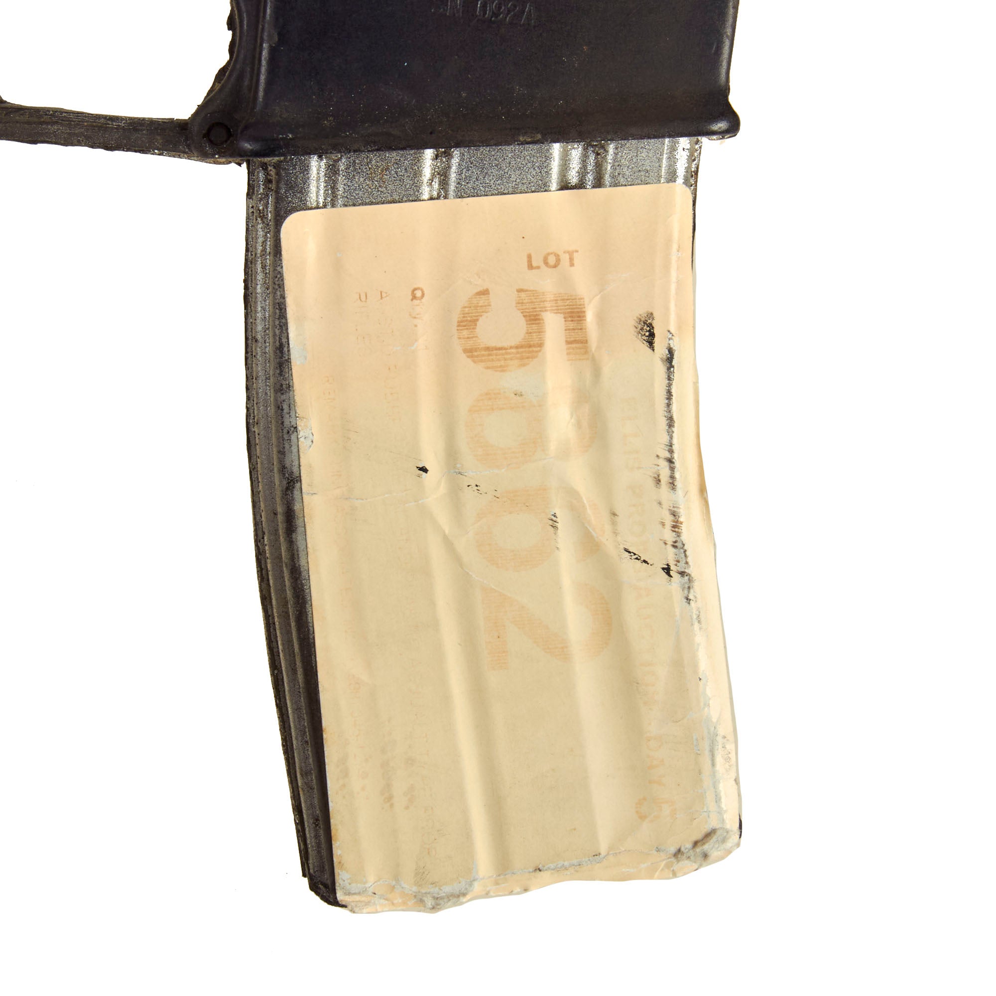 This all rubber example was acquired from the Ellis Props and Graphics liquidation auction. Ellis was the oldest and the largest Prop House in California until its liquidation auctions in late 1999 and early 2000. The fixed magazine still retains the original Ellis Props auction tag and reads as LOT 5862 Day 5.