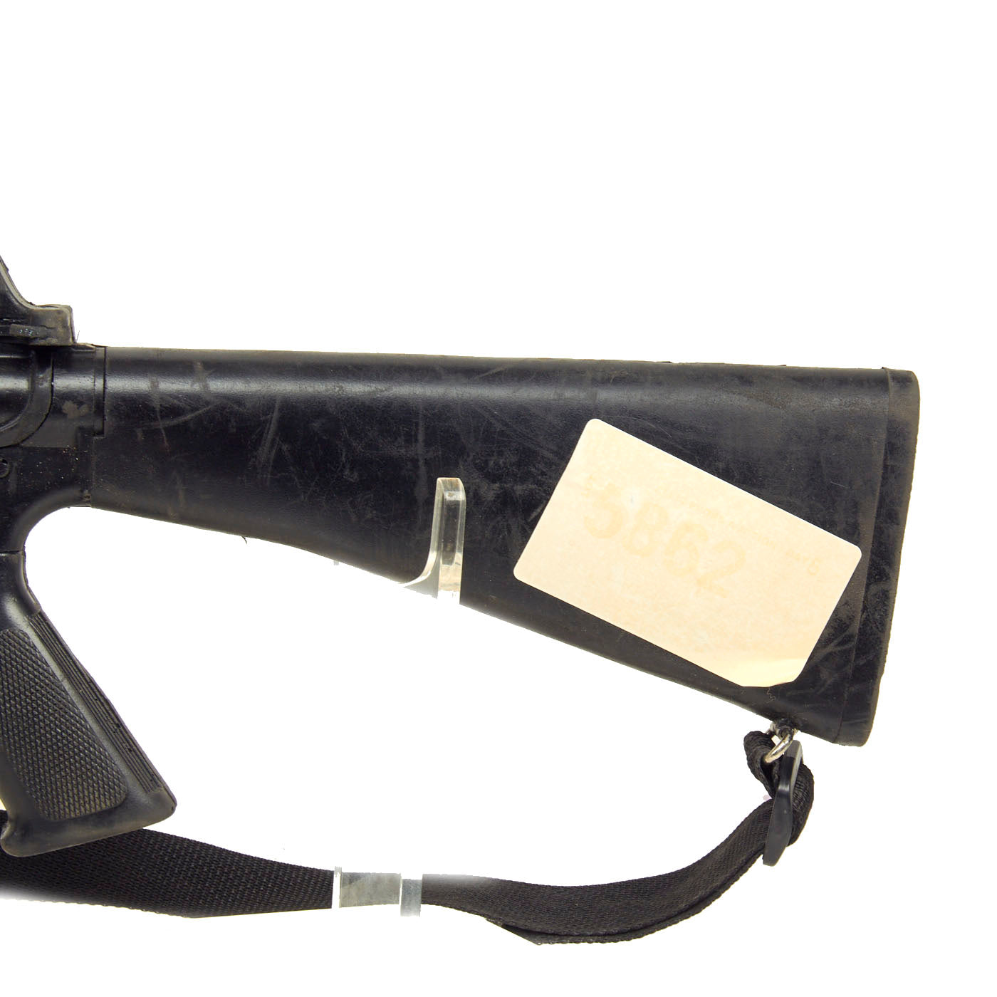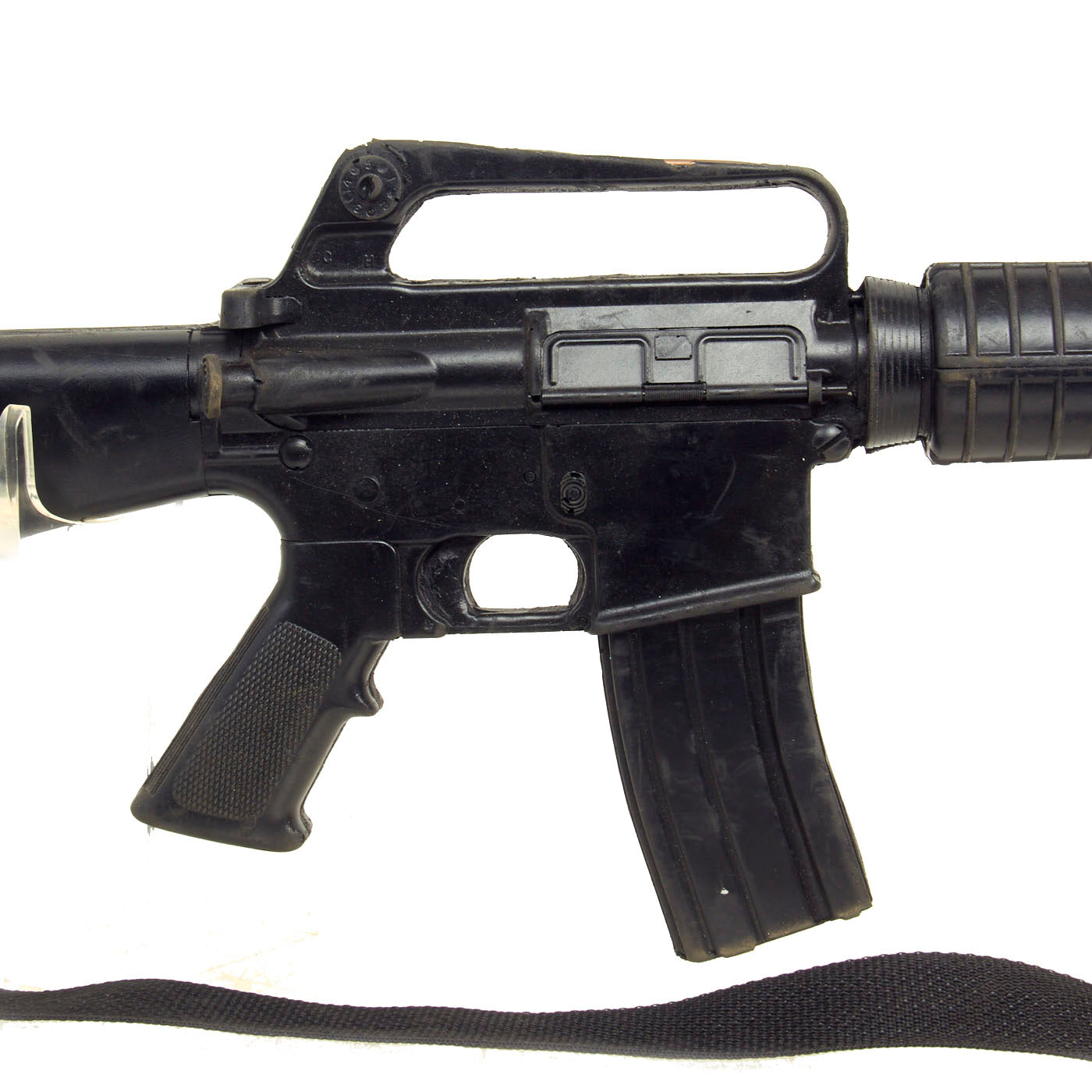 This all rubber example was acquired from the Ellis Props and Graphics liquidation auction. Ellis was the oldest and the largest Prop House in California until its liquidation auctions in late 1999 and early 2000. The original faded ELLIS AUCTION LABEL IS STILL ATTACHED to the butt stock of this prop gun and reads DAY 5, LOT 5862.