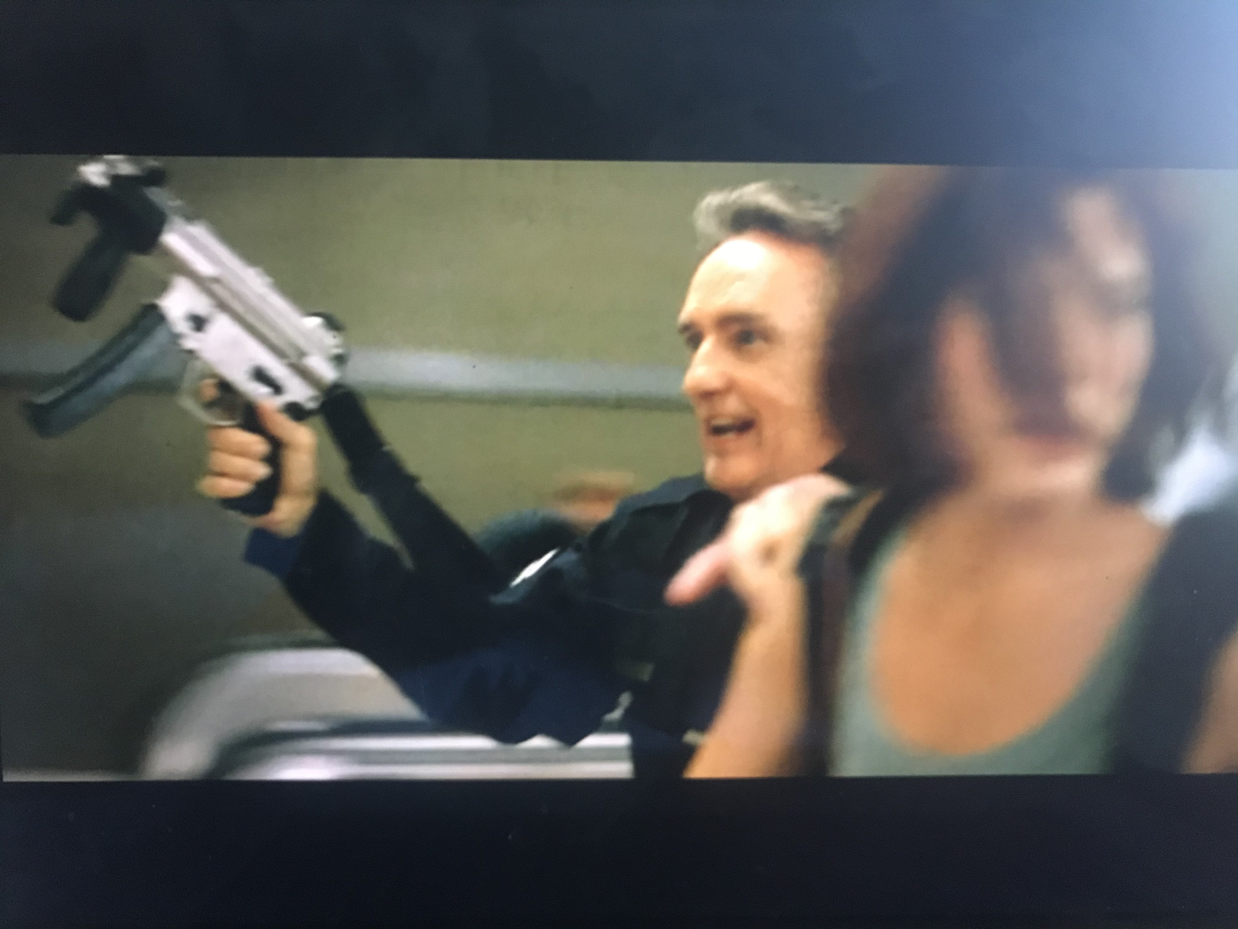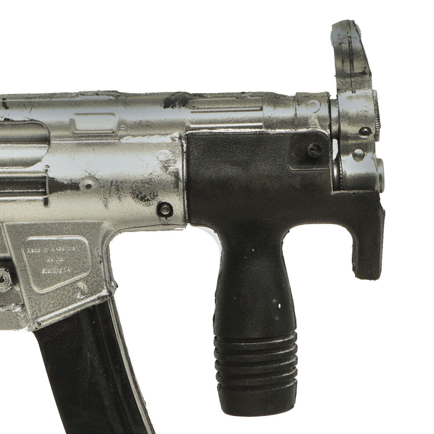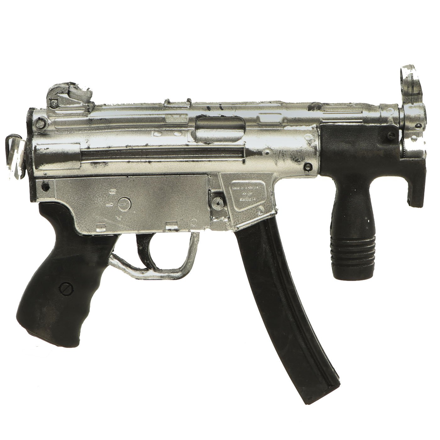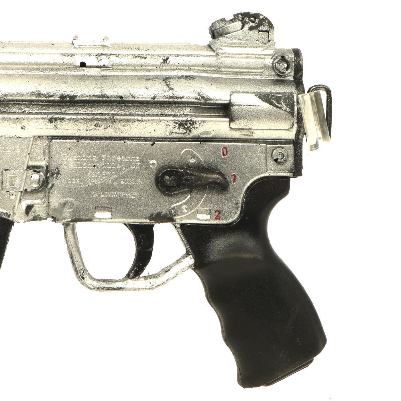 Howard Payne (Dennis Hopper) uses a nickel plated Heckler & Koch SP89 made to look like an MP5K by adding the MP5K foregrip and converting it to full-auto. It can be noted as an SP89 instead of an MP5K due to the lack of a paddle magazine release behind the magazine and lack of a push-pin lower receiver. According to the movie armorers, the filmmakers paid in advance for the armorers to send out the gun to be nickel plated. The weapon stayed Satin nickel until after 2001 when it was converted back to live fire.