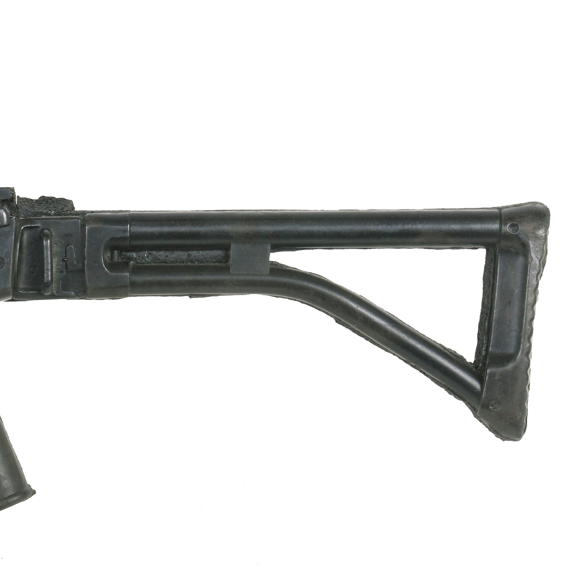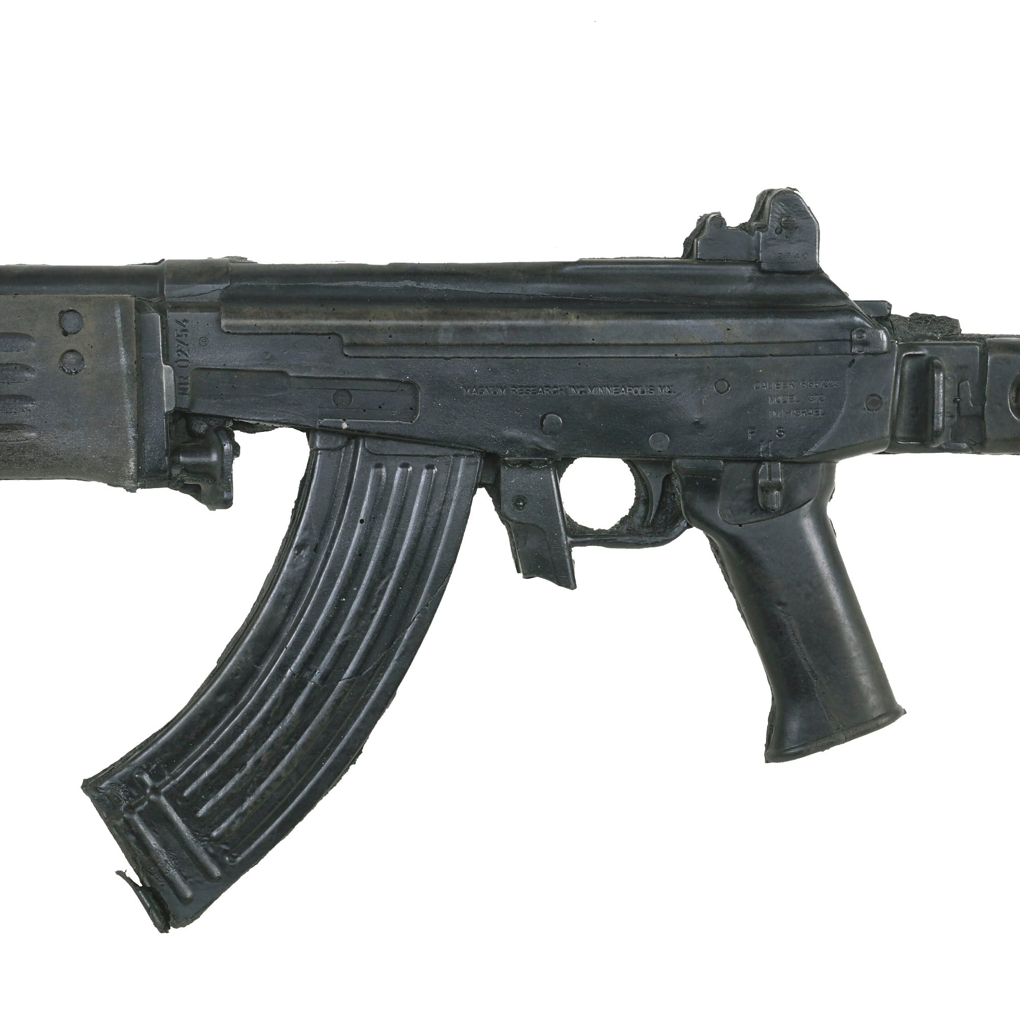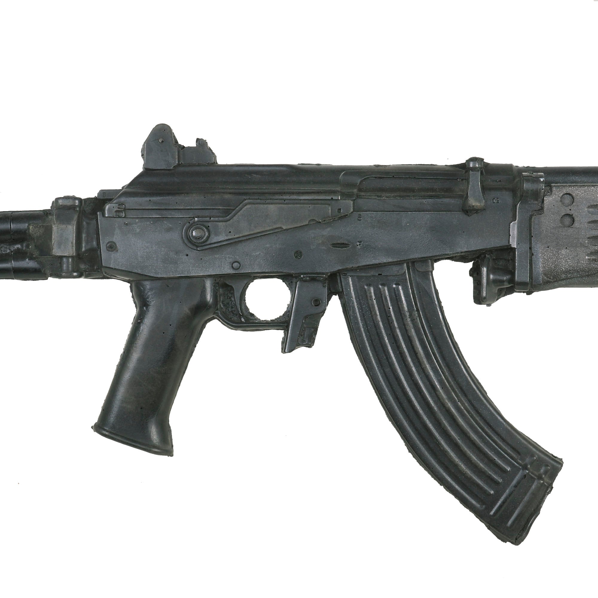 This all rubber example was acquired from the Ellis Props and Graphics liquidation auction. Ellis was the oldest and the largest Prop House in California until its liquidation auctions in late 1999 and early 2000. Unfortunately there is no longer an auction label tag present. This example is based on a Galil Model 372.