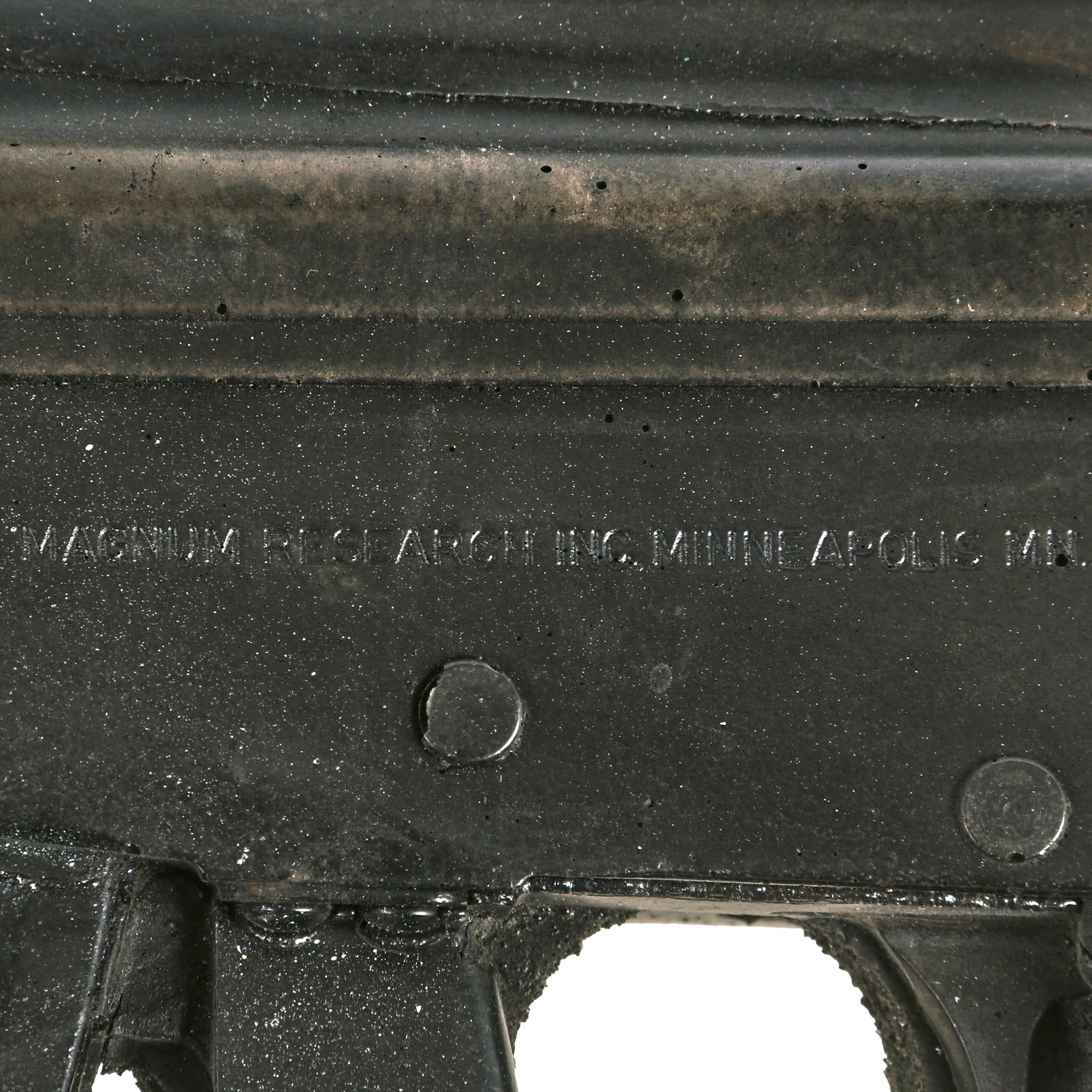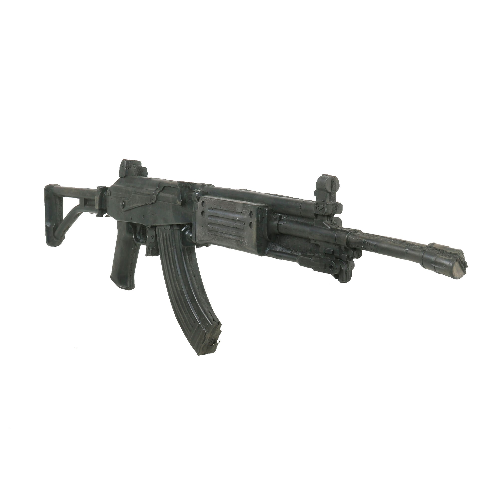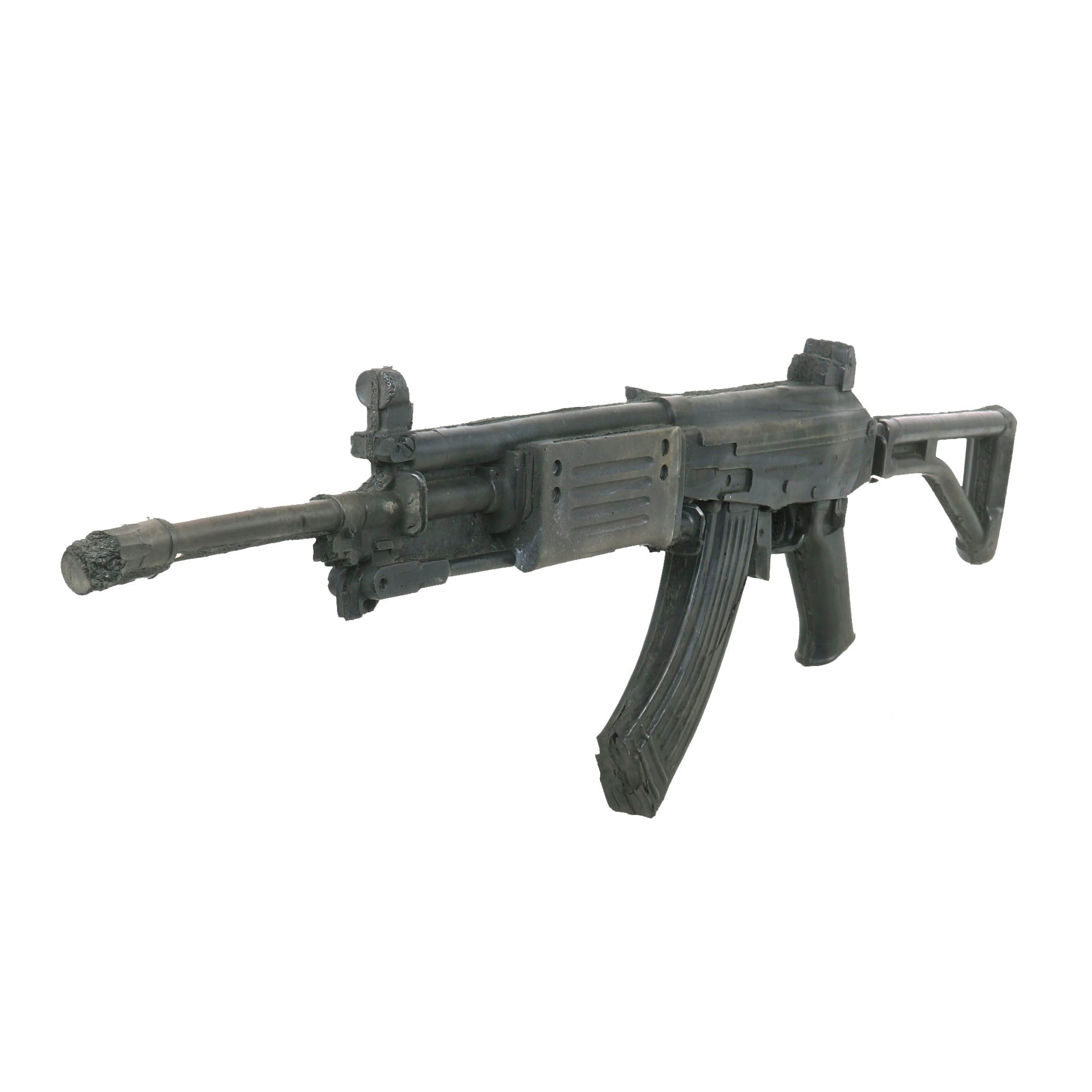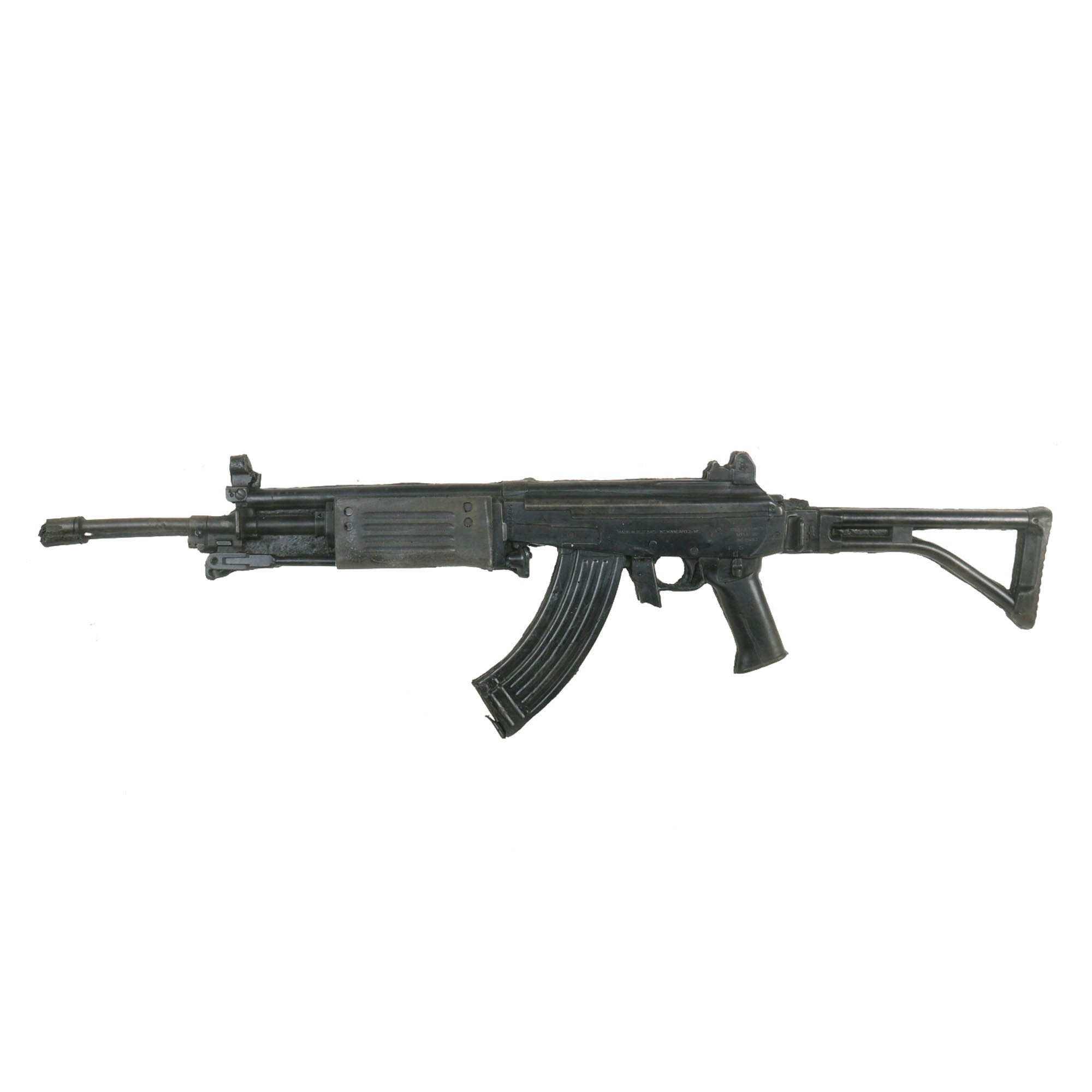 This all rubber example was acquired from the Ellis Props and Graphics liquidation auction. Ellis was the oldest and the largest Prop House in California until its liquidation auctions in late 1999 and early 2000. Unfortunately there is no longer an auction label tag present. This example is based on a Galil Model 372.