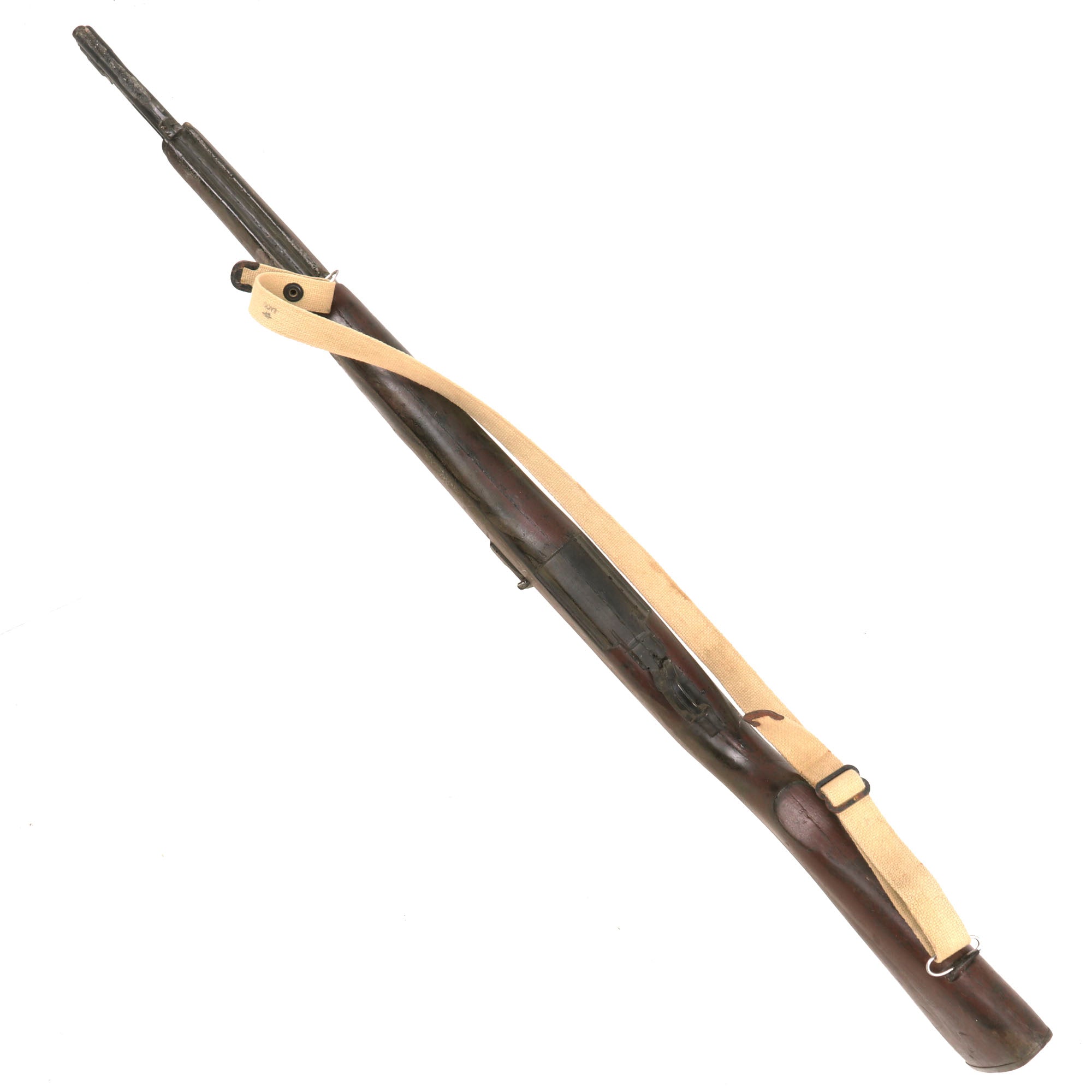 This example has extremely heavy material loss across the rifle as shown but does come with a sling, although we aren’t sure where the sling came from.