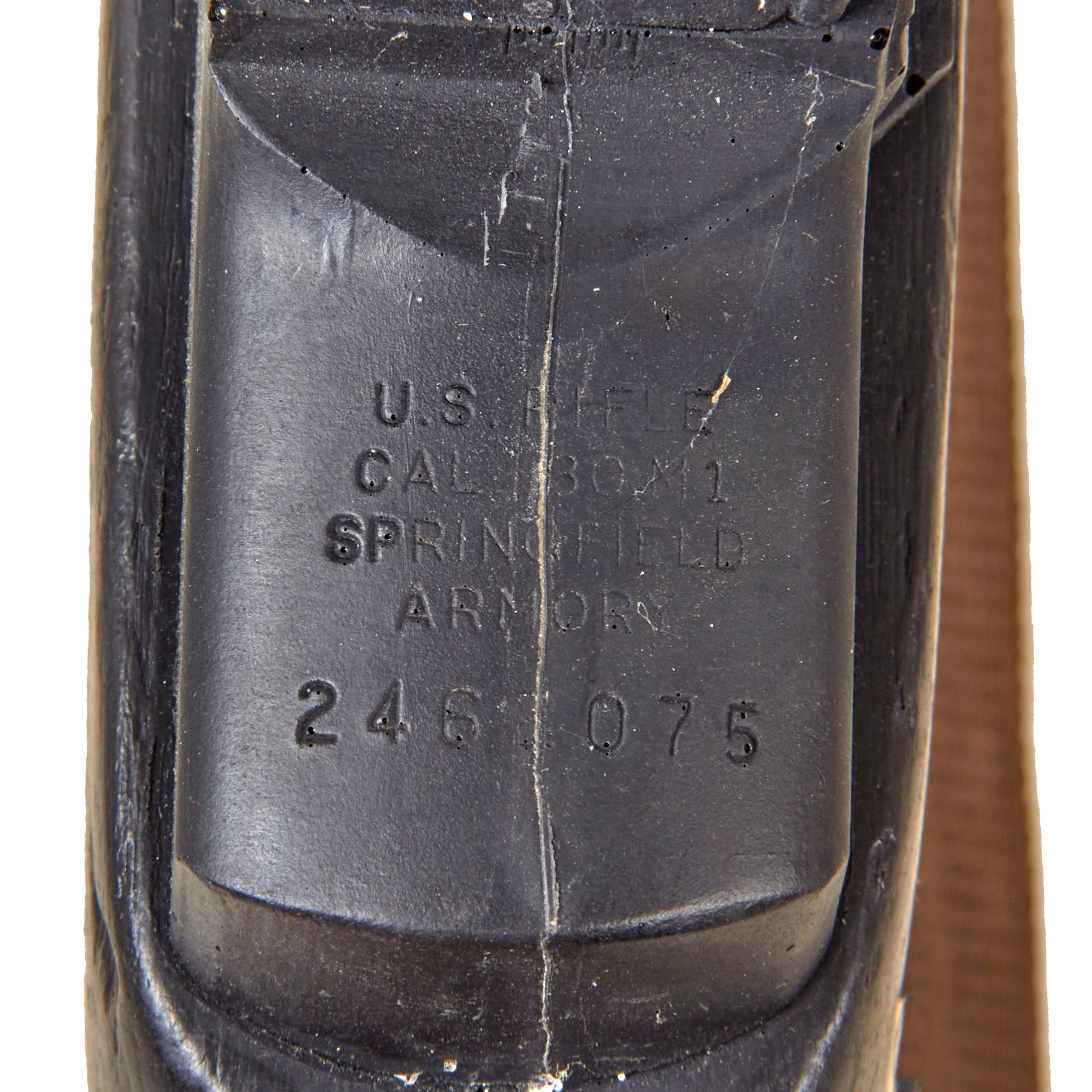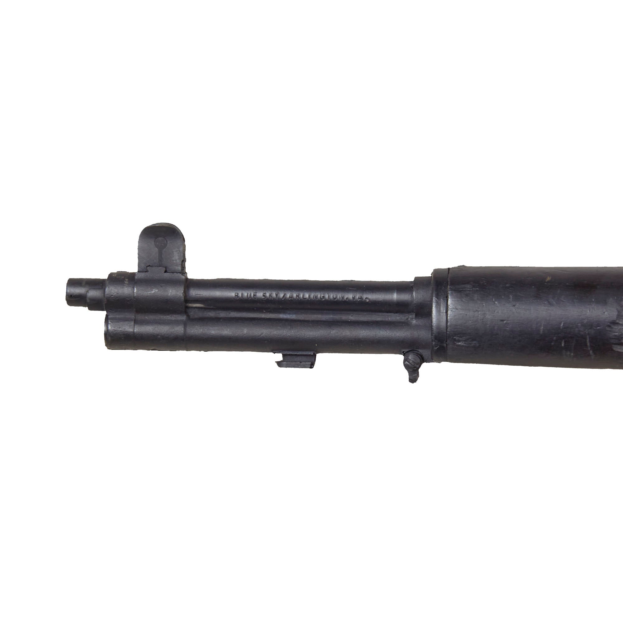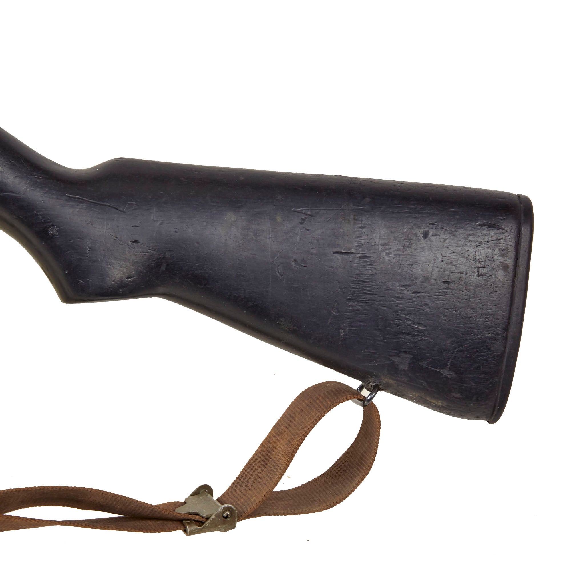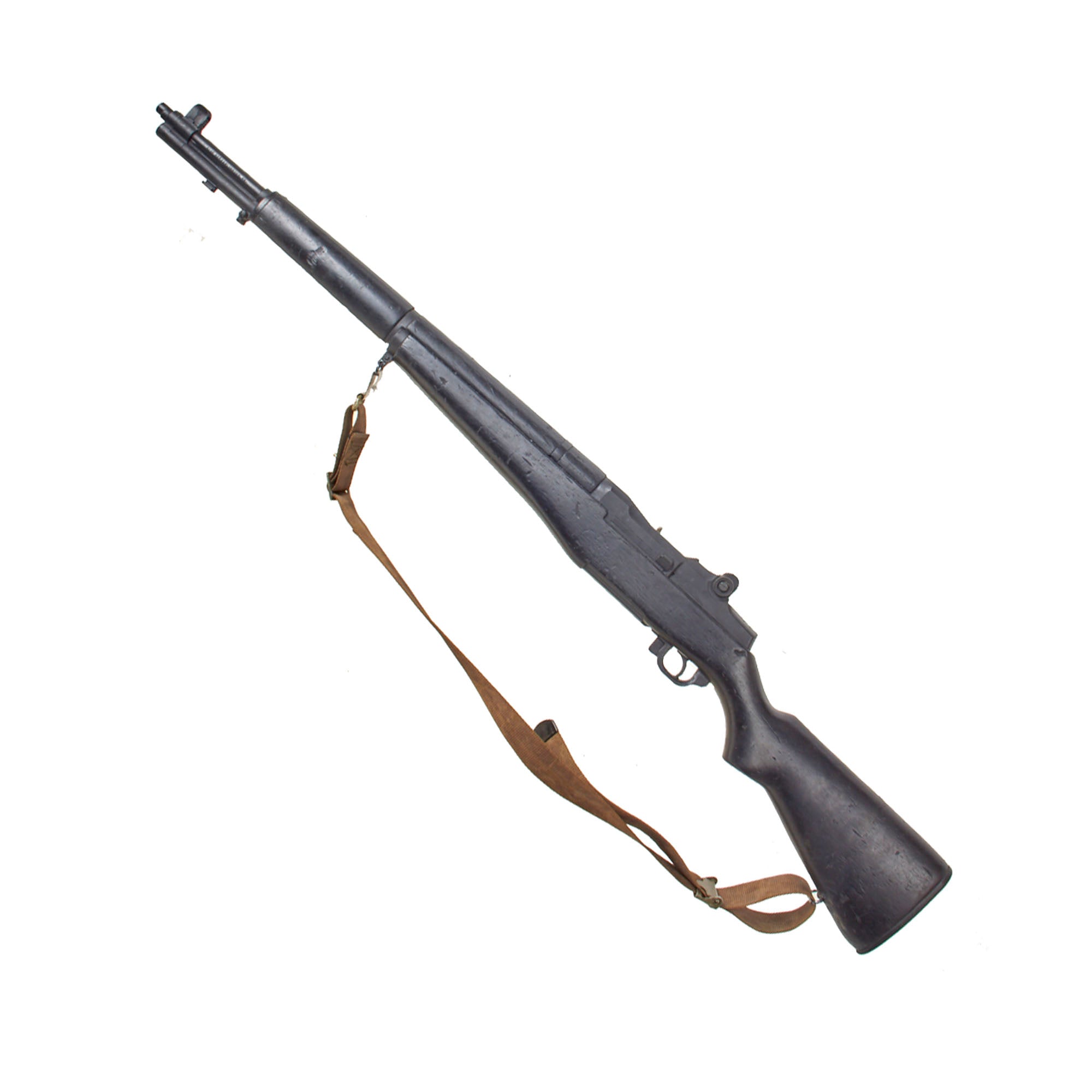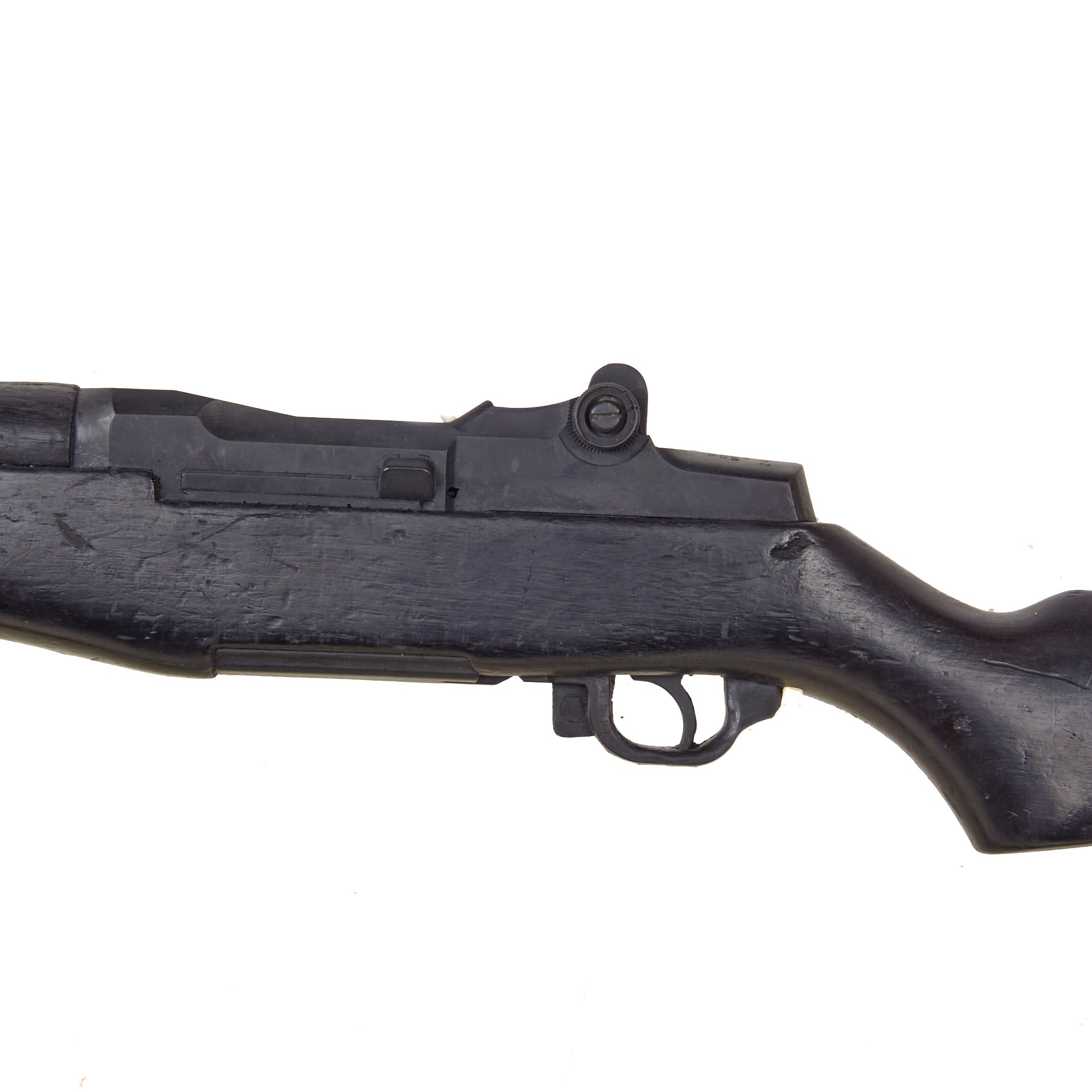 This would have been a "background" used prop gun and not a close up camera version. Dozens of background M1 Garand Rifle props were used in World War II movies, and they still are today. Typically rubber guns are given to actors when they are on vehicles and in faster motion. The rifle doesn’t appear to have been painted before. There is an attached sling but the material is a later rayon.