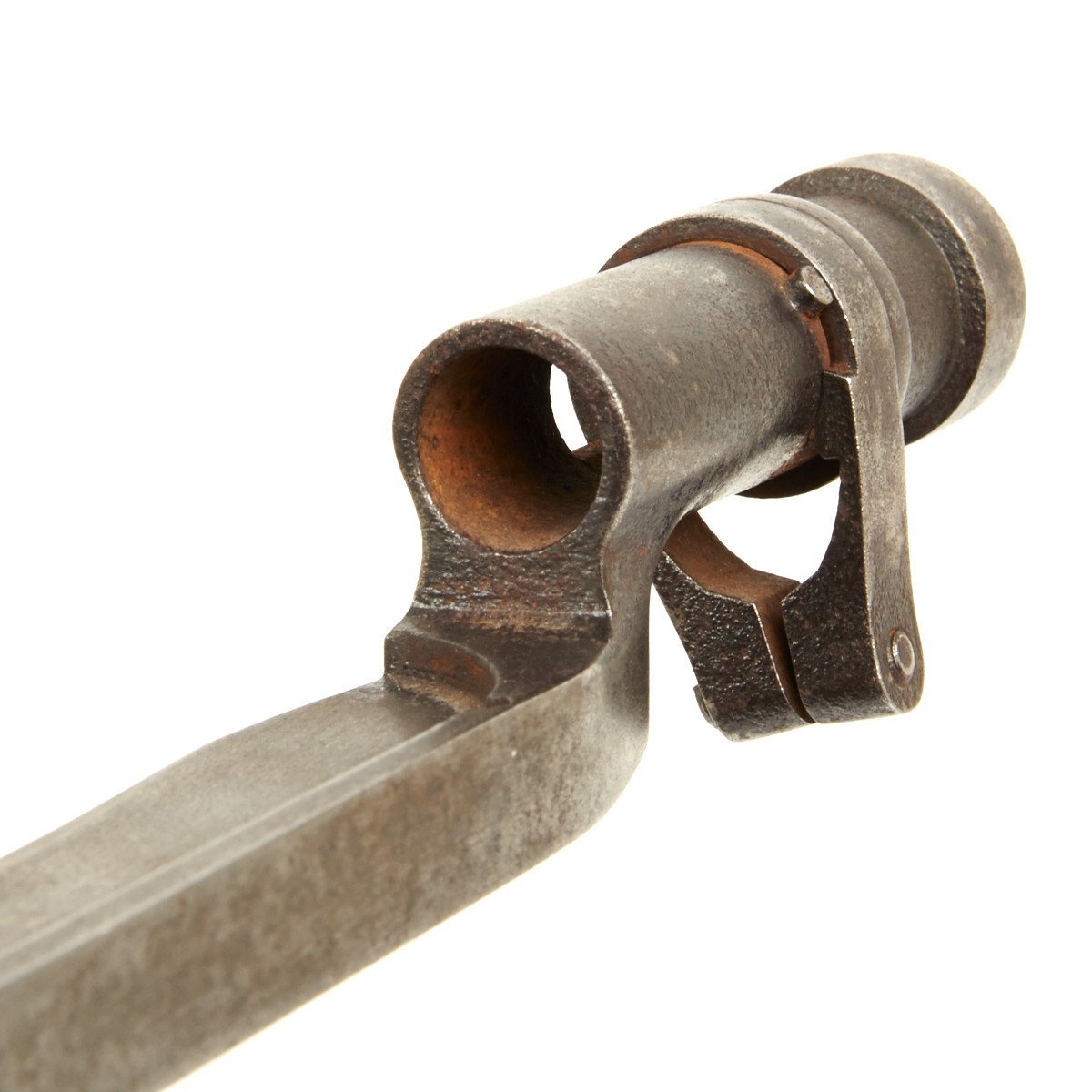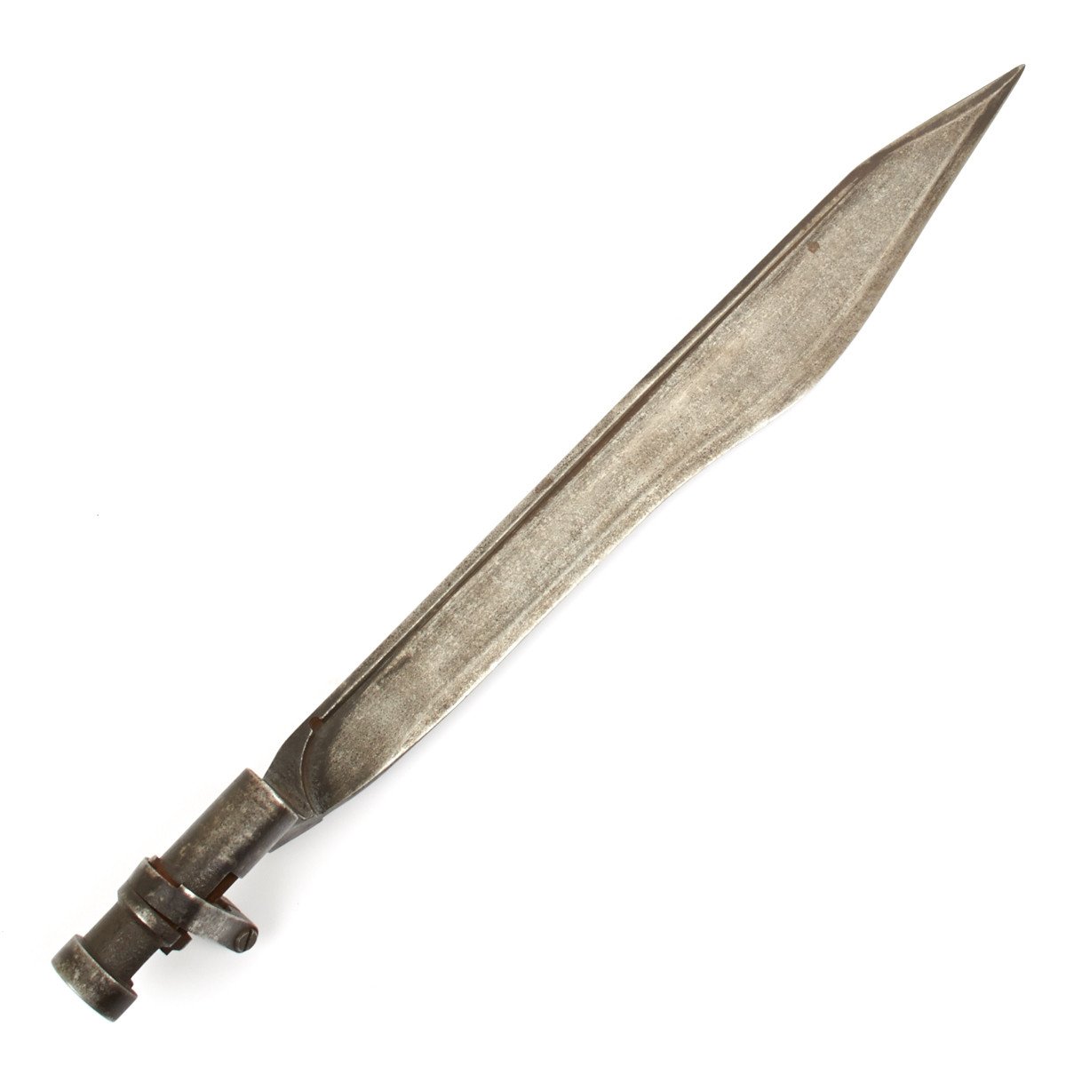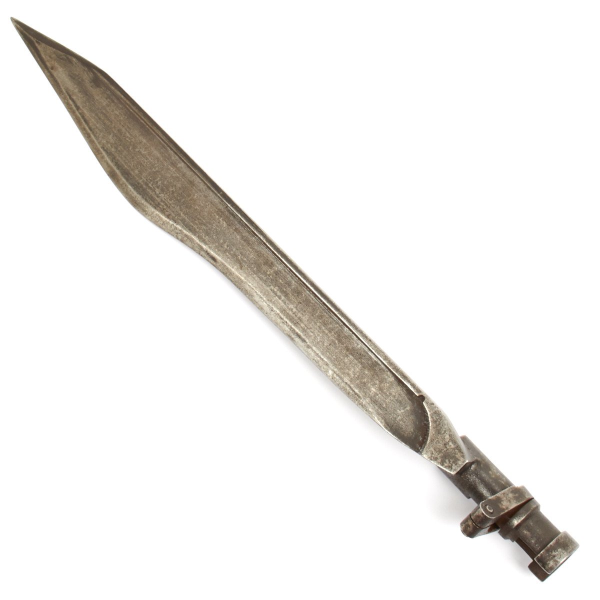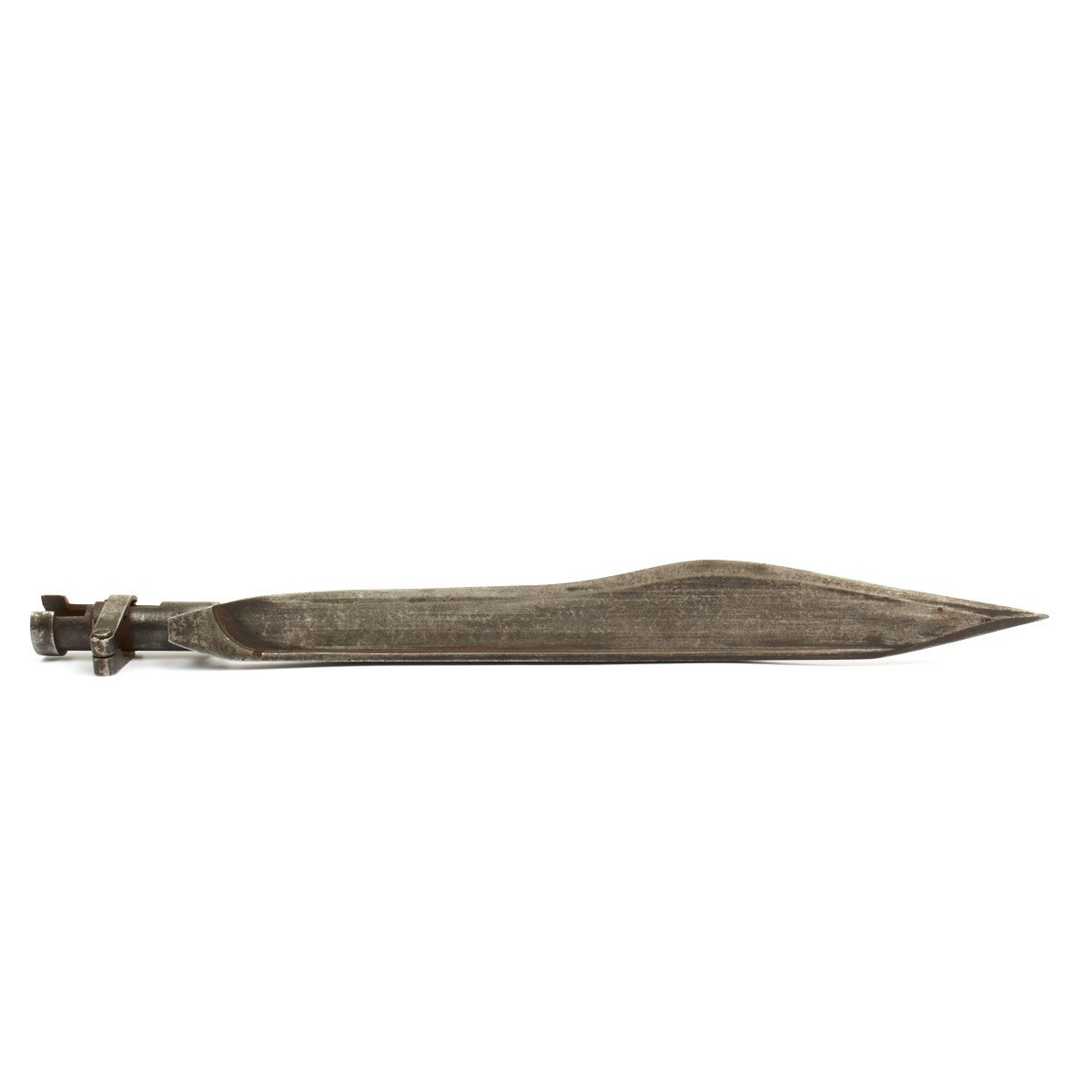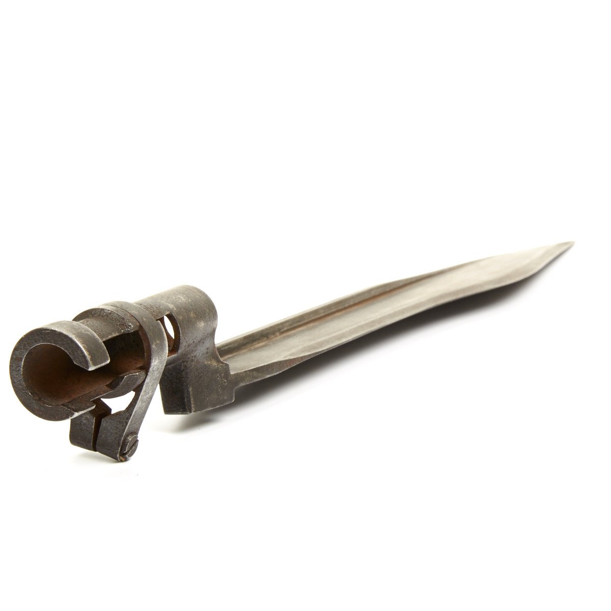 Clearly for the Imperial Russian, later Soviet Mosin-Nagant Rifle it is fitted with a locking ring identical to the 1891 Russian Nagant socket bayonet. This bayonet however has an all-steel machined blade that widens towards the front before coming to a wicked point.