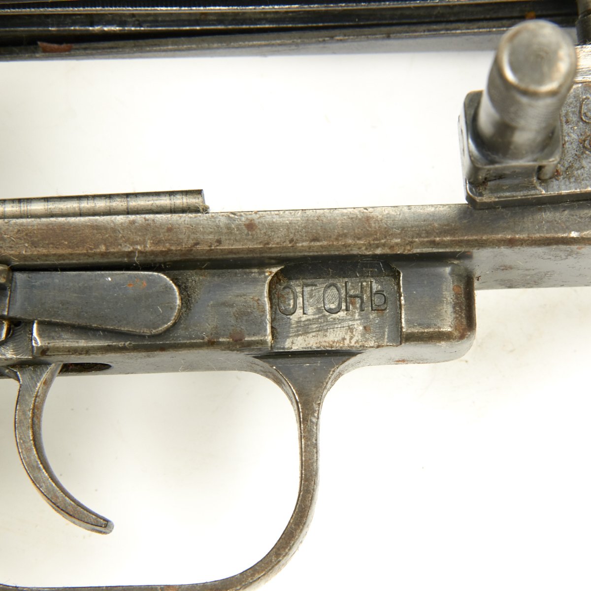 Original Item: Only One Available. While the RPD began production in 1944 this example is almost most likely a post WWII RPD Soviet Machine gun. It is marked with arrow which indicates that its made in the Kovrov Arsenal in Russia. Offered as a BATF approved non-firing display gun because the receiver has been completely removed and only the bottom plate and top cover remain. Offered in very good condition complete with Soviet markings.