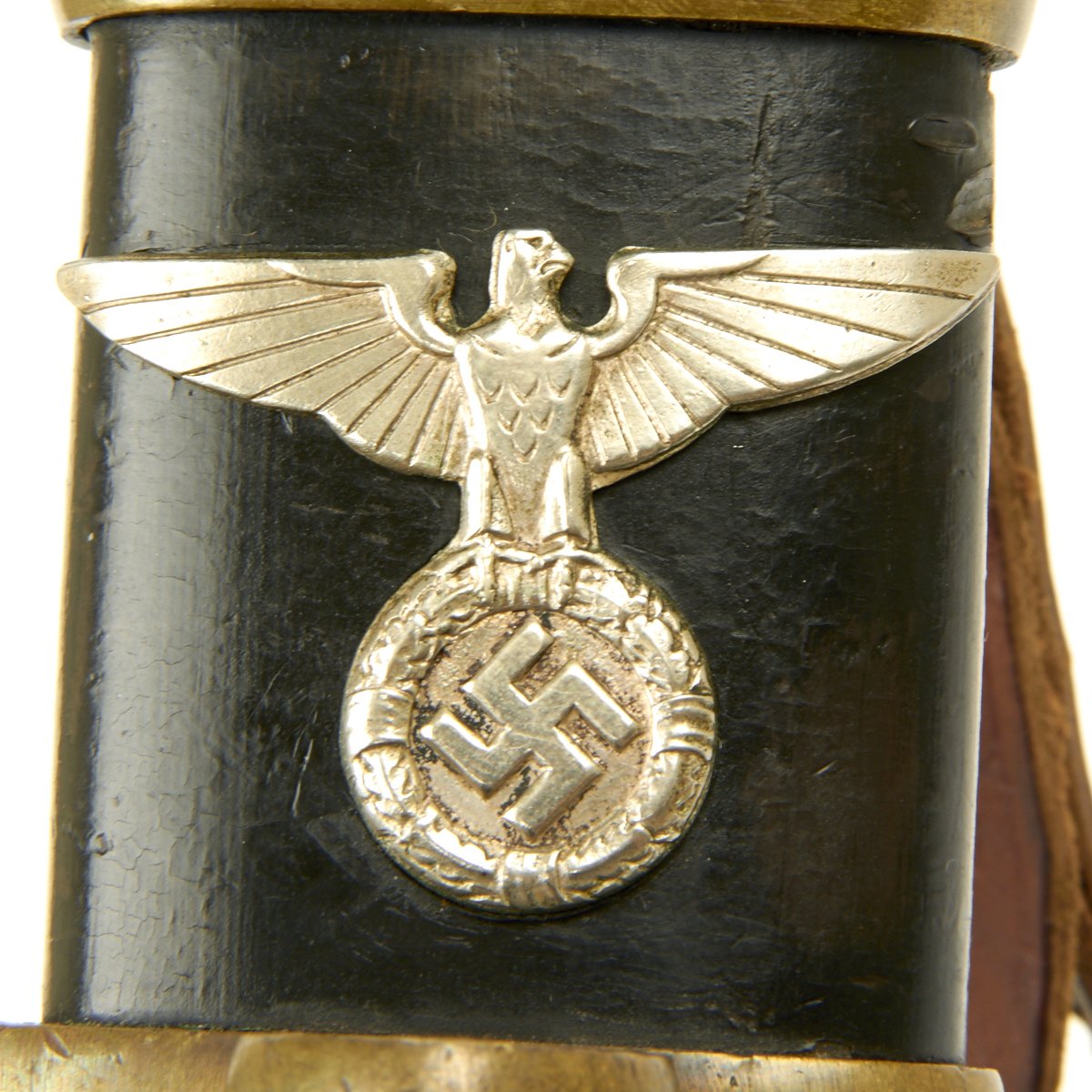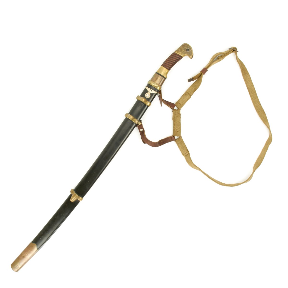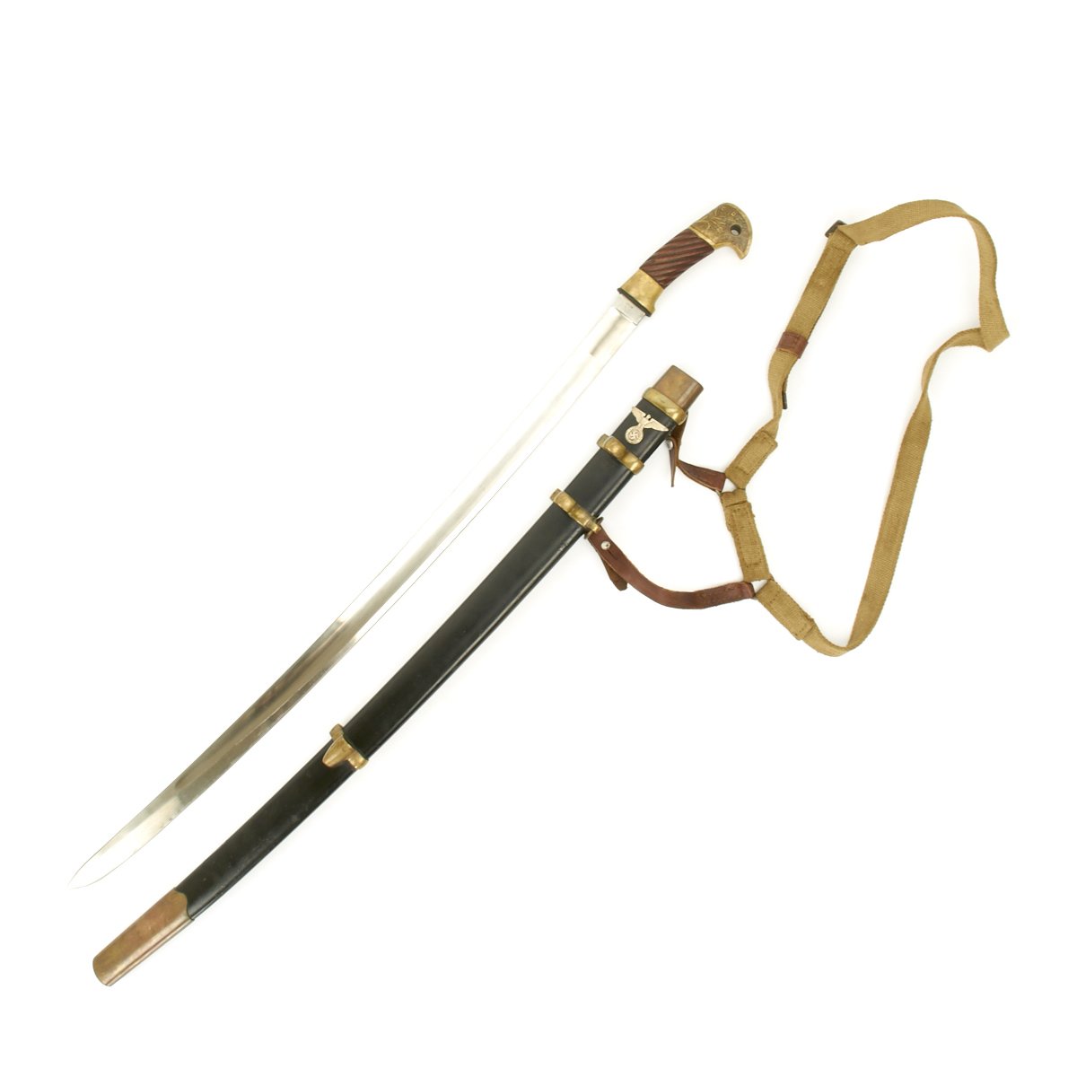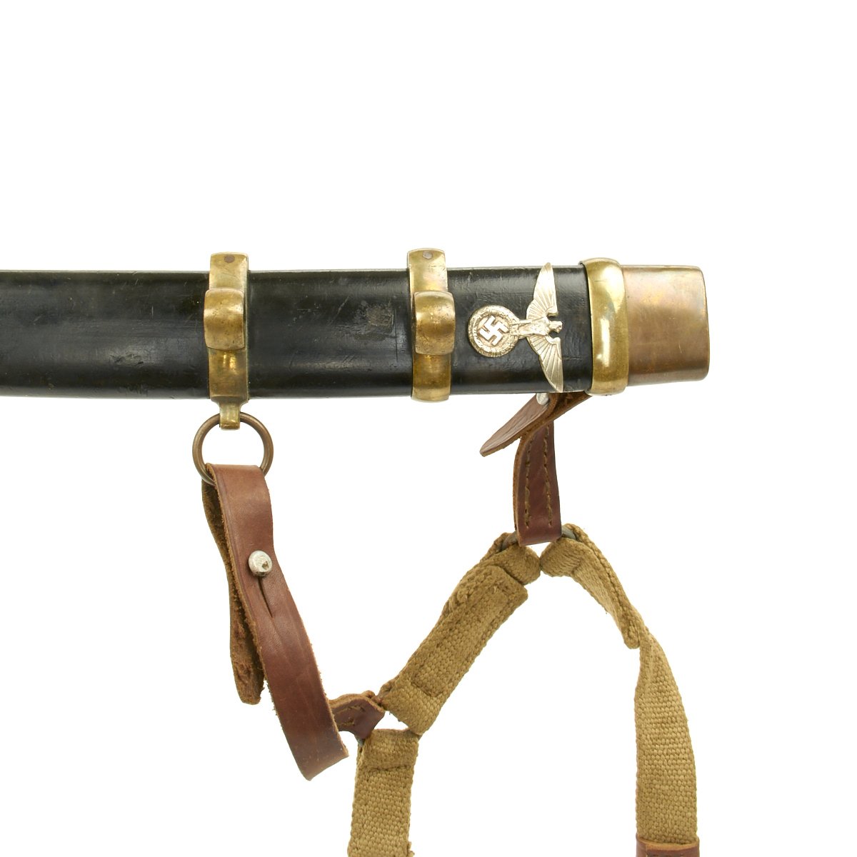 The entire Saber, it's Scabbard and body harness as well as the NSDAP insignia in just about unissued condition. Clearly totally original and very easy to distinguish from the replicas and reproductions that have been around for years. Extremely rare NSDAP Saber to find, especially in this condition.