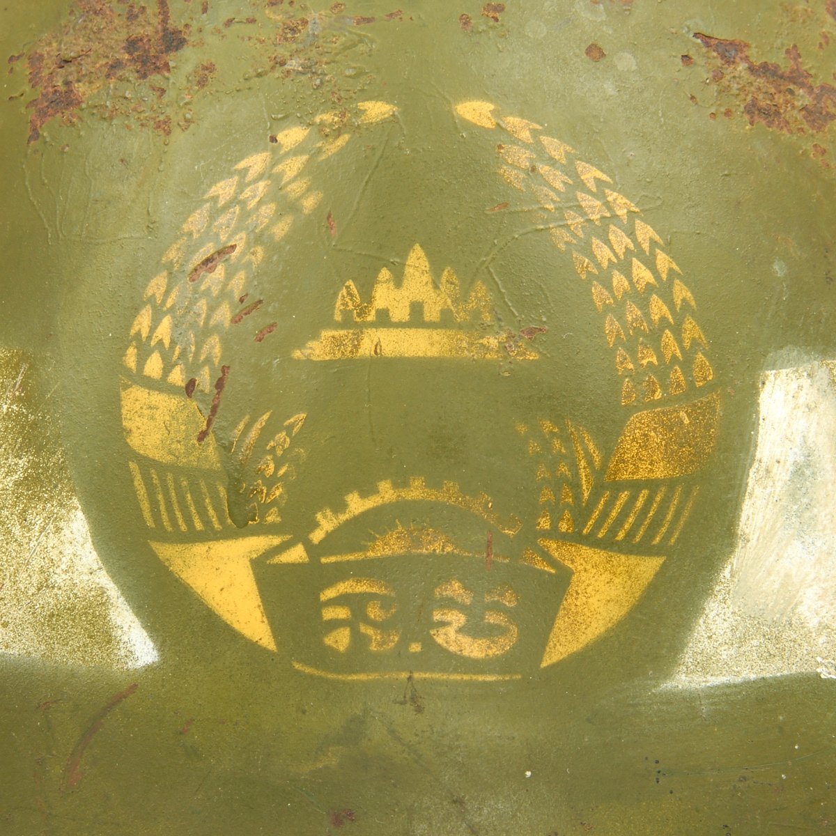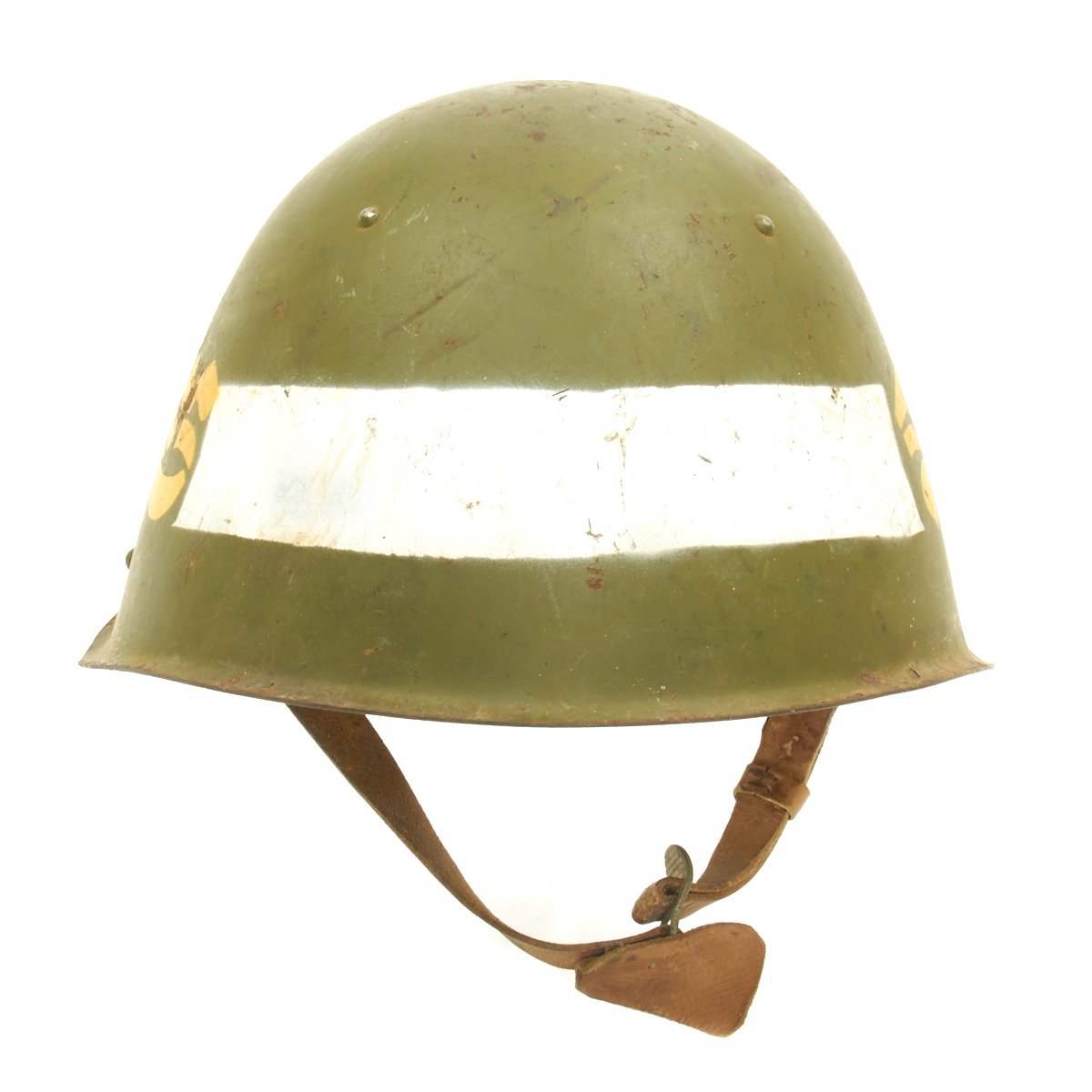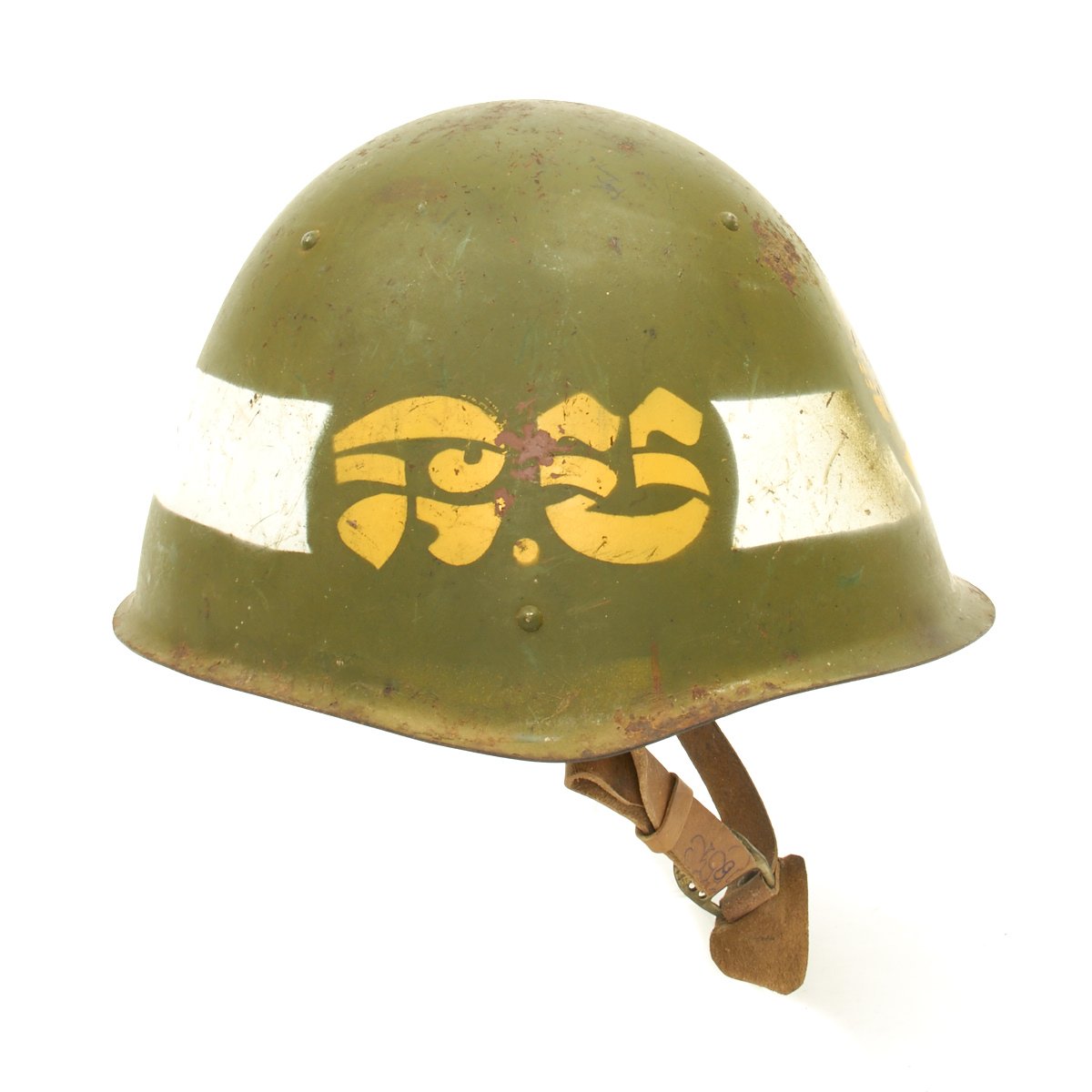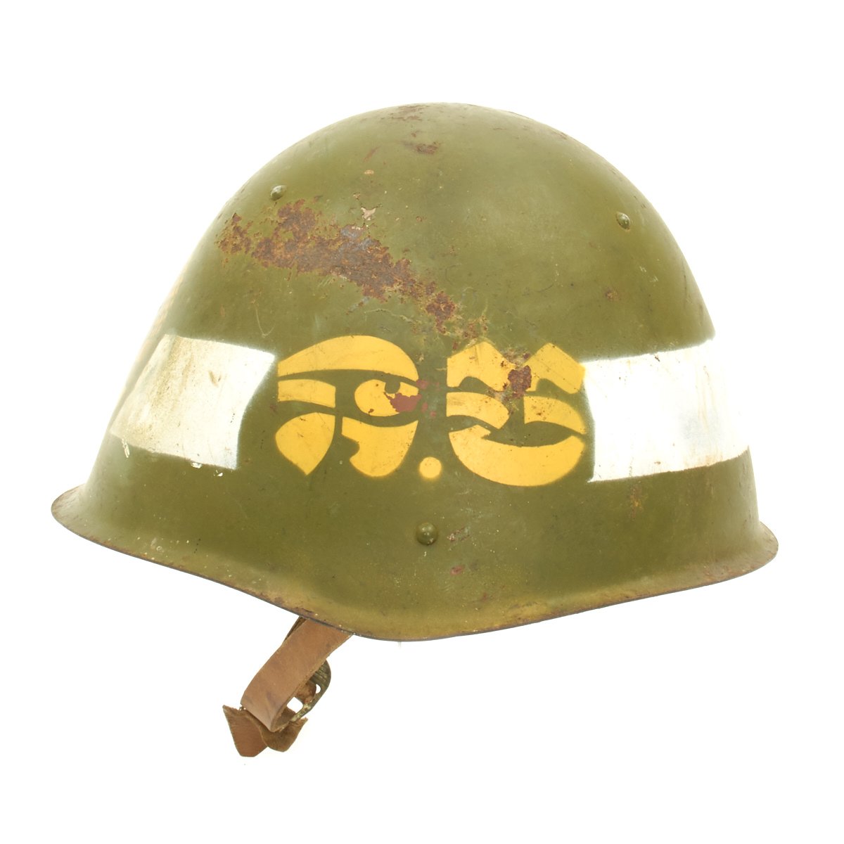 This particular example is unique in the fact that it was used in the Soviet–Afghan War then converted for use after the war by the Afghan police force. It is in excellent condition with complete liner system and chin strap. It is stamped on the underside of the rim. The paint on the exterior is in very good condition and the Afghan markings are bright. Overall a very interesting eye catching helmet from a crucial point in Cold War history.
