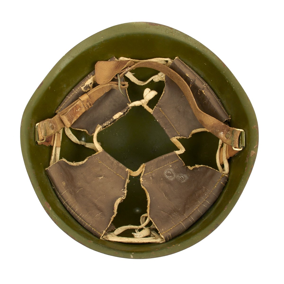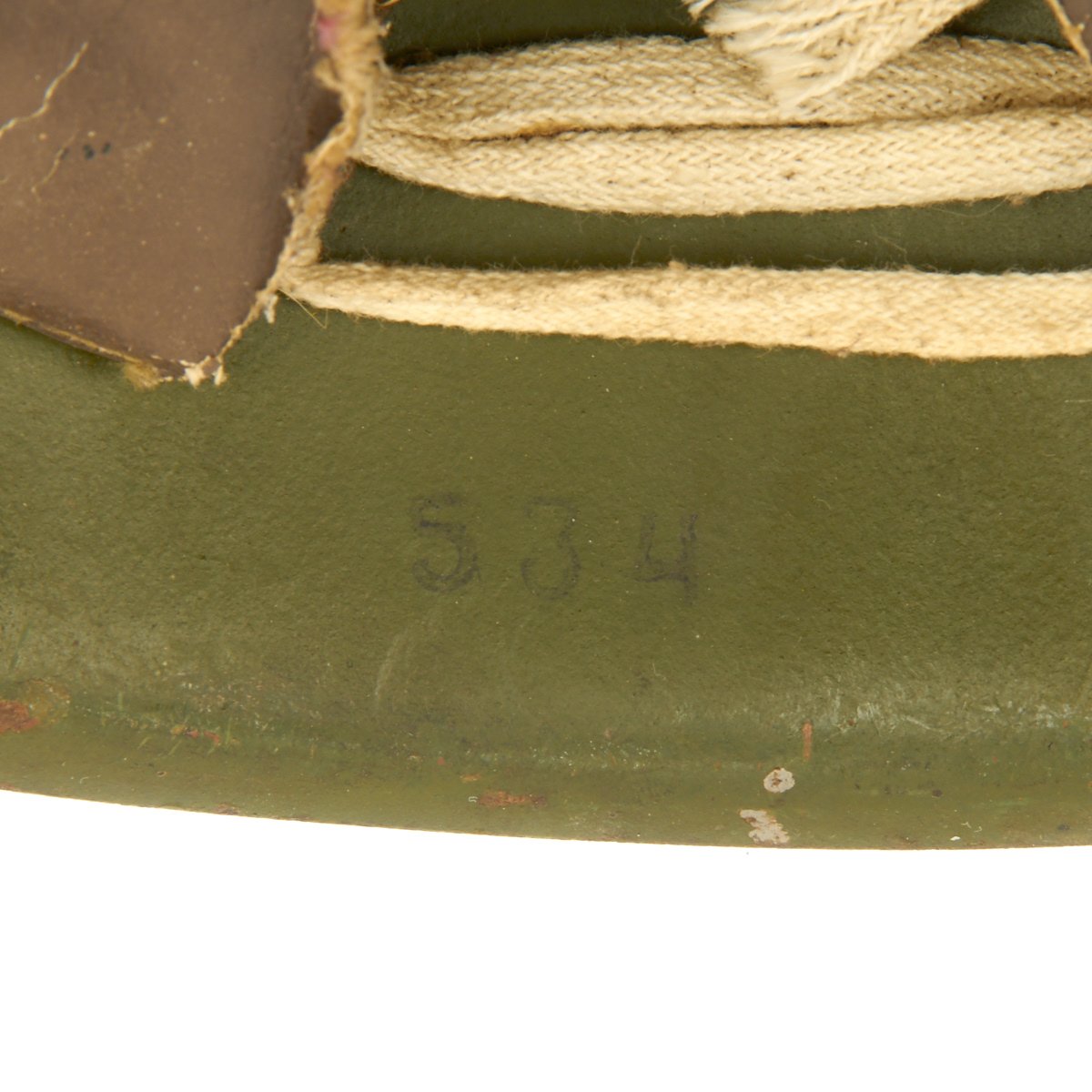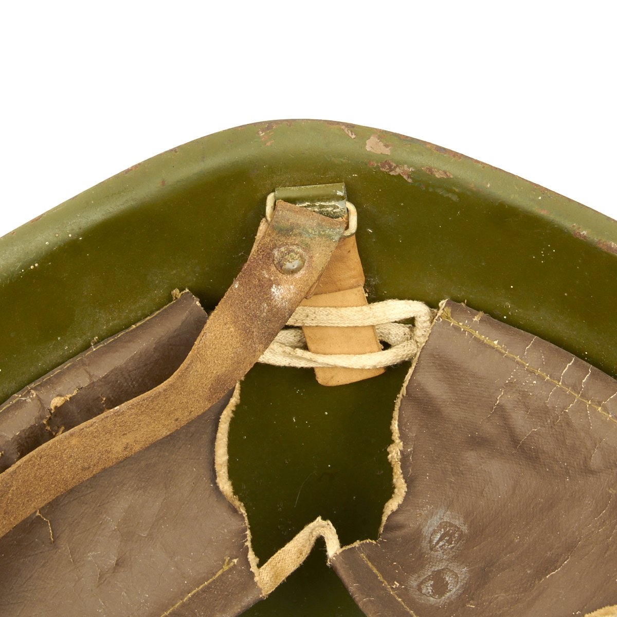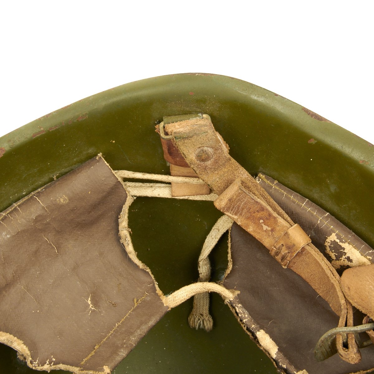 Original Item: Only One Available. The SSh-60 was the final helmet design change of the SSh-40 model. It retains the shape of the previous models but features a liner system made of four oilcloth pads without cushions. These could be loosened by the cord system and a fur cap or other piece of headgear could be worn underneath in cold weather.