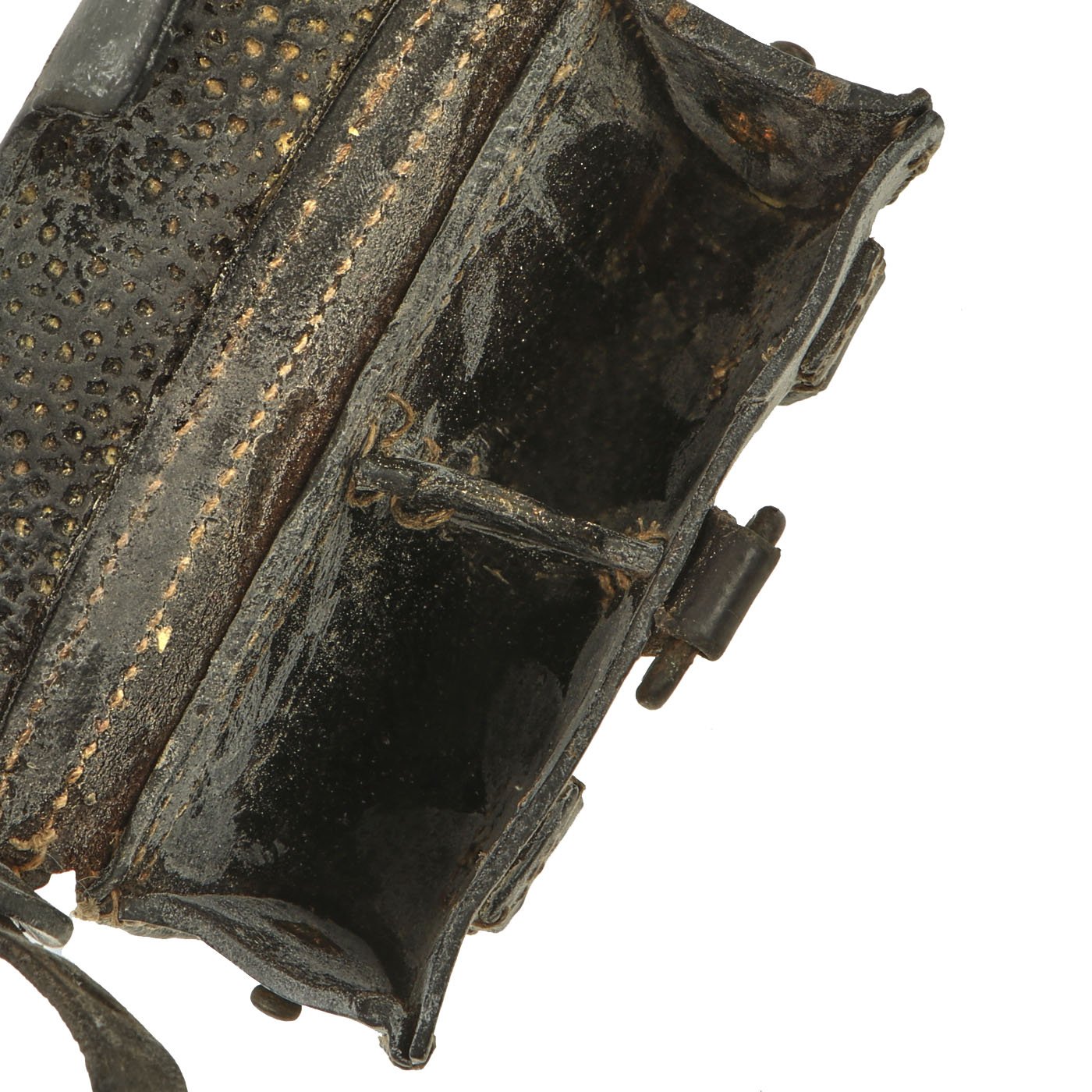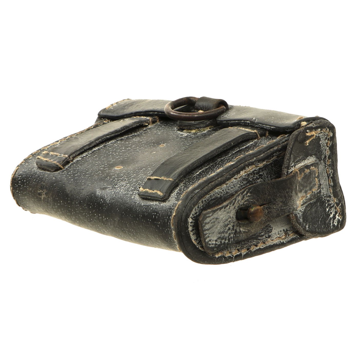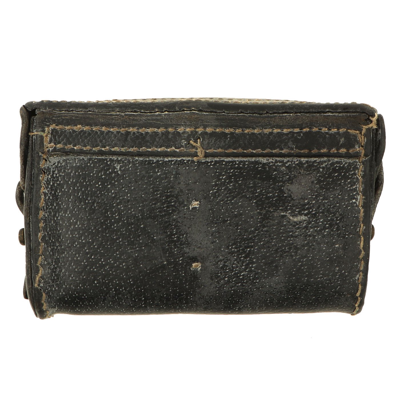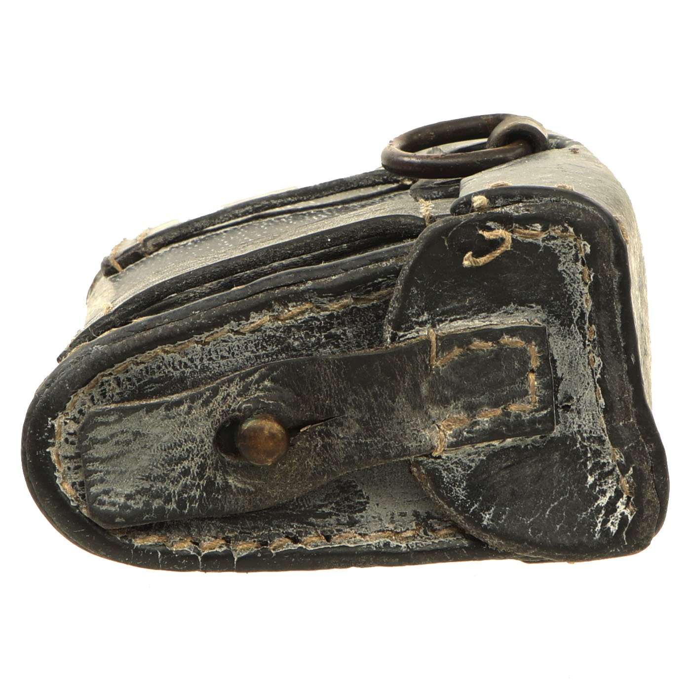 Original Item: Only One Available. This is a very nice condition WWI era Russian leather ammo pouch, intended to hold loaded 5 round stripper clips for the M1891 Mosin-Nagant Rifle. From the age and style of the pouch, we believe it to be Imperial Russian Issue from the WWI era. It then stayed in service into the Soviet era, and was modified in the 1930s with the addition of a D-Ring to interface with combat suspenders.