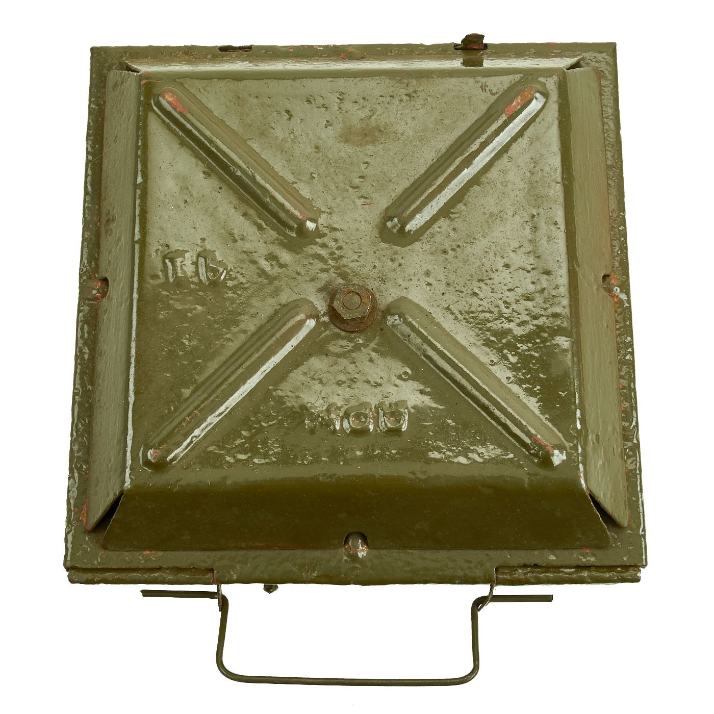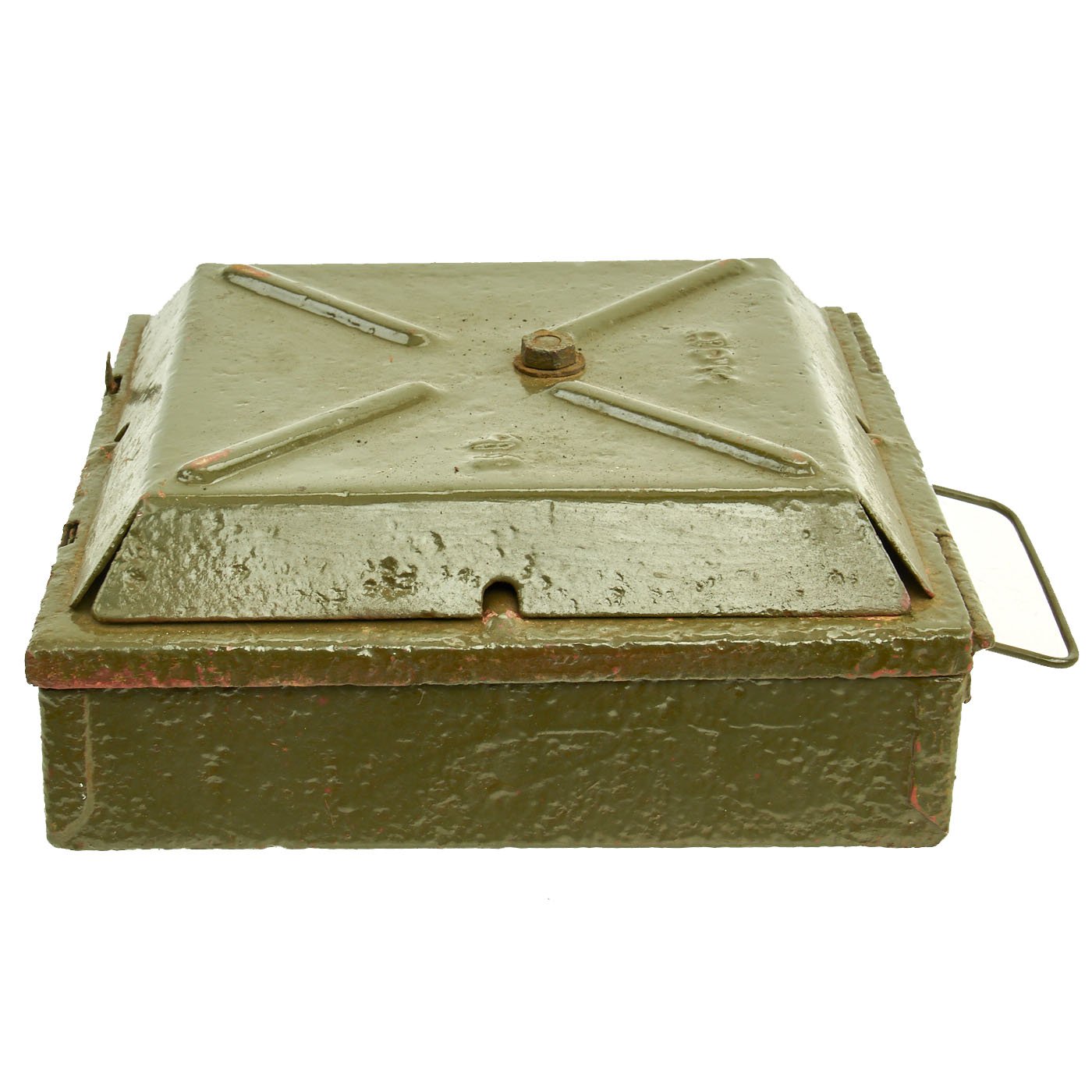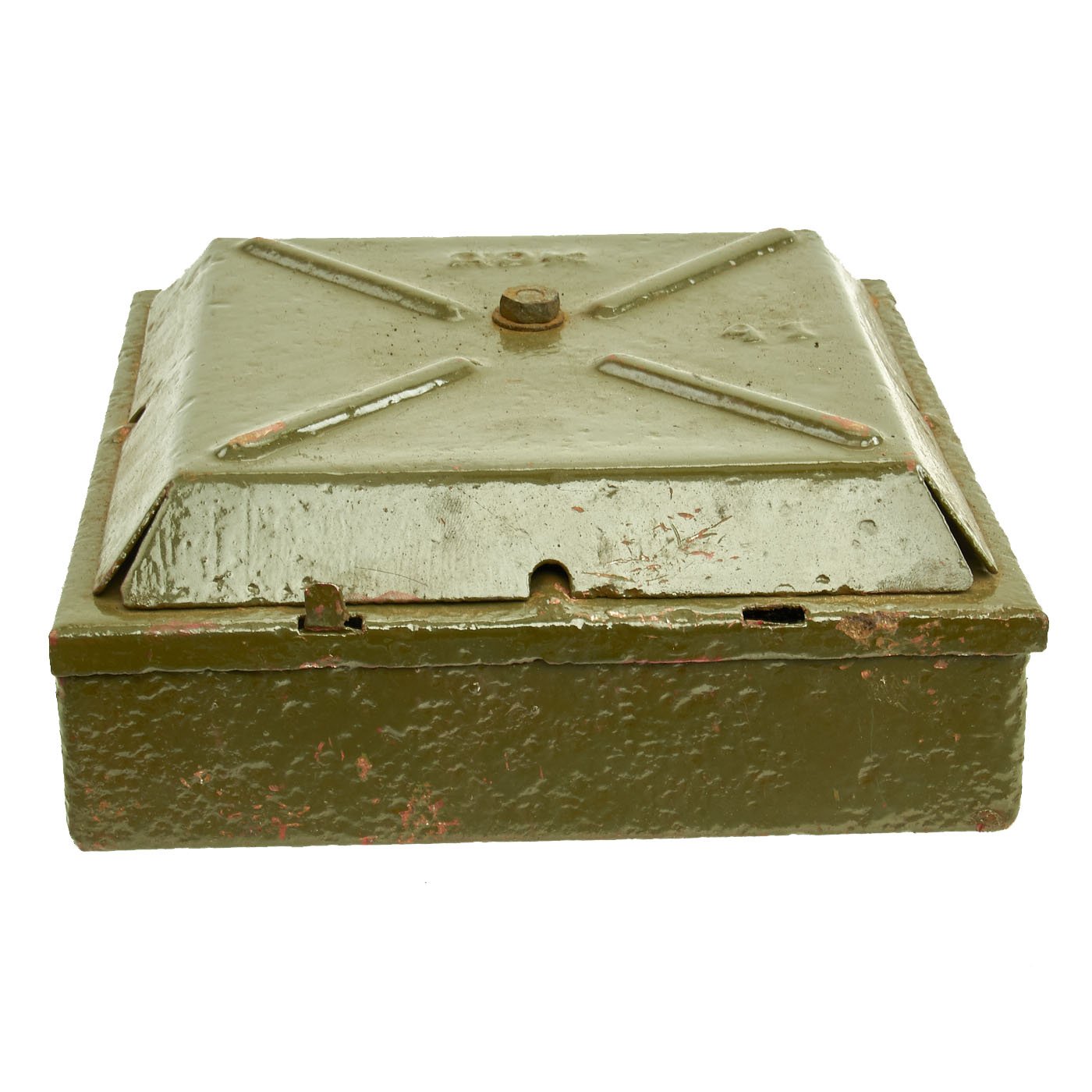 Original Item: Only One Available. Extremely rare and nearly impossible to find on today’s market! The TM-35 was a rectangular, metal-cased Soviet anti-tank mine used during the Second World War. The mine has a metal case, which is rectangular with a carrying handle on one side and a large raised pressure plate in the centre. Sufficient pressure on the central pressure plate presses down on one end of an internal see-saw like lever, which removes the retaining pin from an MUV fuze, releasing the striker, triggering the mine.
