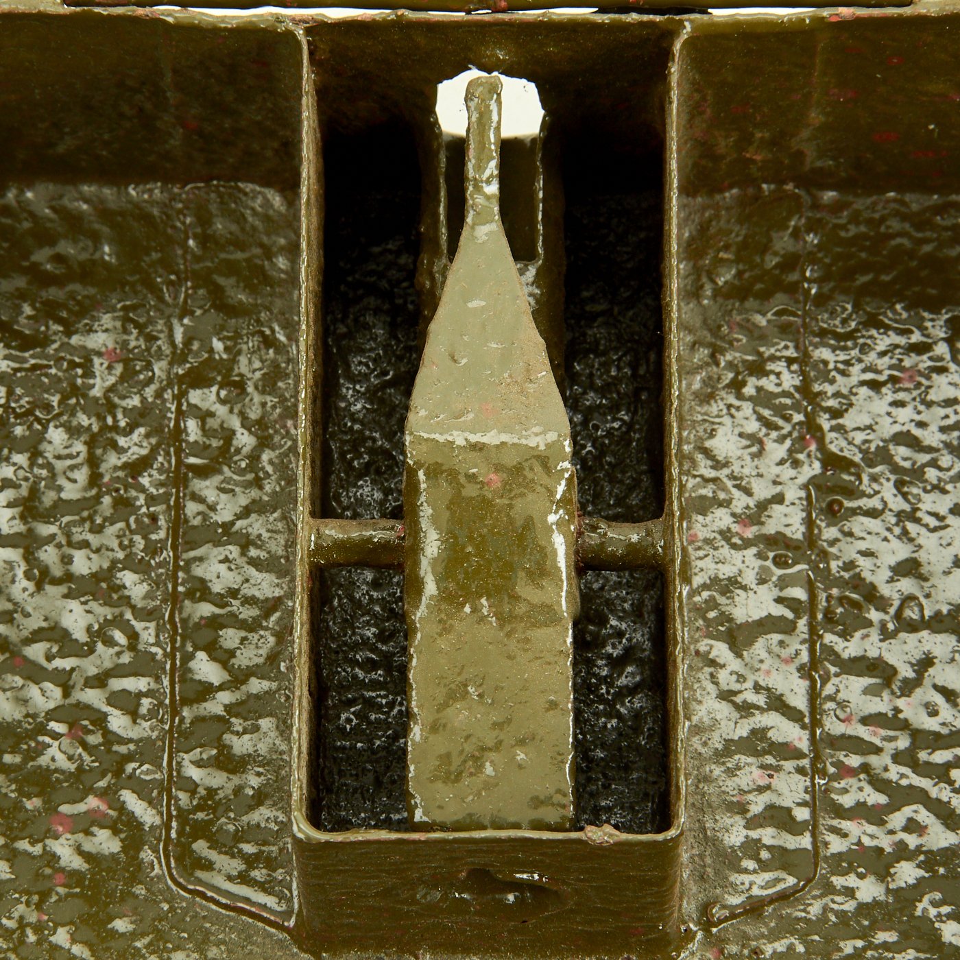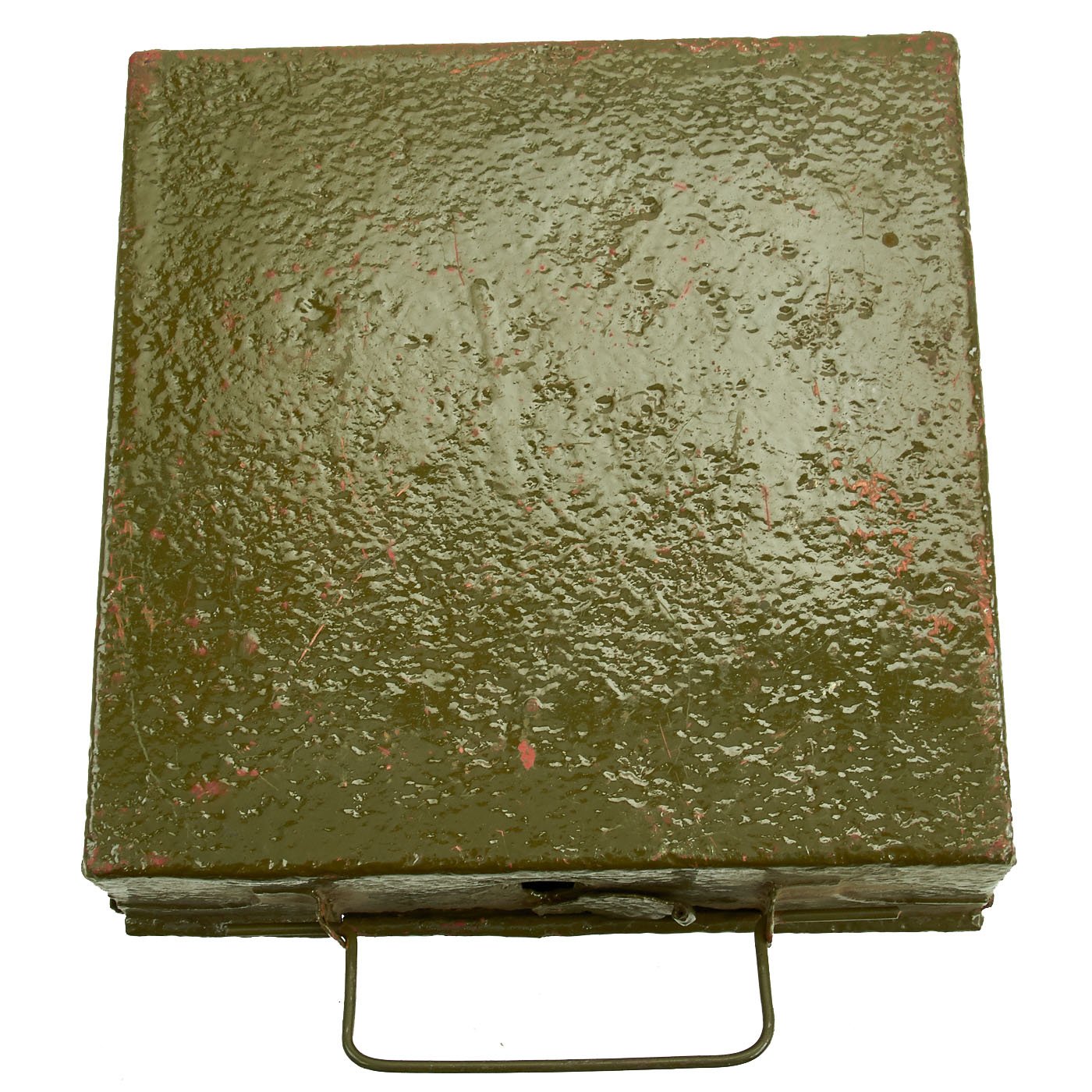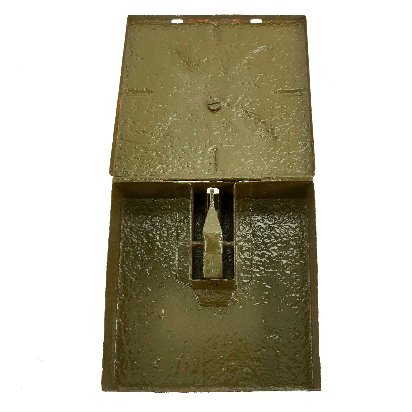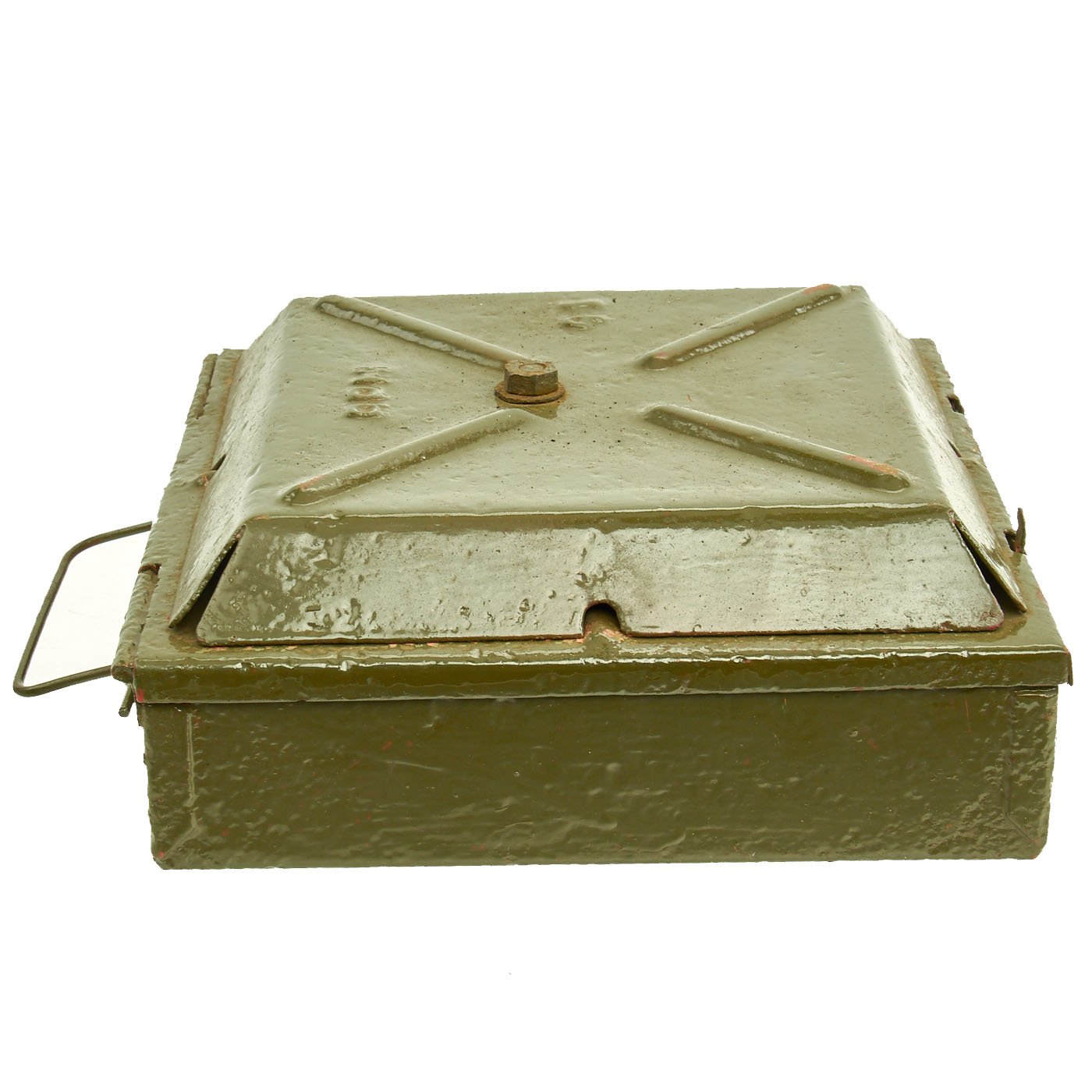 Original Item: Only One Available. Extremely rare and nearly impossible to find on today’s market! The TM-35 was a rectangular, metal-cased Soviet anti-tank mine used during the Second World War. The mine has a metal case, which is rectangular with a carrying handle on one side and a large raised pressure plate in the centre. Sufficient pressure on the central pressure plate presses down on one end of an internal see-saw like lever, which removes the retaining pin from an MUV fuze, releasing the striker, triggering the mine.