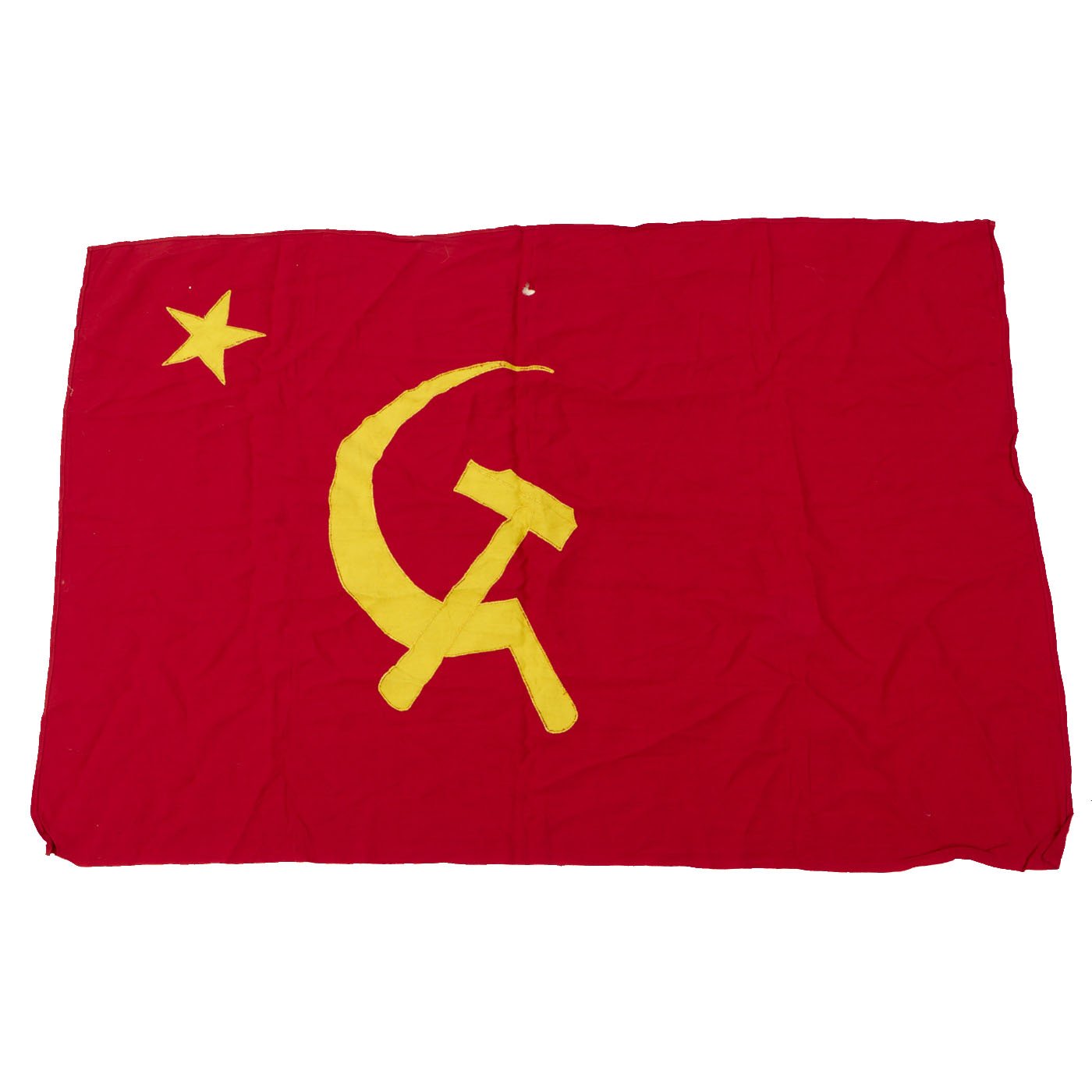 Original Item: Only One Available. This is a small Russian WWII Issue Camp Flag of the Soviet Union, correctly known as the "State Flag of the Union of Soviet Socialist Republics" (Russian: Госуда́рственный флаг Сою́за Сове́тских Социалисти́ческих Респу́блик). More commonly known as the Soviet flag (Russian: Сове́тский фла), this was the official national flag of the Union of Soviet Socialist Republics (USSR / CCCP) from 1922 to 1991. The flag's design and symbolism are derived from several sources, but emerged during the Russian Revolution. The flag is also an international symbol of the communist movement as a whole. The nicknames for the flag were The Hammer and Sickle and The Red Banner.