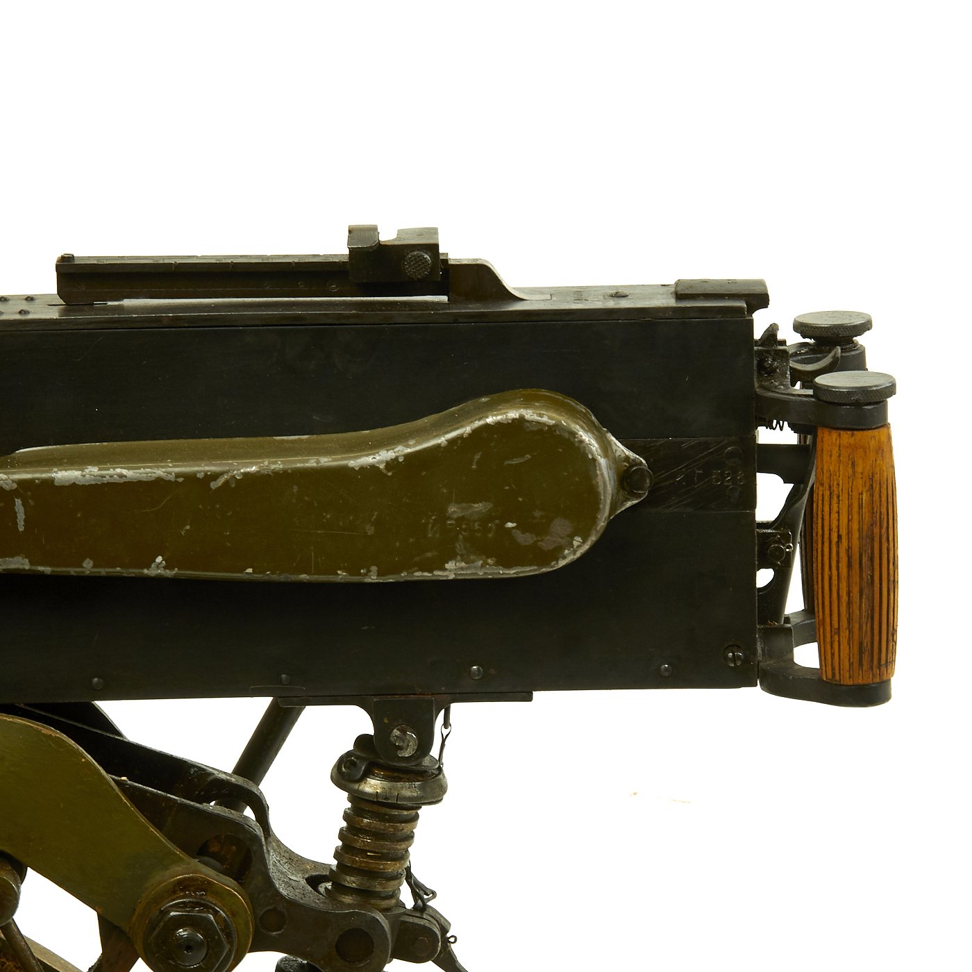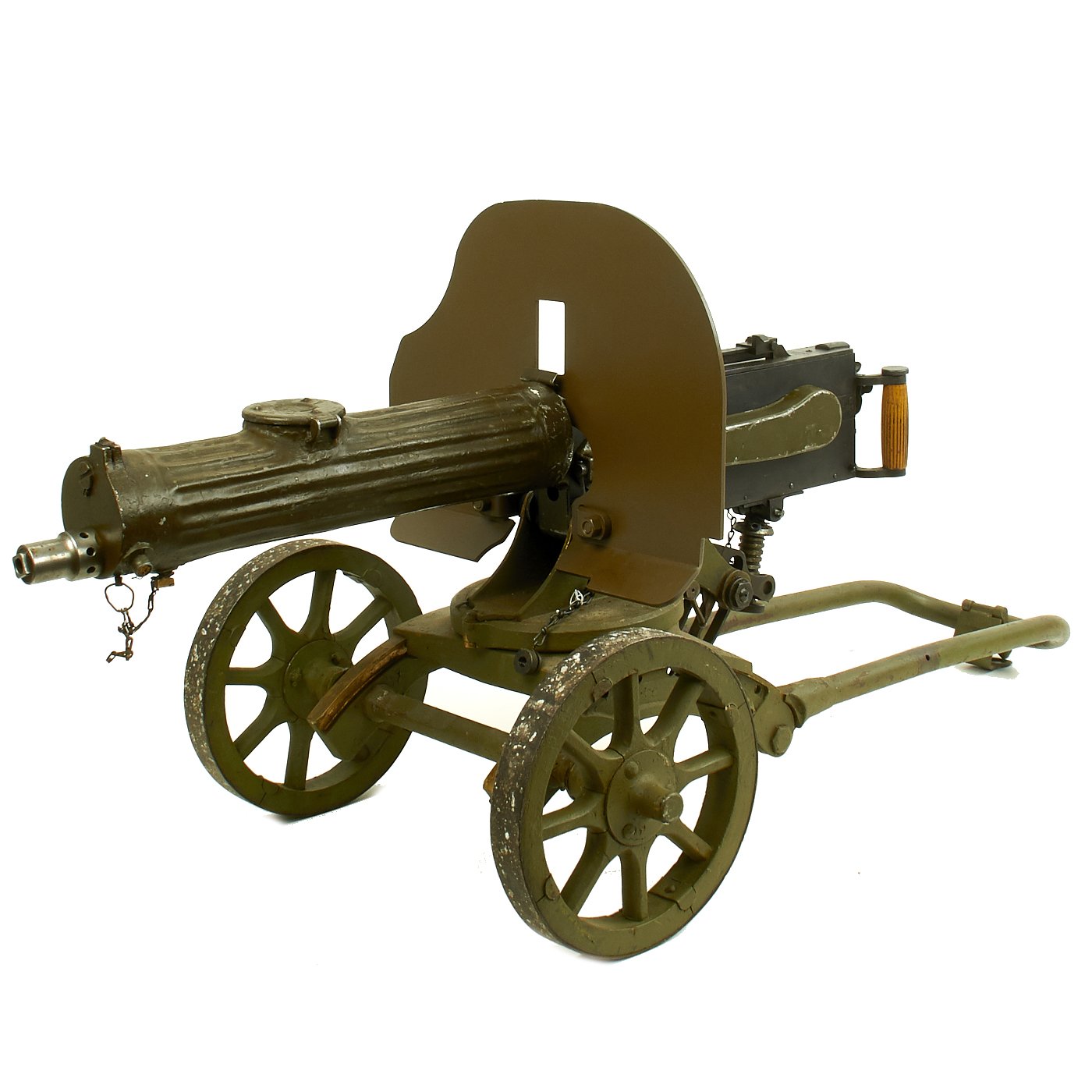 Original Item: Only One Available. One of our very last! This original WWII issue Russian M-1910 Maxim was built to BATF approved specs using one of our all original Russian stunning parts sets assembled on our BATF approved steel dummy non-firing receiver incorporating most internal parts. This example looks to be almost entirely of WWII Era parts, though it may have some WWI era parts, as did many of the guns the Russians used during WWII. It also includes some wonderful period accessories, some of which we have never had before!