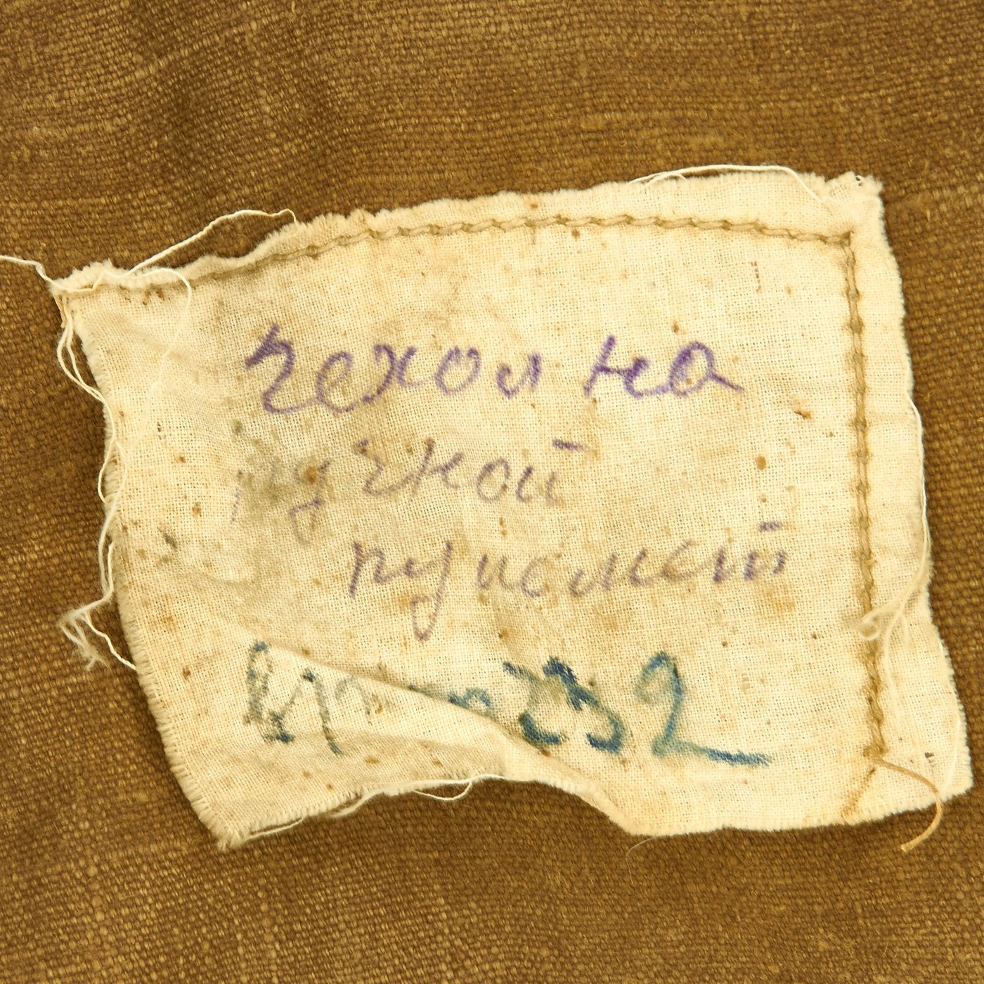 - A very nice condition Russian Maxim Gun cover, with cyrillic writing on a white tag. It is made of the standard rough WWII era canvas that Soviet Forces used.
