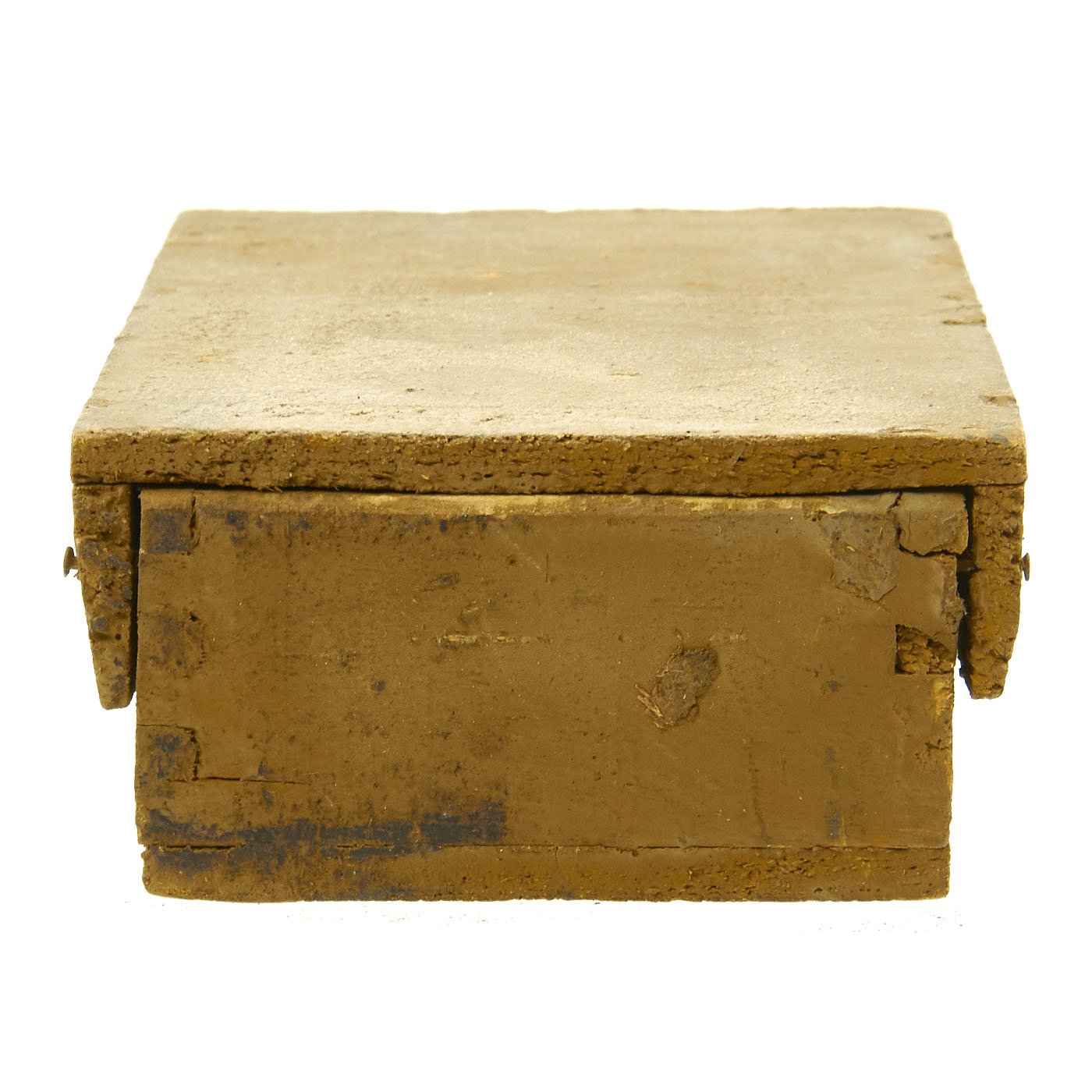 This PMD-6M example is in excellent condition and comes complete with an original fuse and also some nice fragmentation plates, which were not standard issue. This would increase the damage done. It was painted black at some point, probably to help preserve as a training aid. Wood box measures 6" x 3" x 1.5". Ready to display!!