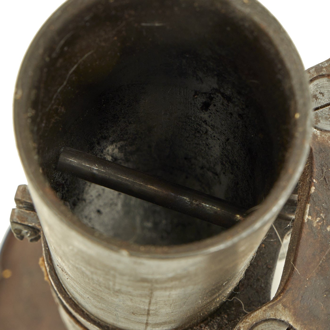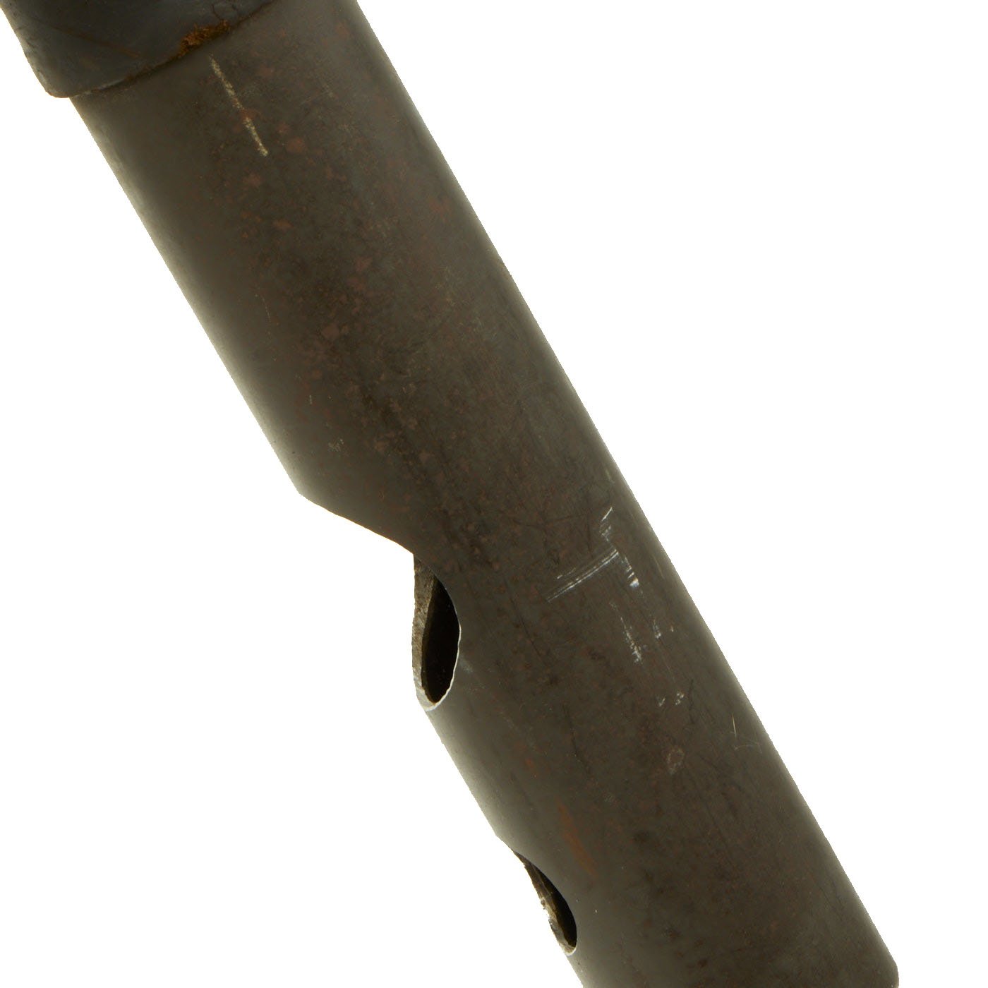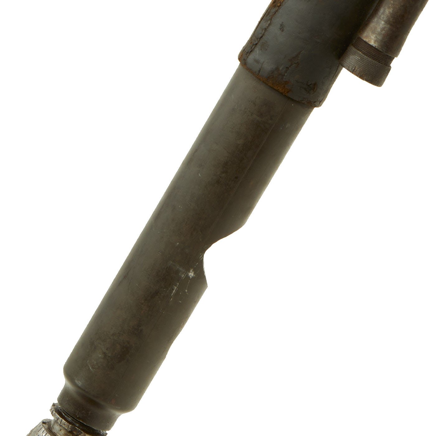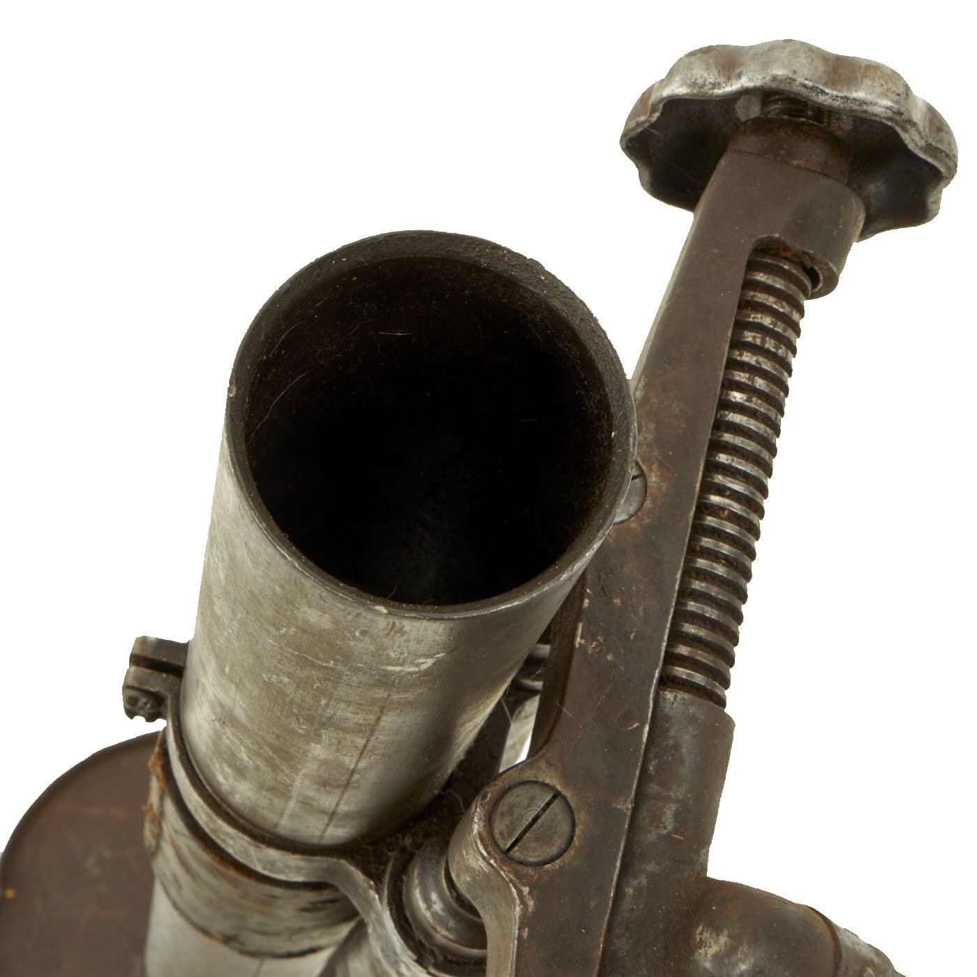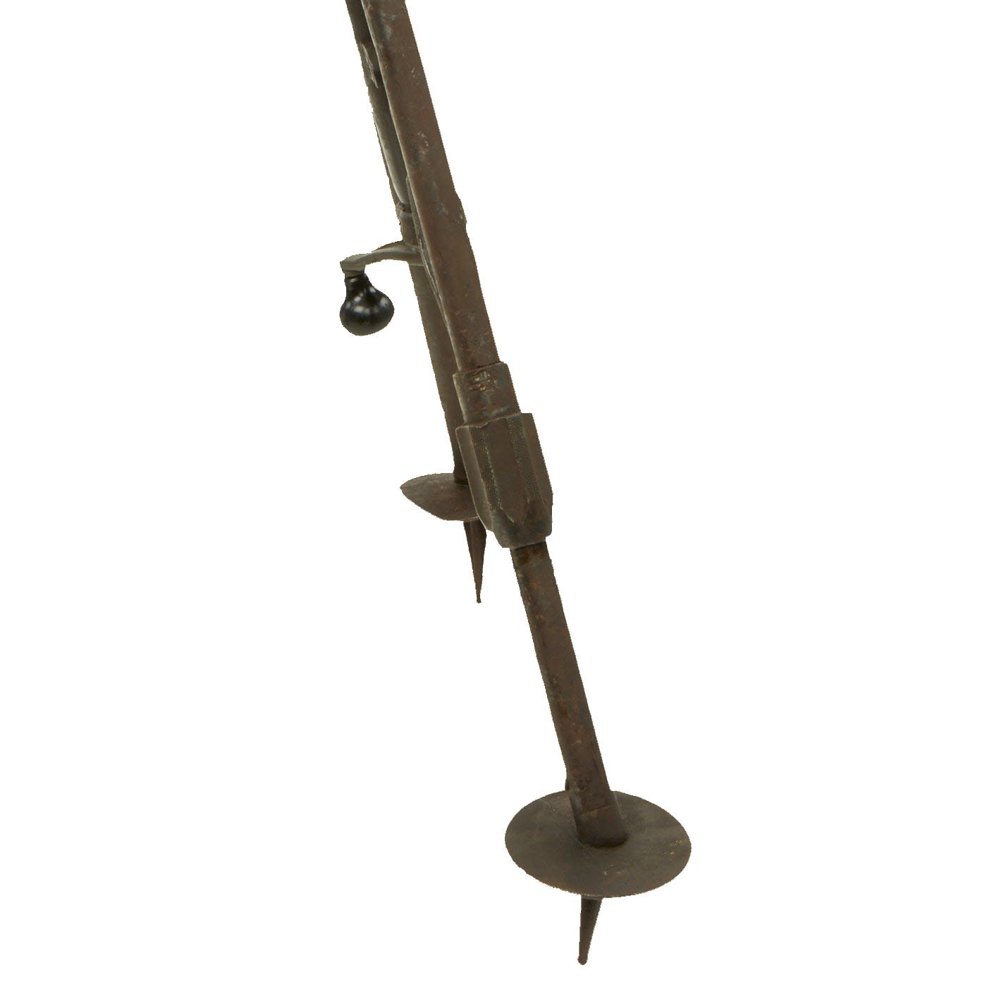 The tube and base plate are in very good condition, however the bipod is currently only able to adjust up and town. The bolt that holds the end of the traverse bar is missing, so the traverse is stuck far to one side. This could most likely be repaired, however as a display piece that isn't really necessary.