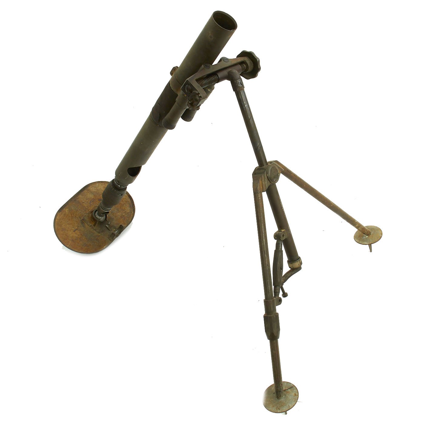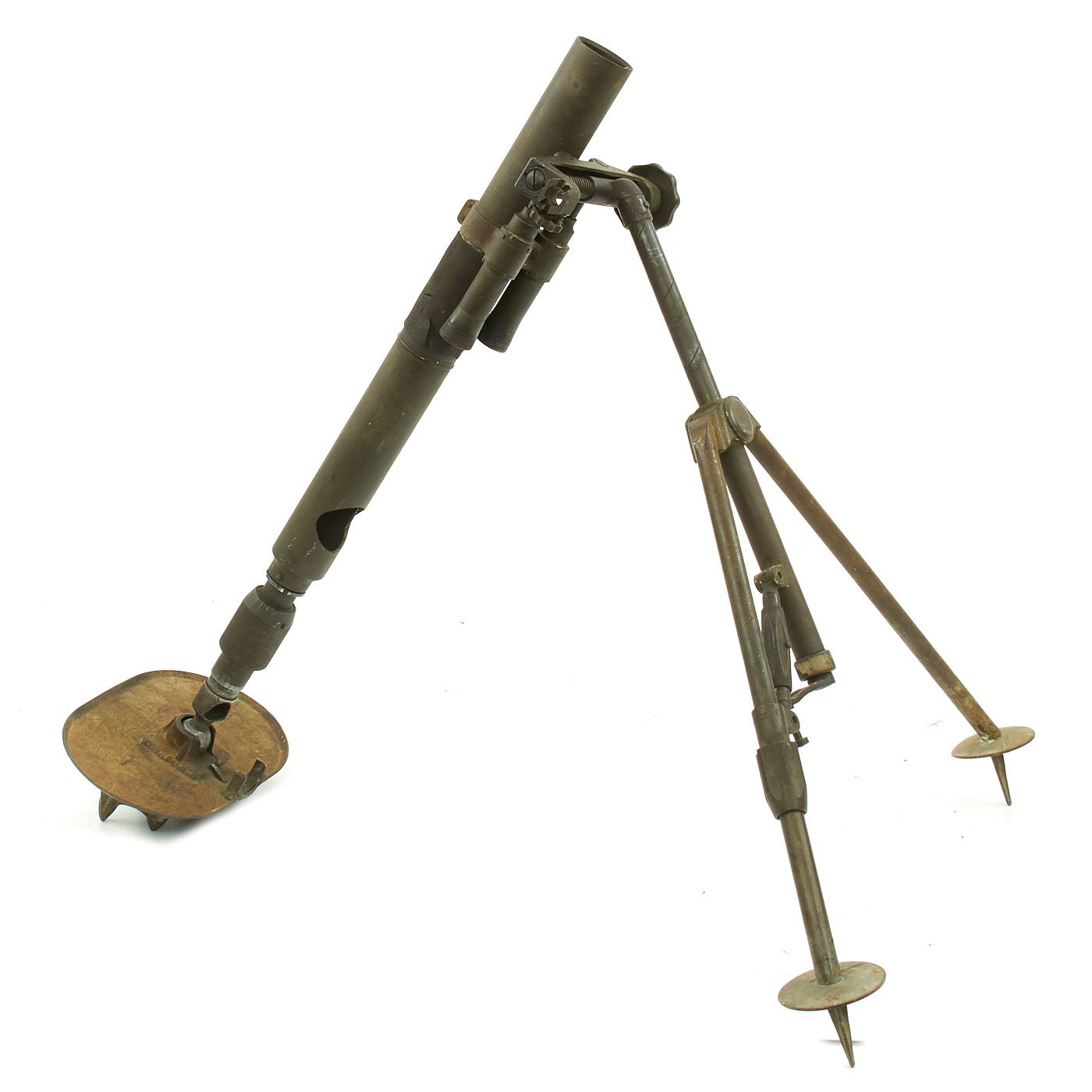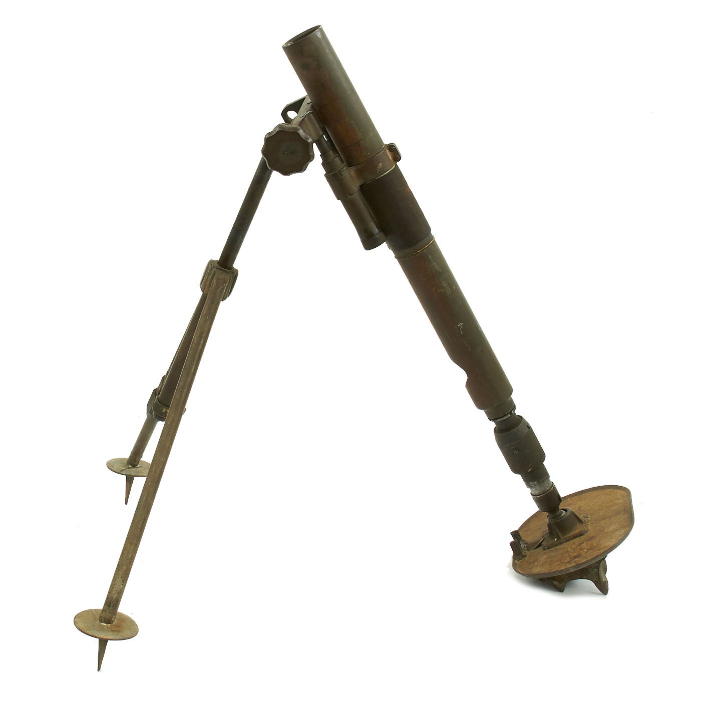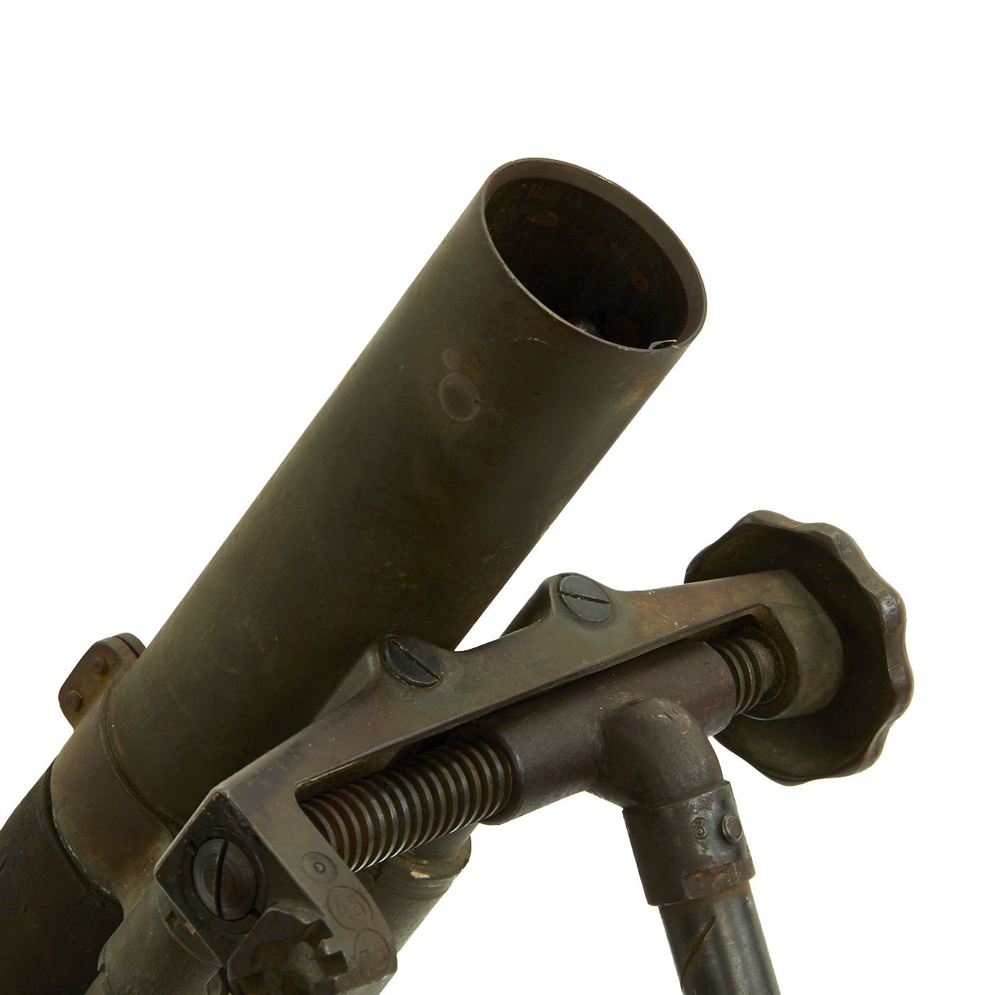 Serial number N8995, Dated 1940 with original adjustable bipod. Offered in very good condition, with clear markings, complete base plate, and replica display mortar round.