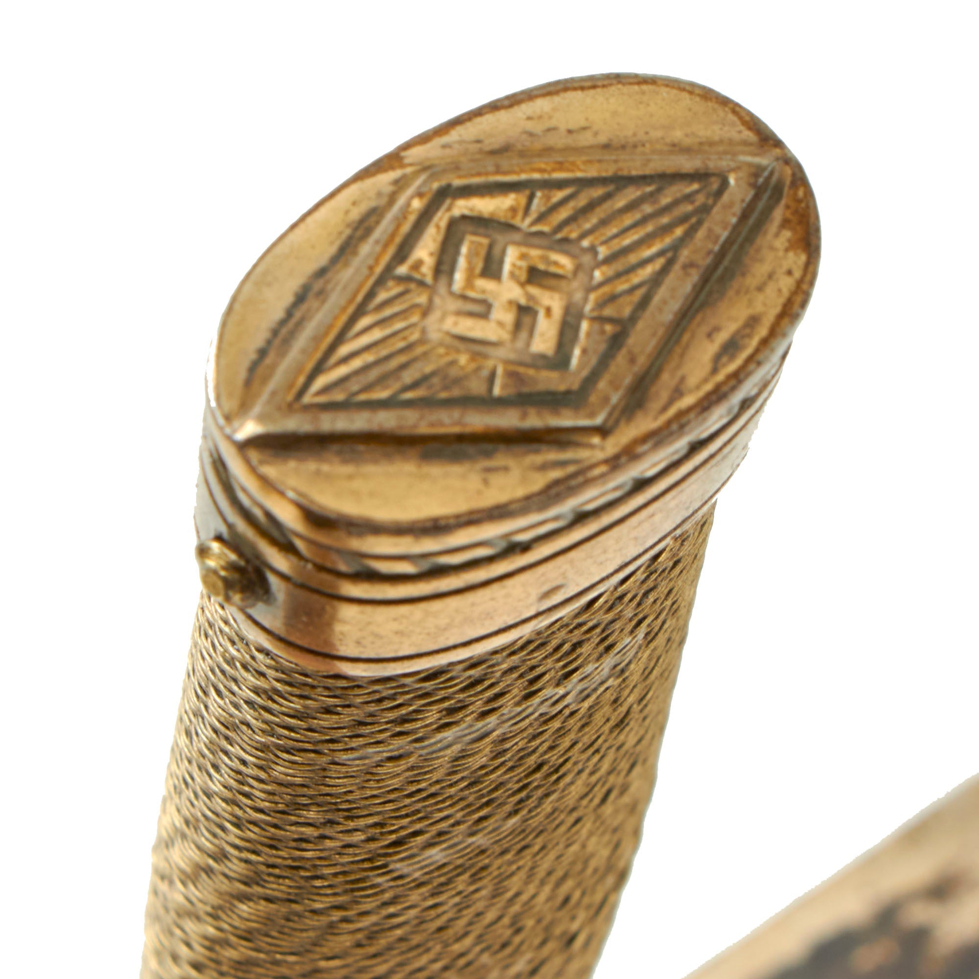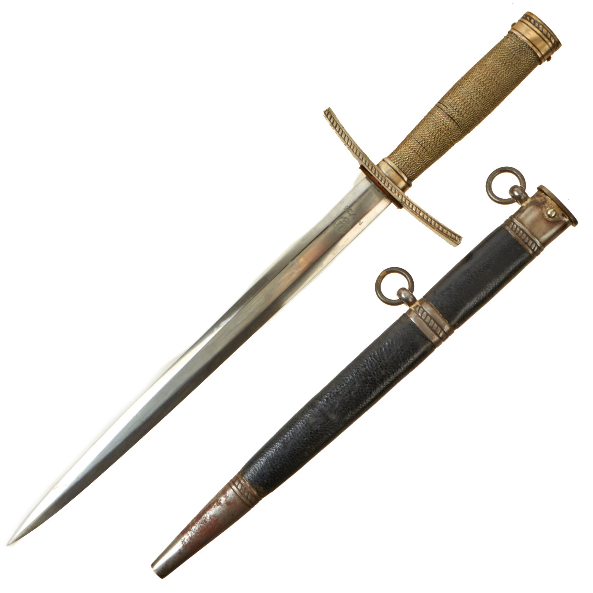Original Item: Only One Available. This is a great example of an extremely rare HJ National Youth Association Dolch für Führer (Dagger for Leaders), complete with its original leather covered scabbard. These were given to members of the HJ paramilitary organization who rose to leadership roles, and this is the first example that we have ever had, and are unlikely to have another any time soon.