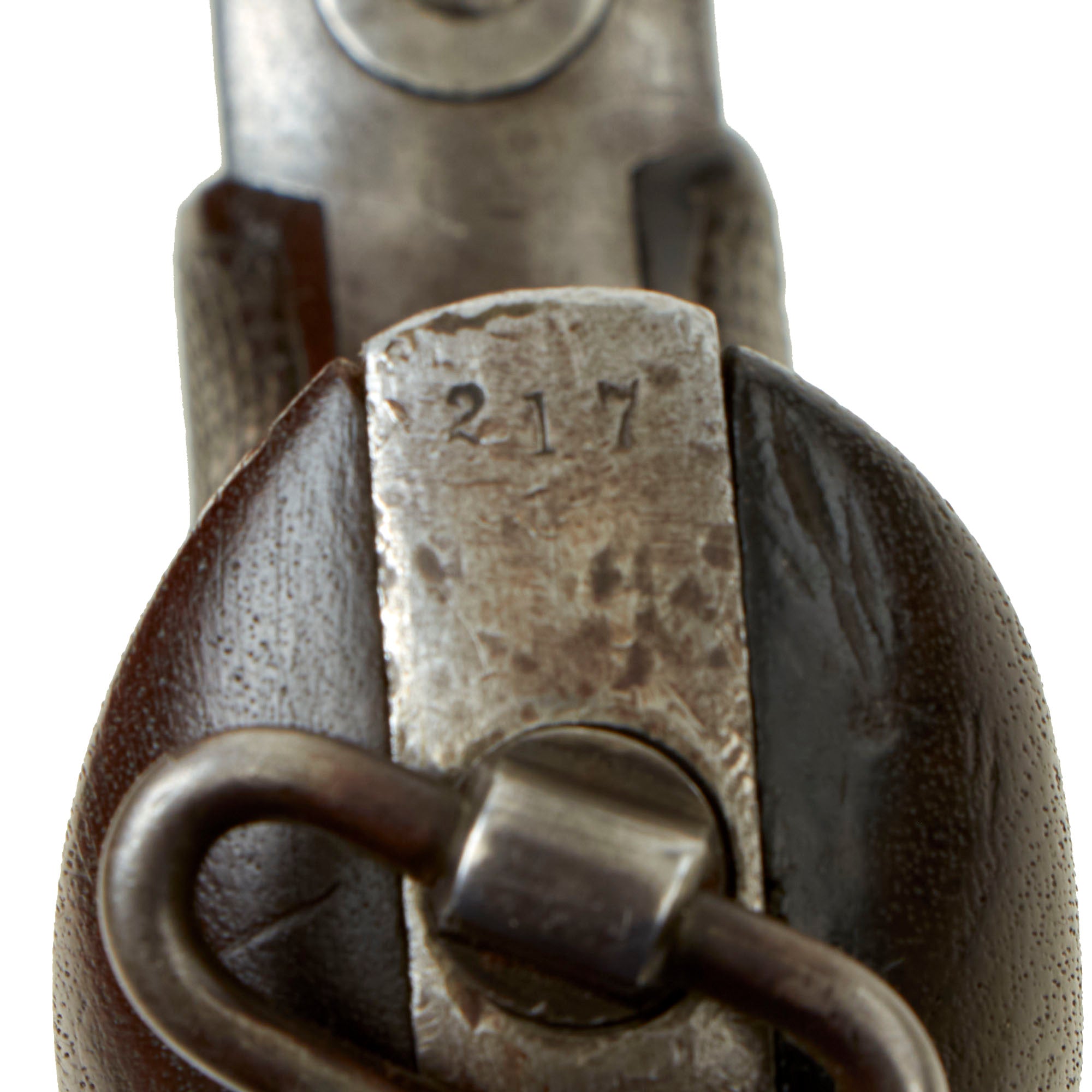 This example quite a bit different from most offerings we have had, not just due to the VERY low serial number, but also due to the barrel address, which indicates it is a British Market revolver retailed at their Pall Mall location. Examples with this marking are very scarce, and this is the first example that we have ever had. There are even still some faint CROWN / V markings on the sides of the cylinder, which unfortunately are too faint to photograph.