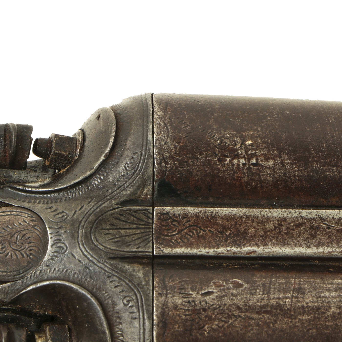 This well used DOUBLE BARREL 12 gauge Hammer Shotgun presents very nicely, with a lovely patina of age. Originally intended for hunting and home defense these saw a lot of use on the Frontier and were supplied to both Stage Coach Lines and Railroads.