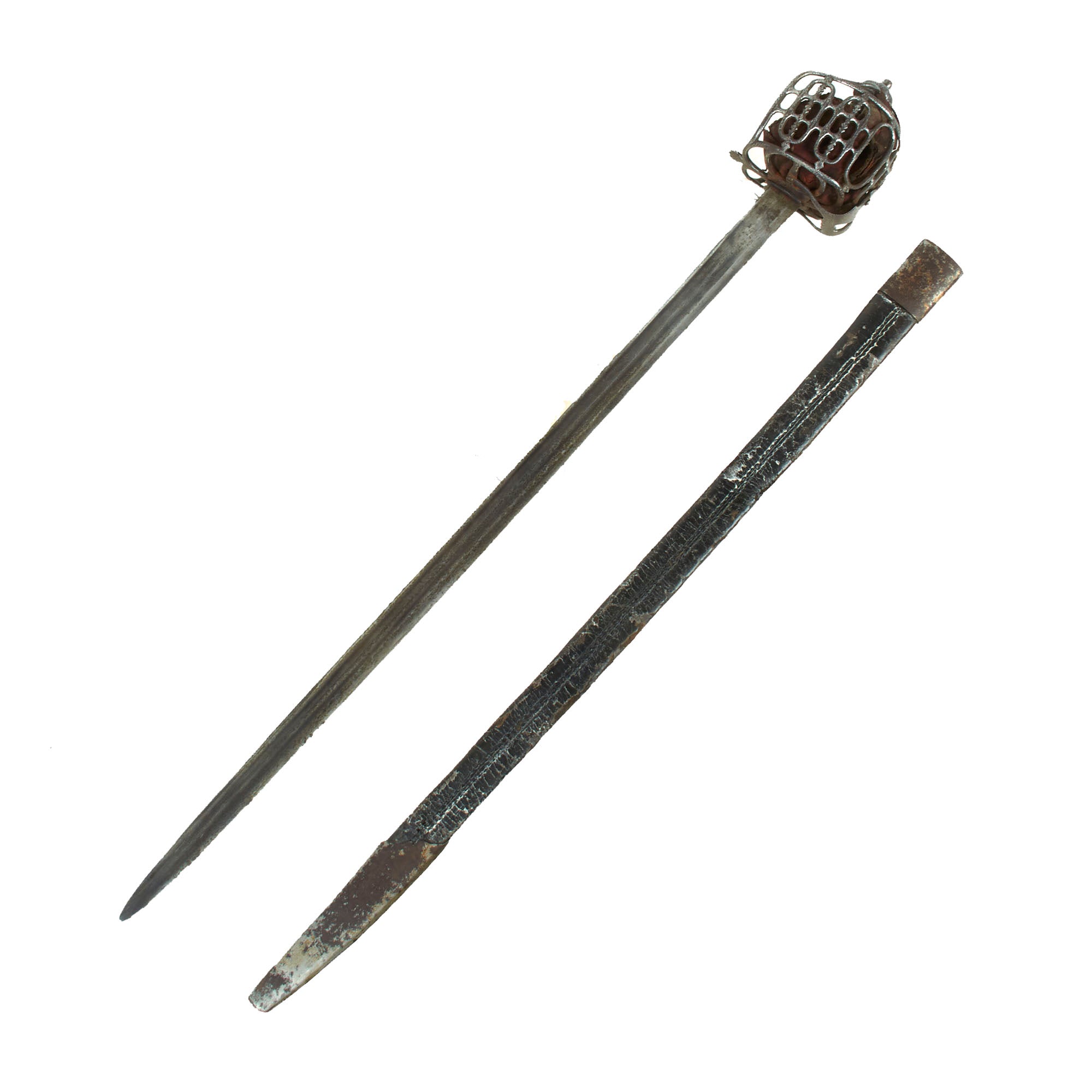This is a tremendously preserved piece of Scottish history, one that was lucky enough to have escaped the fate of becoming part of the fence at Twickenham House. This is the first example from this period that we’ve offered with its original scabbard, and it may truly be the last. Don’t miss out on this one! Comes ready for further research and display.