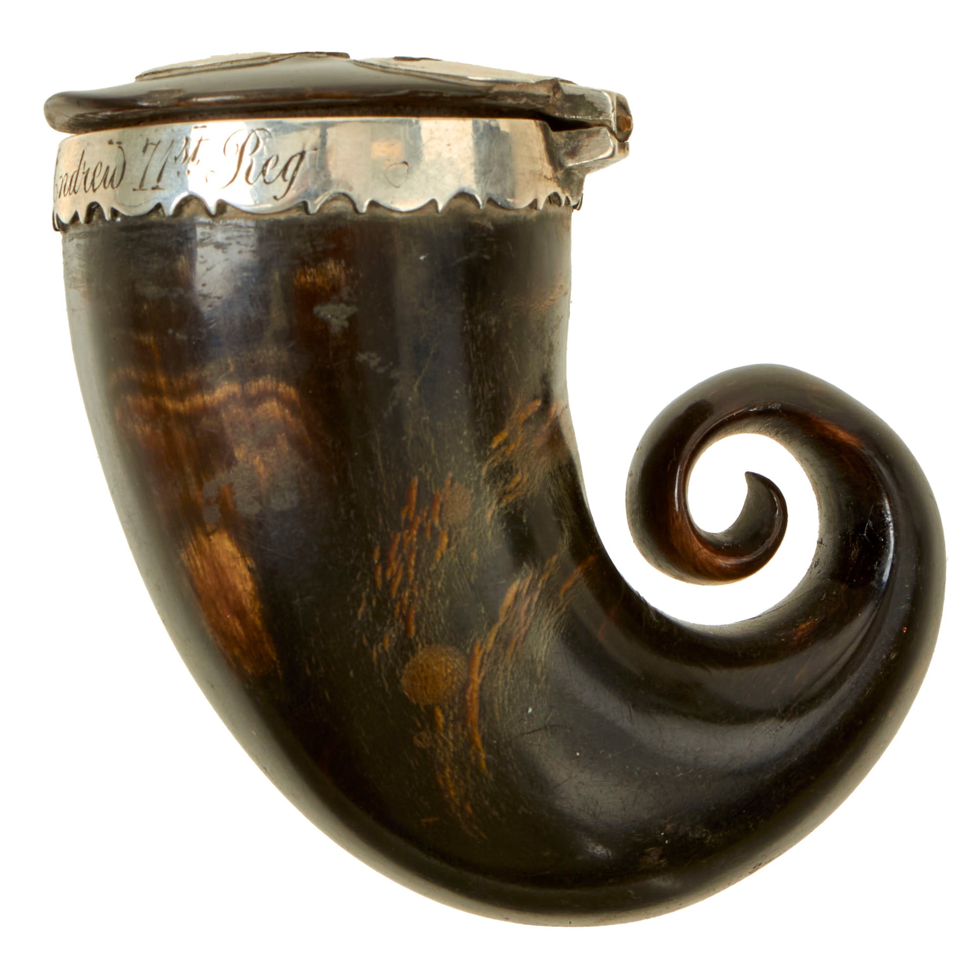 A very fine Snuff Mull named to an Officer on whom no research has yet been made that we can find. He most likely served with the regiment in the late 18th century but without a concrete first name we can’t find much on him. Ready to research and display!