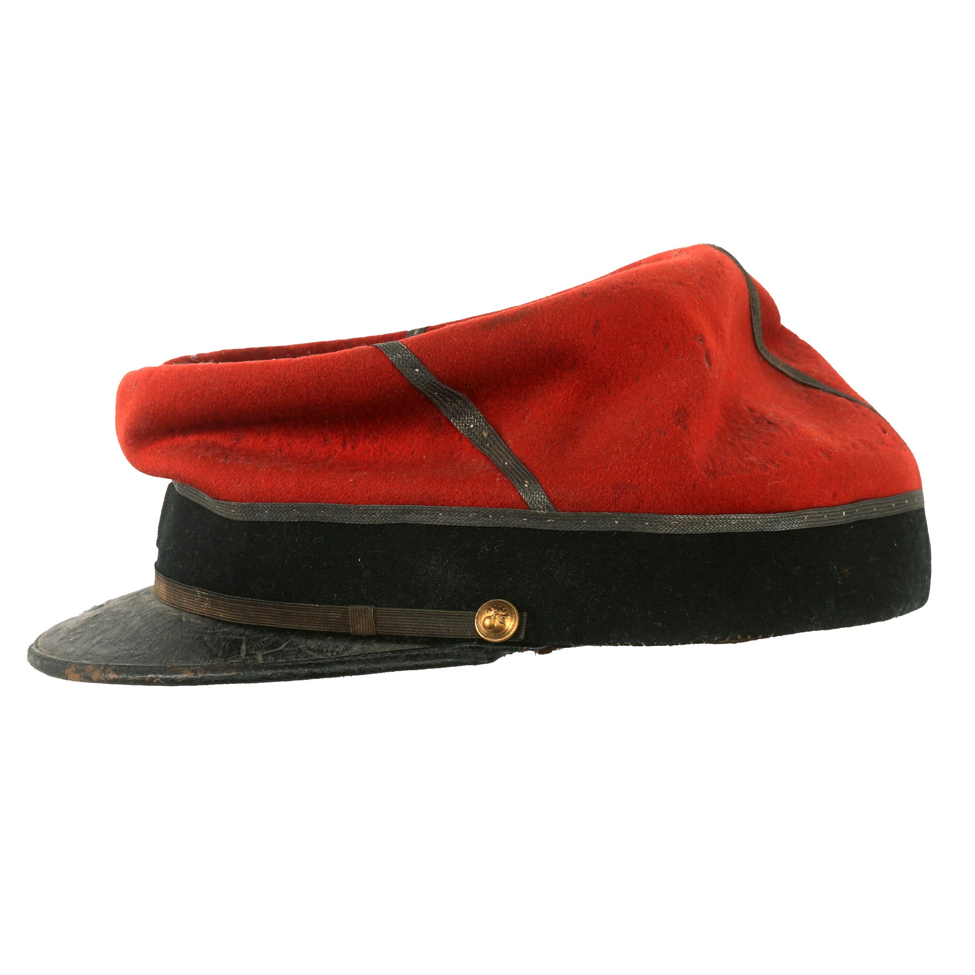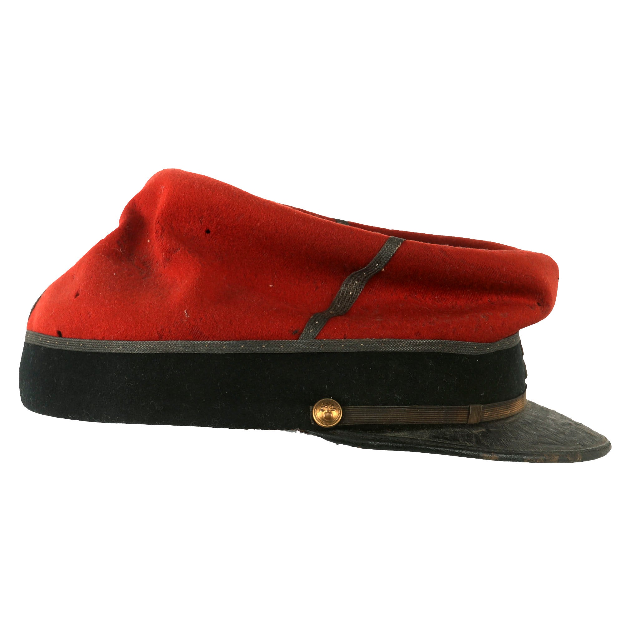 Original Item: Only One Available. The kepi is a military-styled headdress with a cylindrical form, a flat circular top, and a visor. It was commonly worn by the French Army but was also adopted by various other countries, including America.