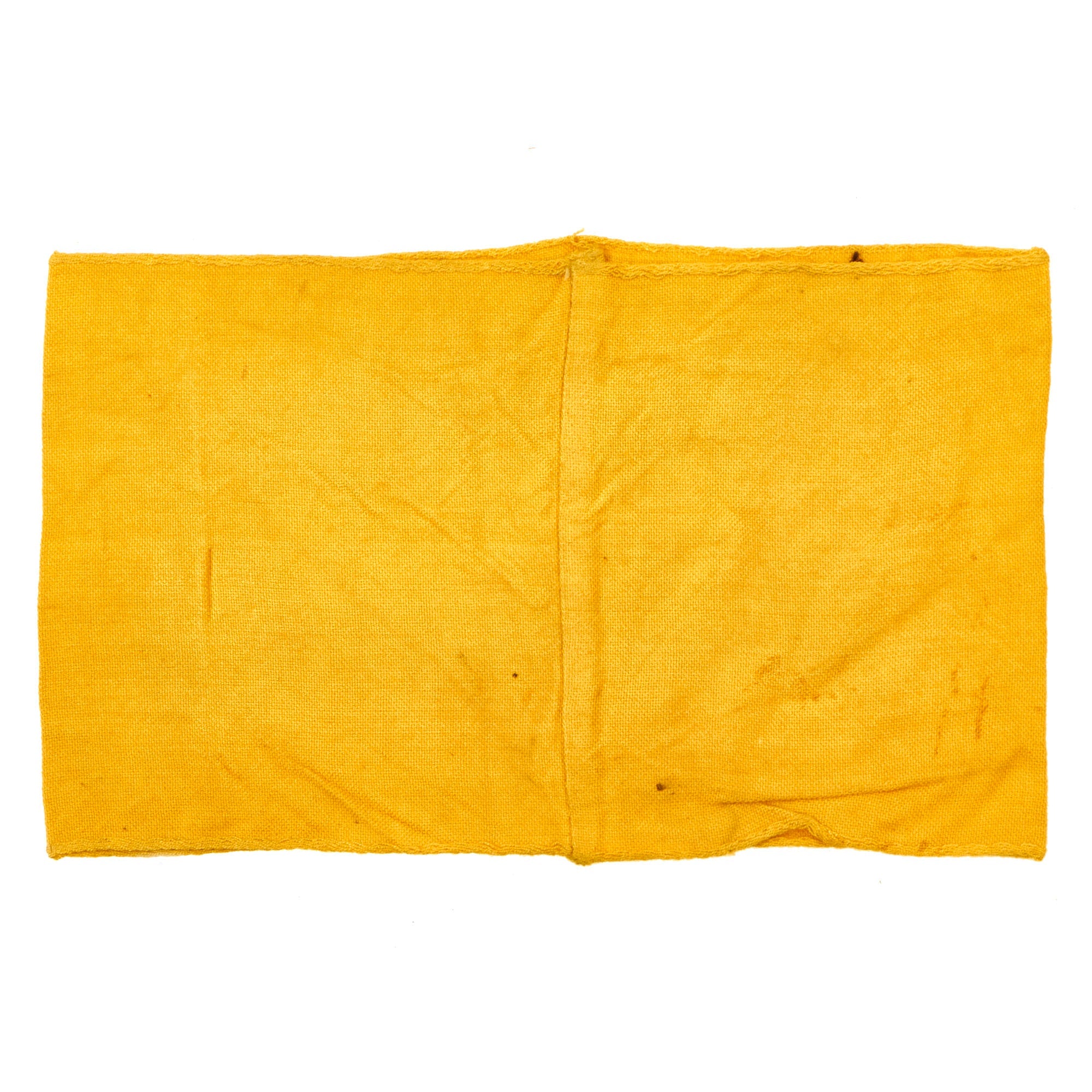 The yellow Deutsche Wehrmacht armband was also worn by uniformed German personnel, who were attached to the Armed Forces during WWII. Often, these were worn by men of the Reichsarbeitsdienst and Reichsbahn who were operating with the German Army in the occupied countries. It has a textbook BeVO woven insignia, and measures approximately 1 3 1/2" x 4", sewn together in the back.