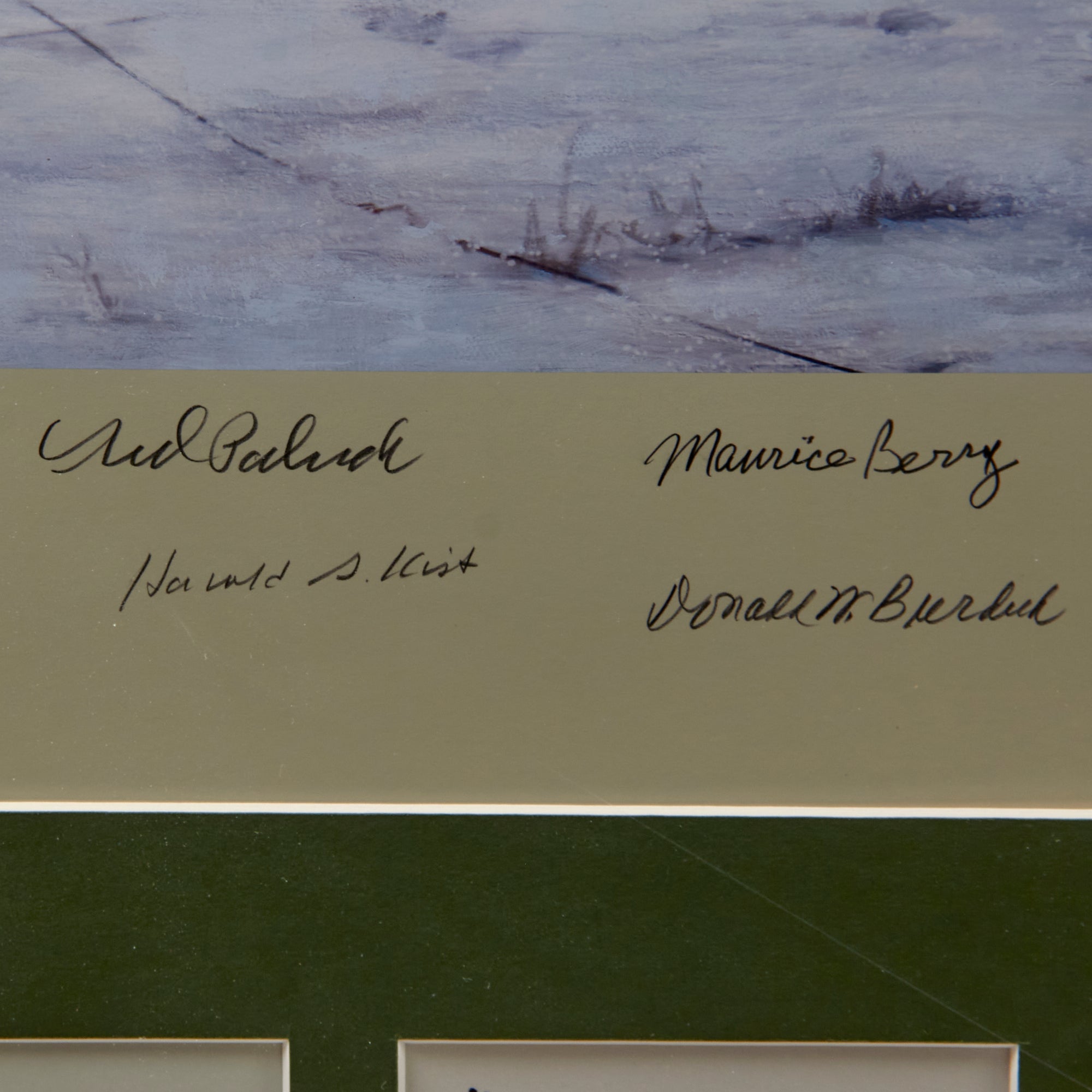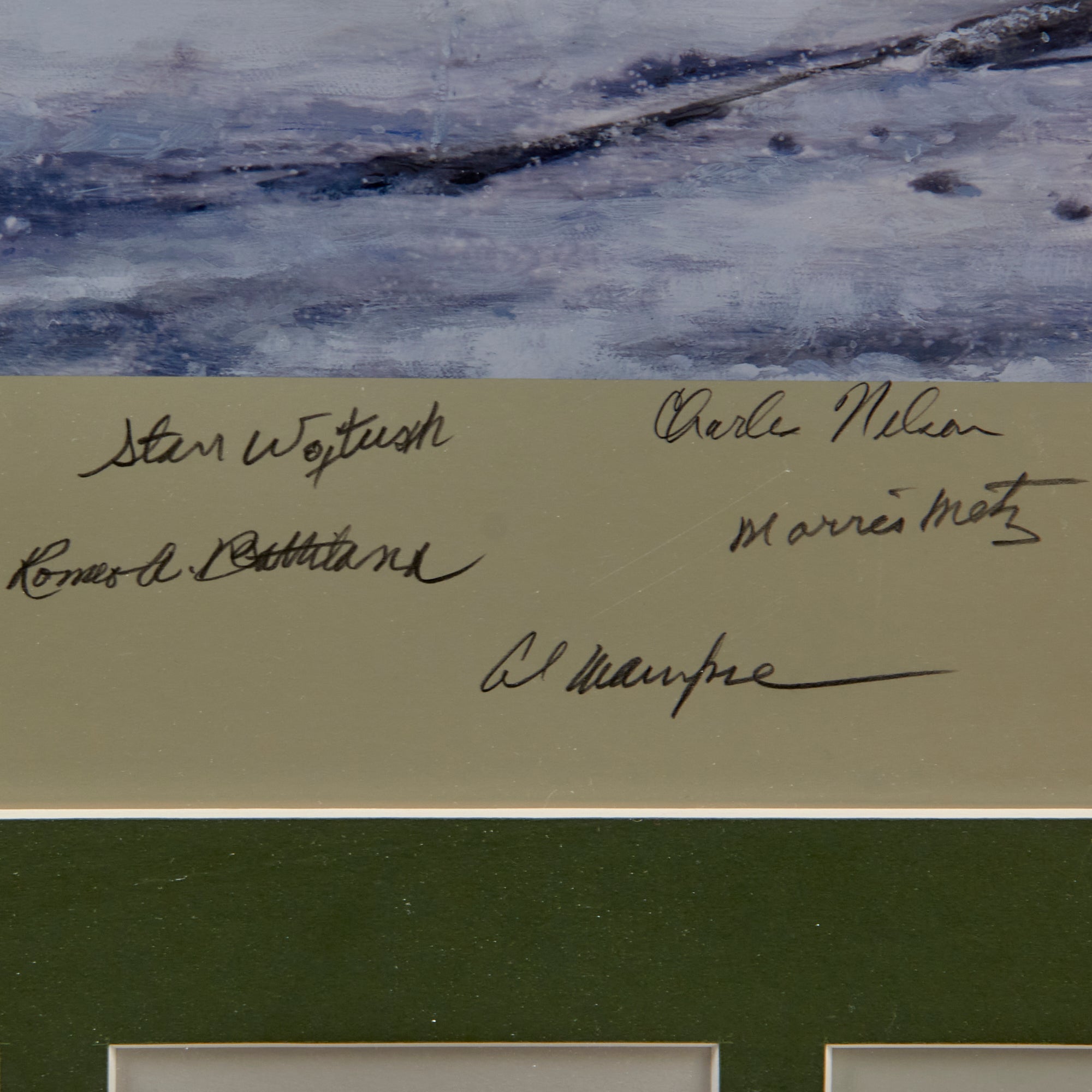 Additional signatures below the print in the frame include