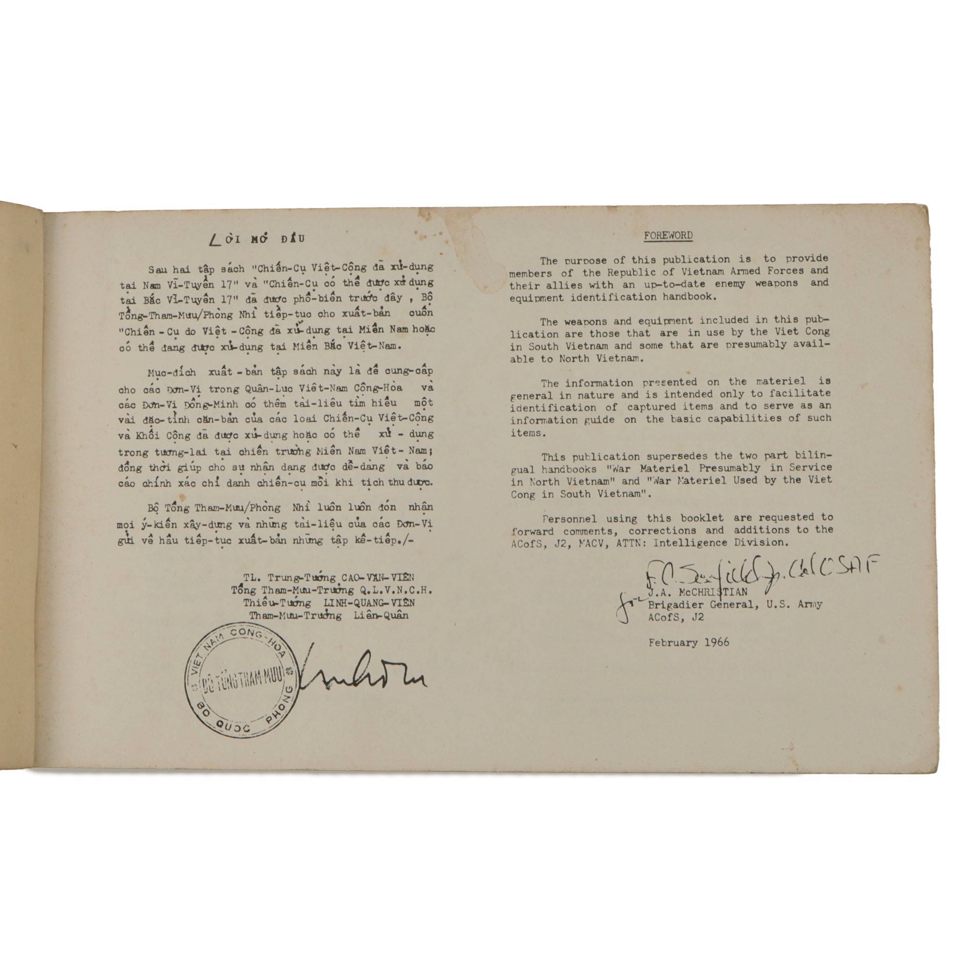 Original Items. Only One Lot Available. This is a great lot of two Enemy Weapon Familiarization Guides used by American troops and South Vietnamese troops during the Vietnam War. They go into detail of enemy weapons and weapons supplied by other countries.