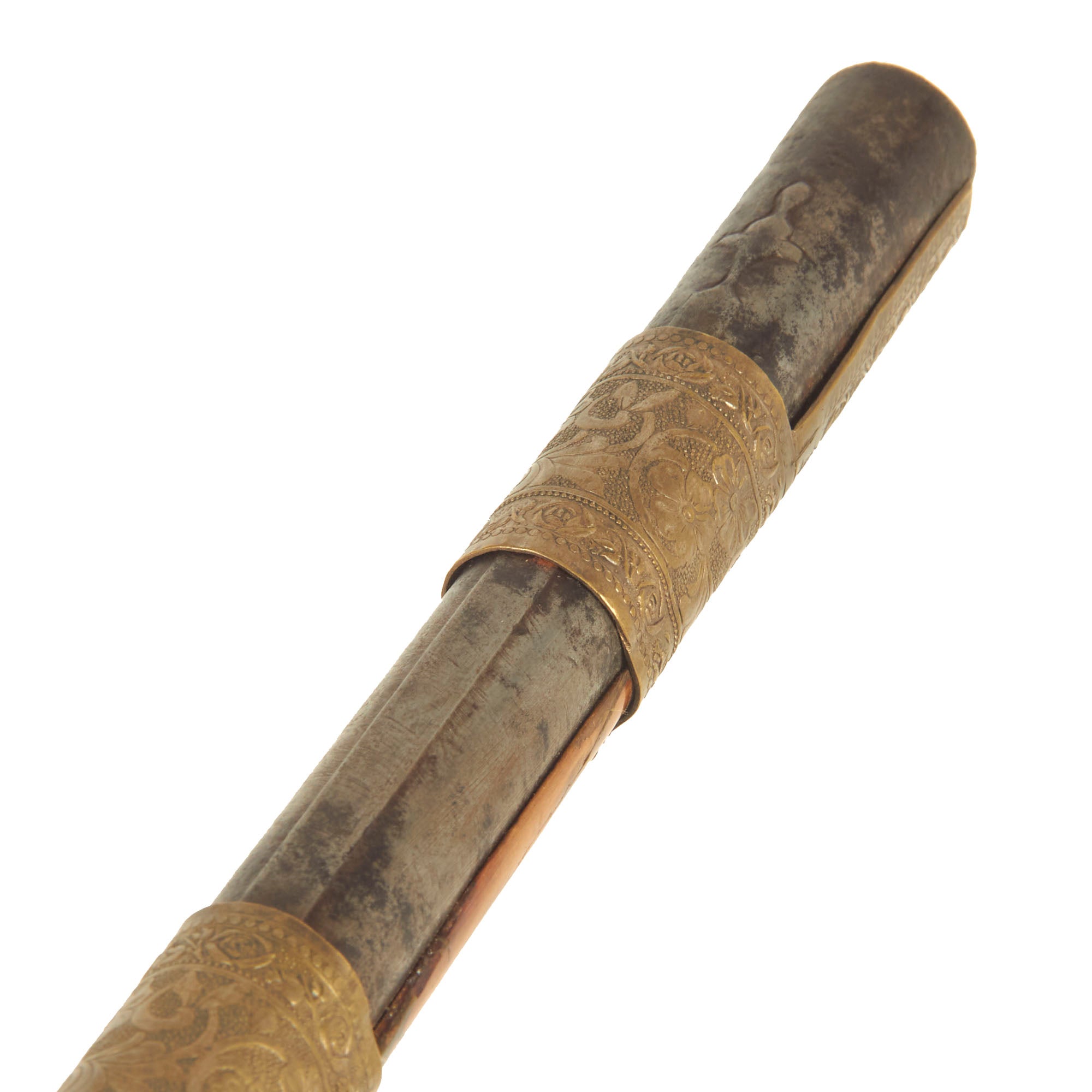 The very compact MIQUELET lock mechanism is still in full working order and can still be cocked and dry fired, though it does need a bit of adjustment and does not hold at half cock. The trigger is an iron ball, typical for the pattern.