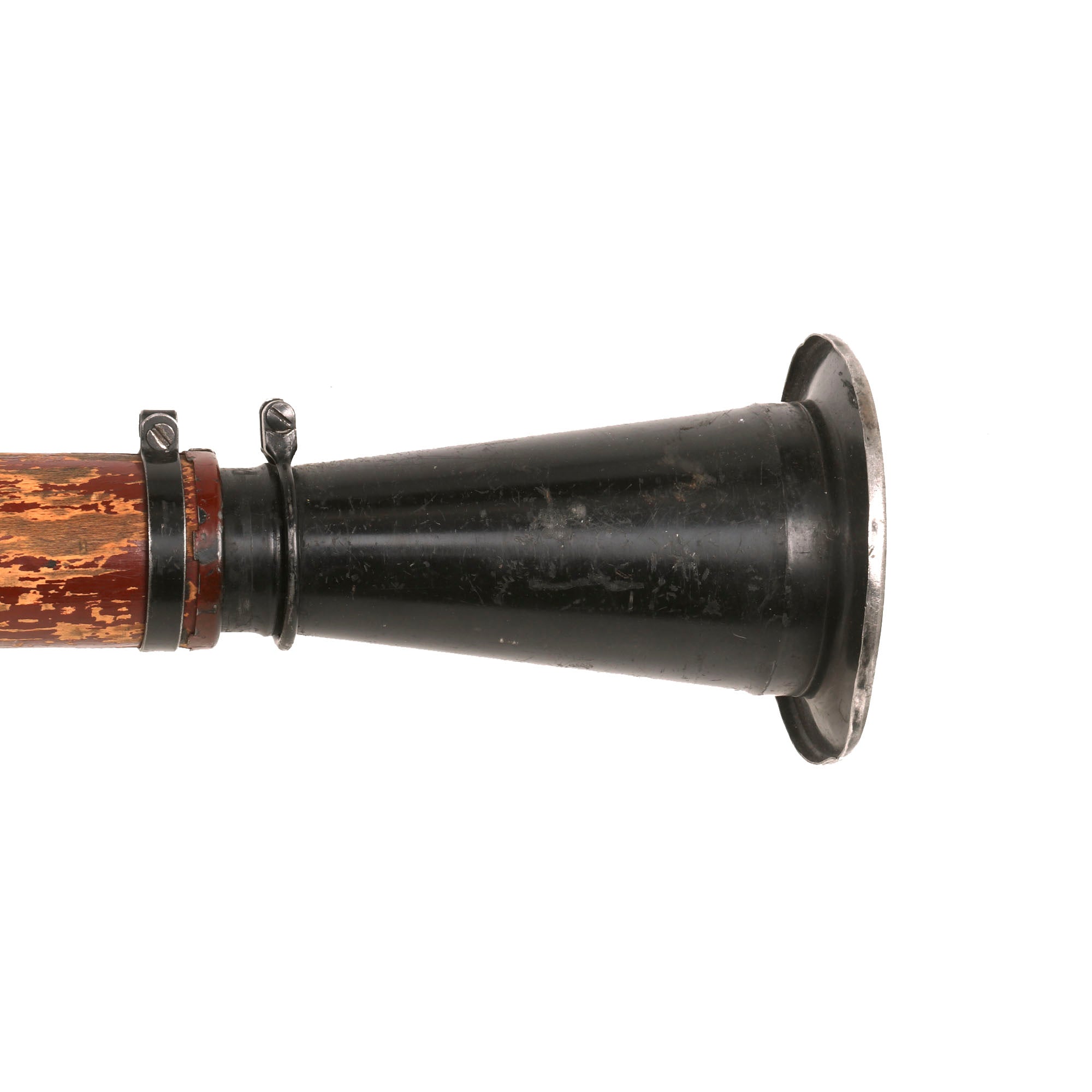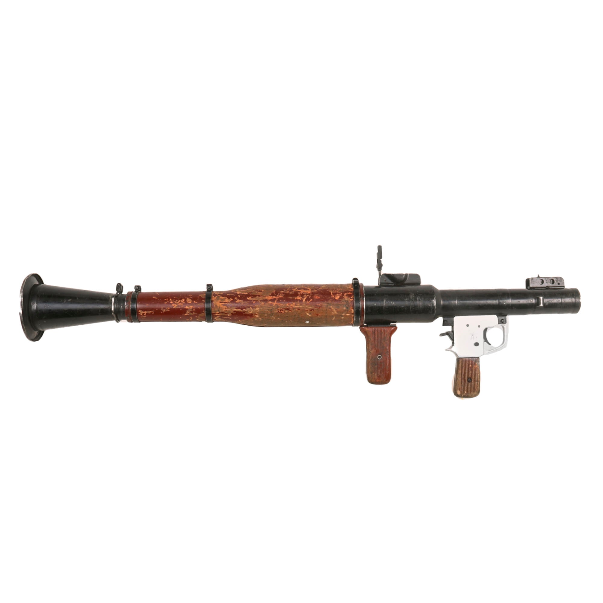 There is heavy wear across the launcher, with much of the finish worn off of the wooden fittings.