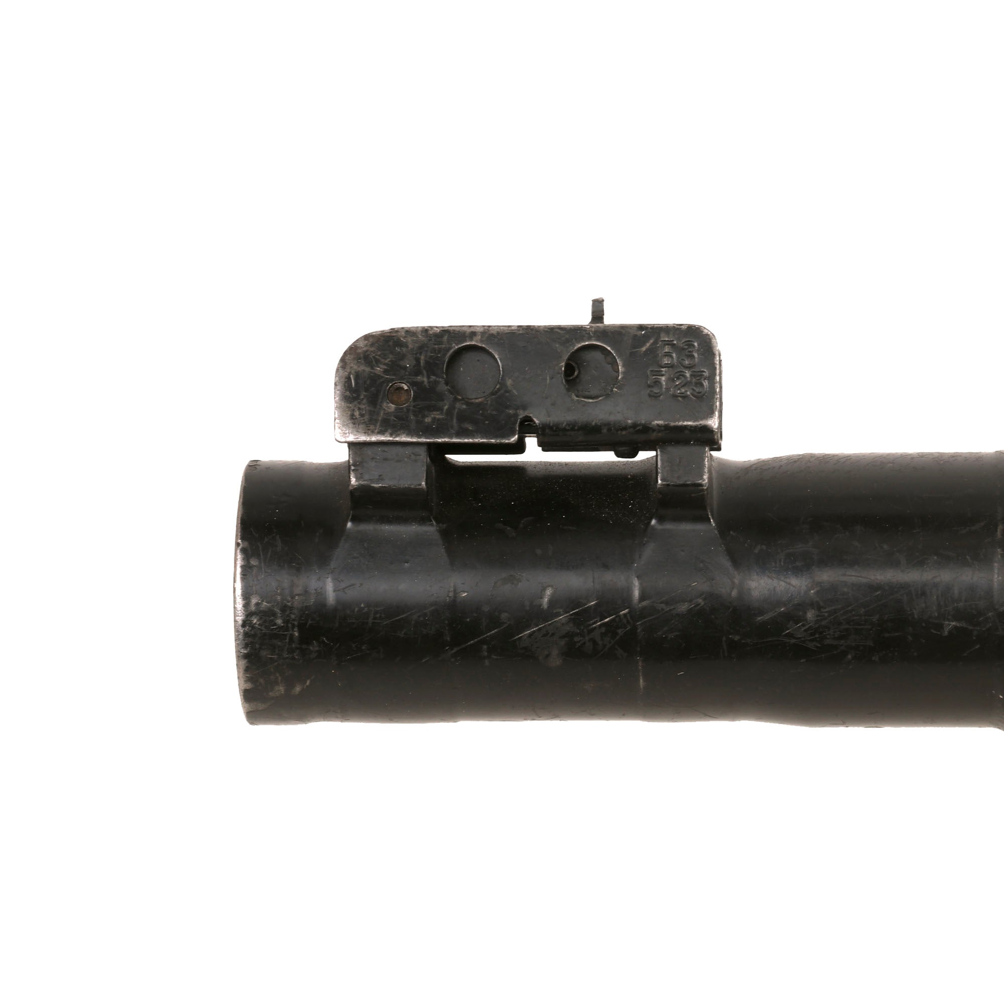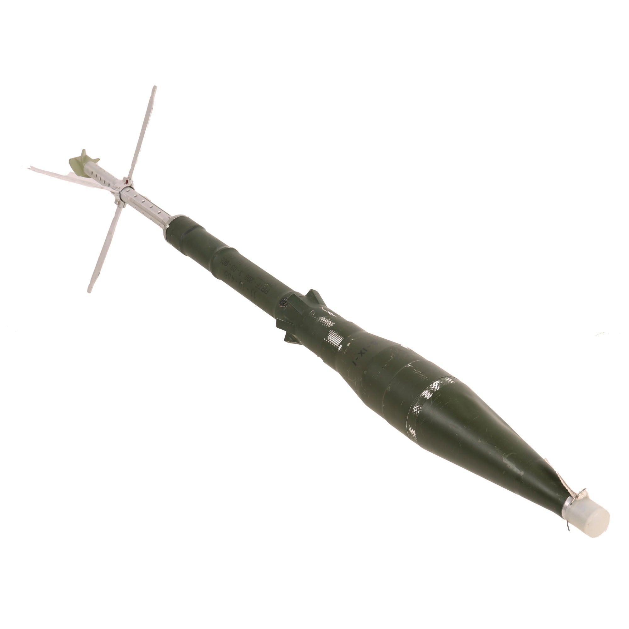 The round even has the original plastic cap over the tip with a small piece of cloth attached. Due to the rod in the barrel, the round cannot be properly inserted into the launcher without removing the fin assembly on the rear. These non-Chinese rounds are very difficult to find. A really great display opportunity!