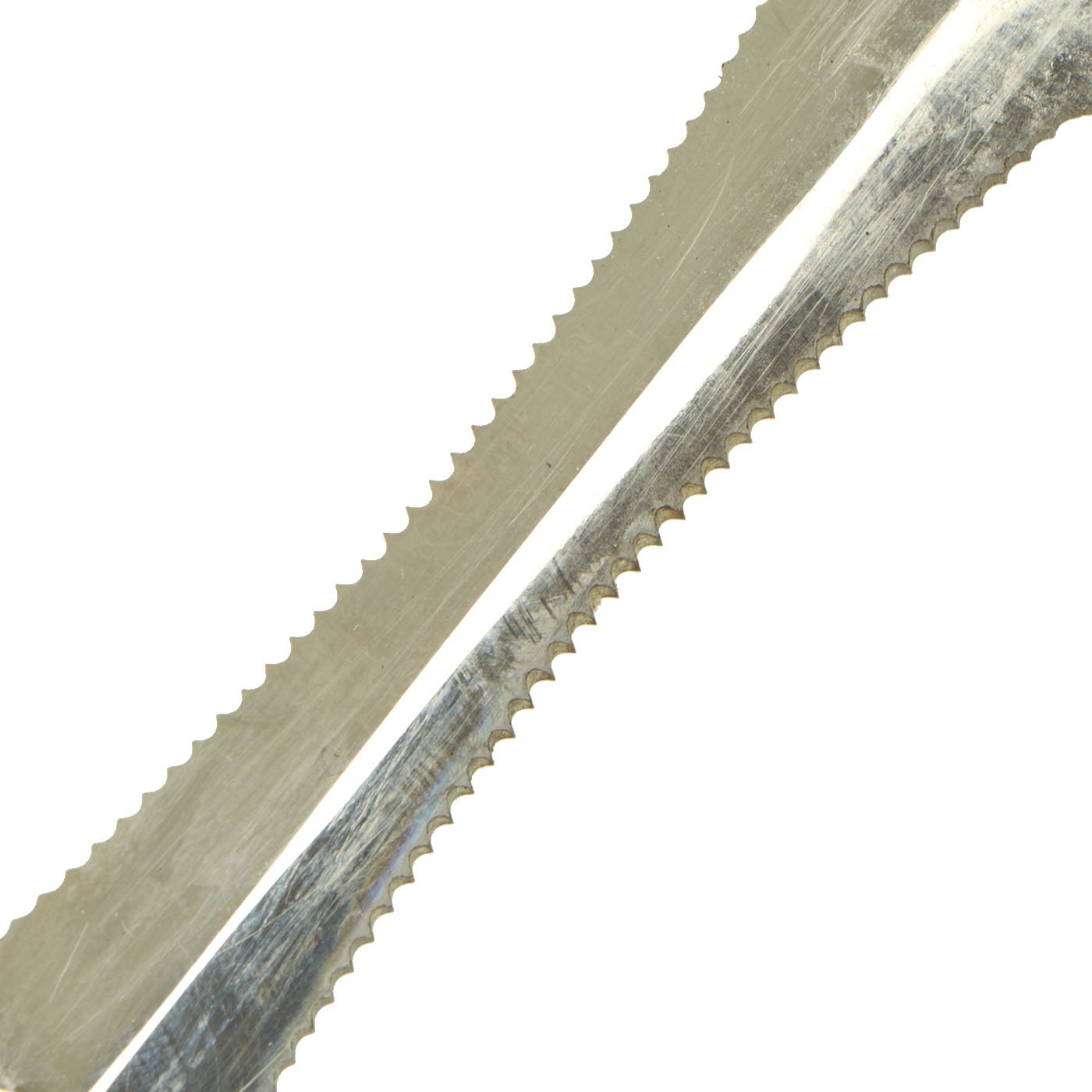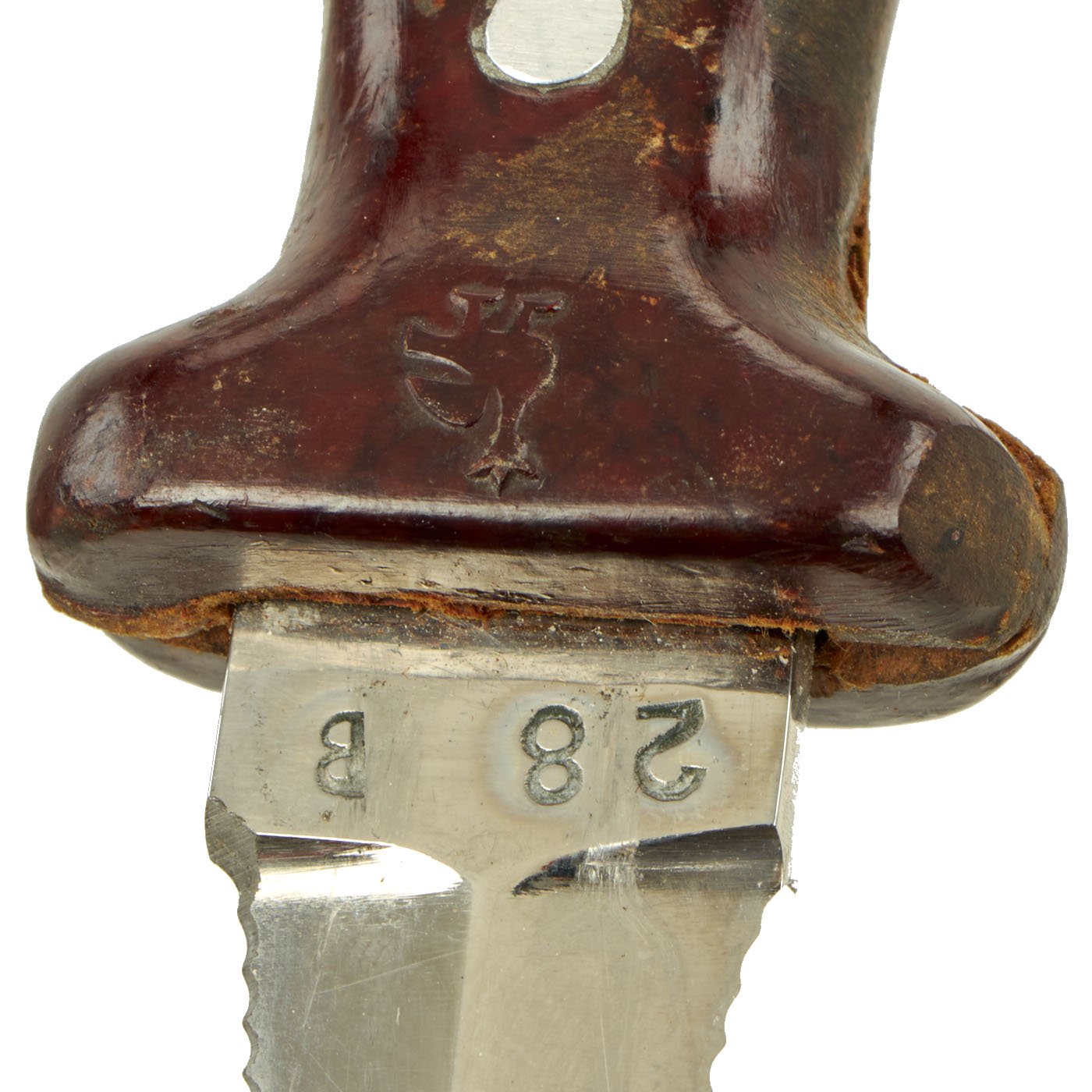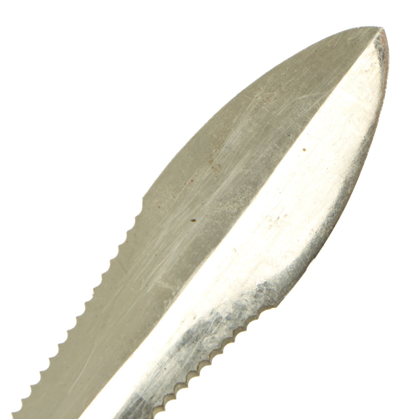 Original Item: Only One Available. Original Soviet military issue Patarooper’s Drop Knife as issued to parachutists and pilots during the Cold War. This particular knife dates from the Soviet Afghan War era. These knives were used by Russian paratroopers who were hung up or tangled in their parachutes' shroud lines. The knife has a unique shaped serrated blade, a brown bakelite grip and a ribbed plastic sheath. Included is the original plastic sheath. Appears unissued, but shows signs of storage wear.