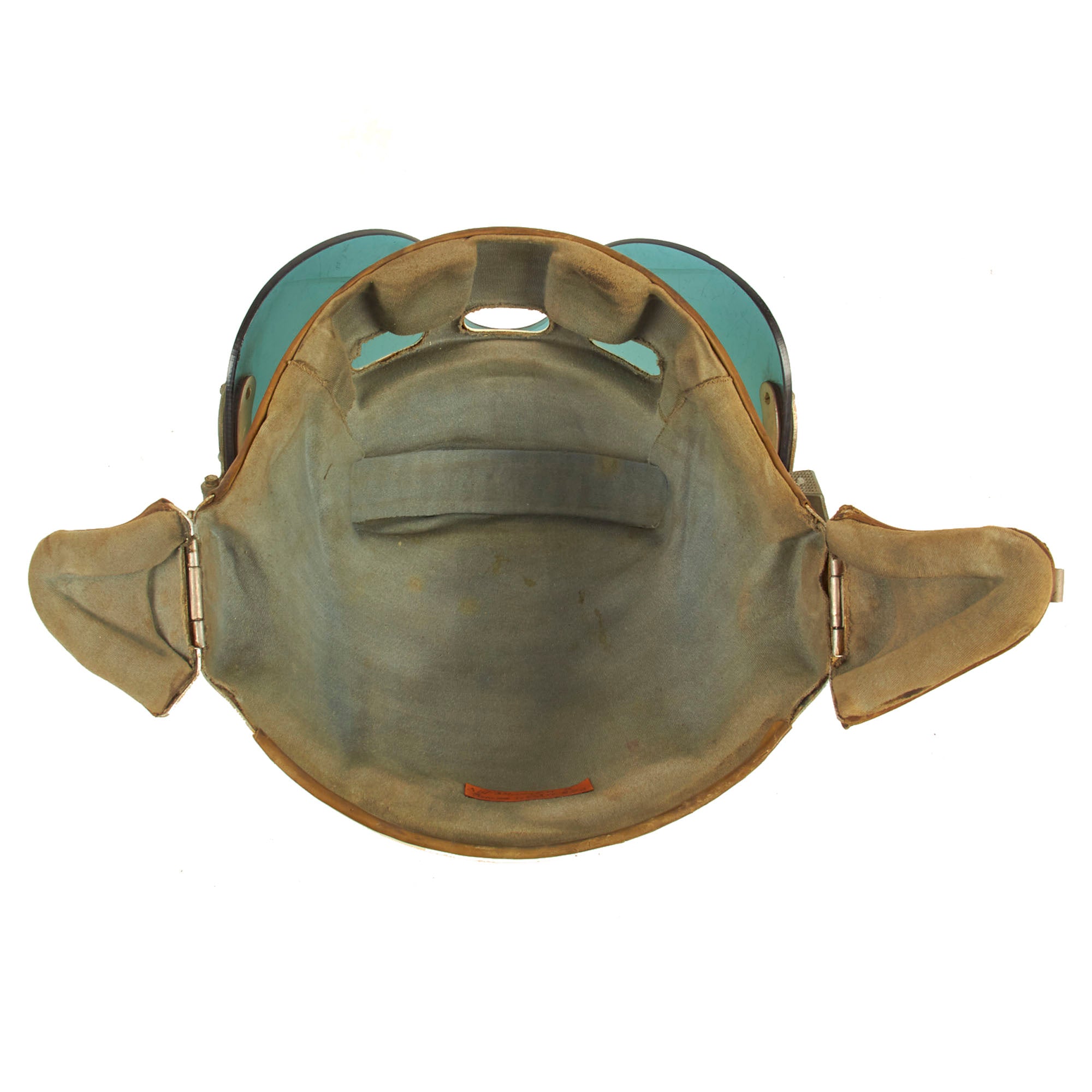 All components are in wonderful condition and the helmet, while it was issued out, it presents itself with little wear. The back side of the helmet has a name painted on in red along with a design. The leather helmet/liner is in wonderful, similar wear presenting itself very nicely.