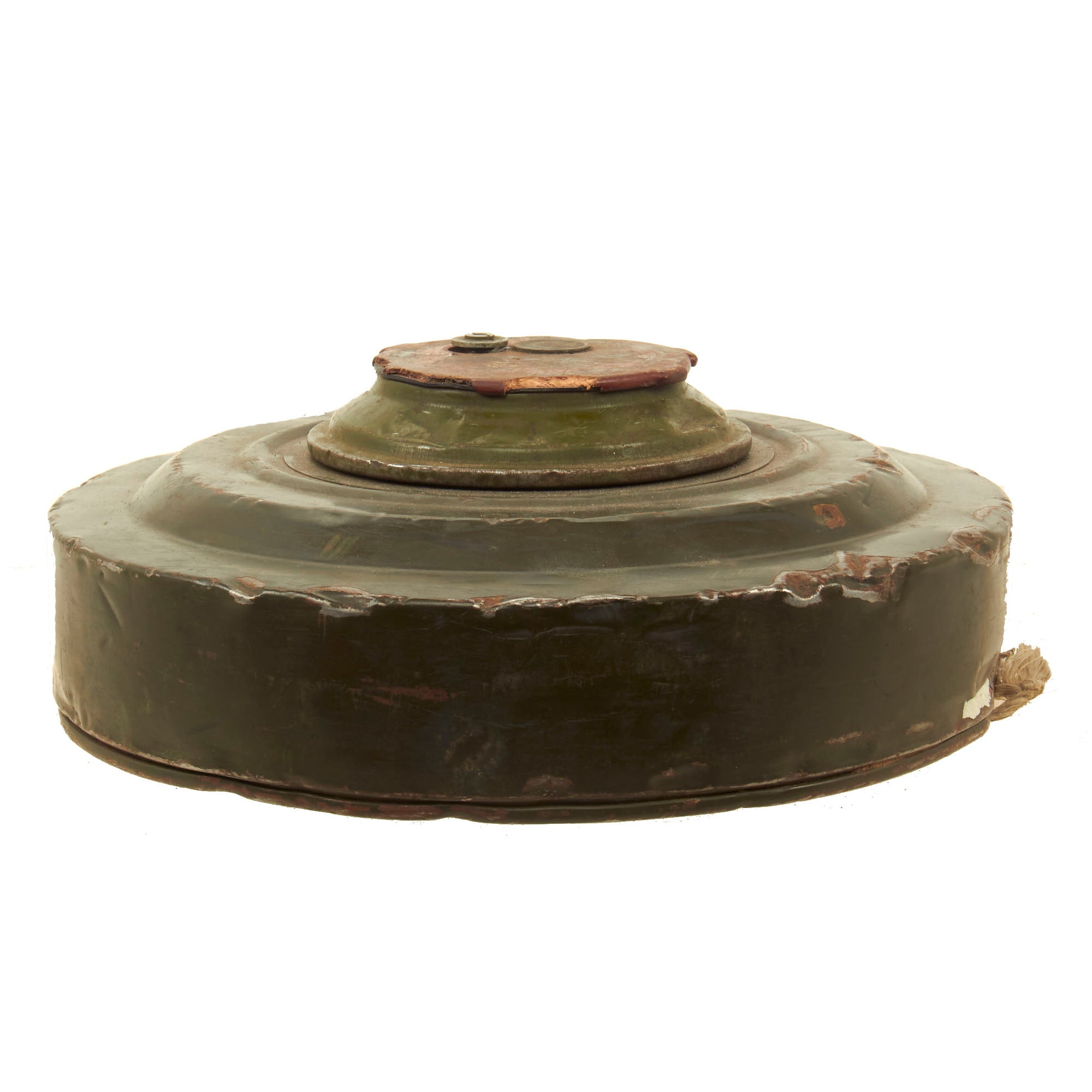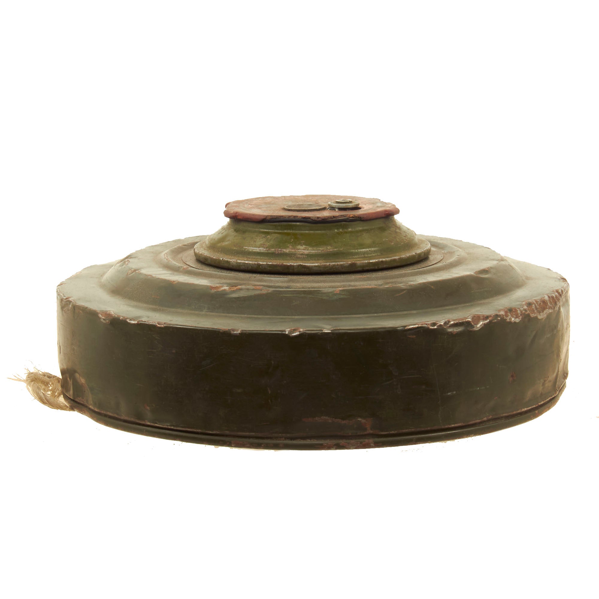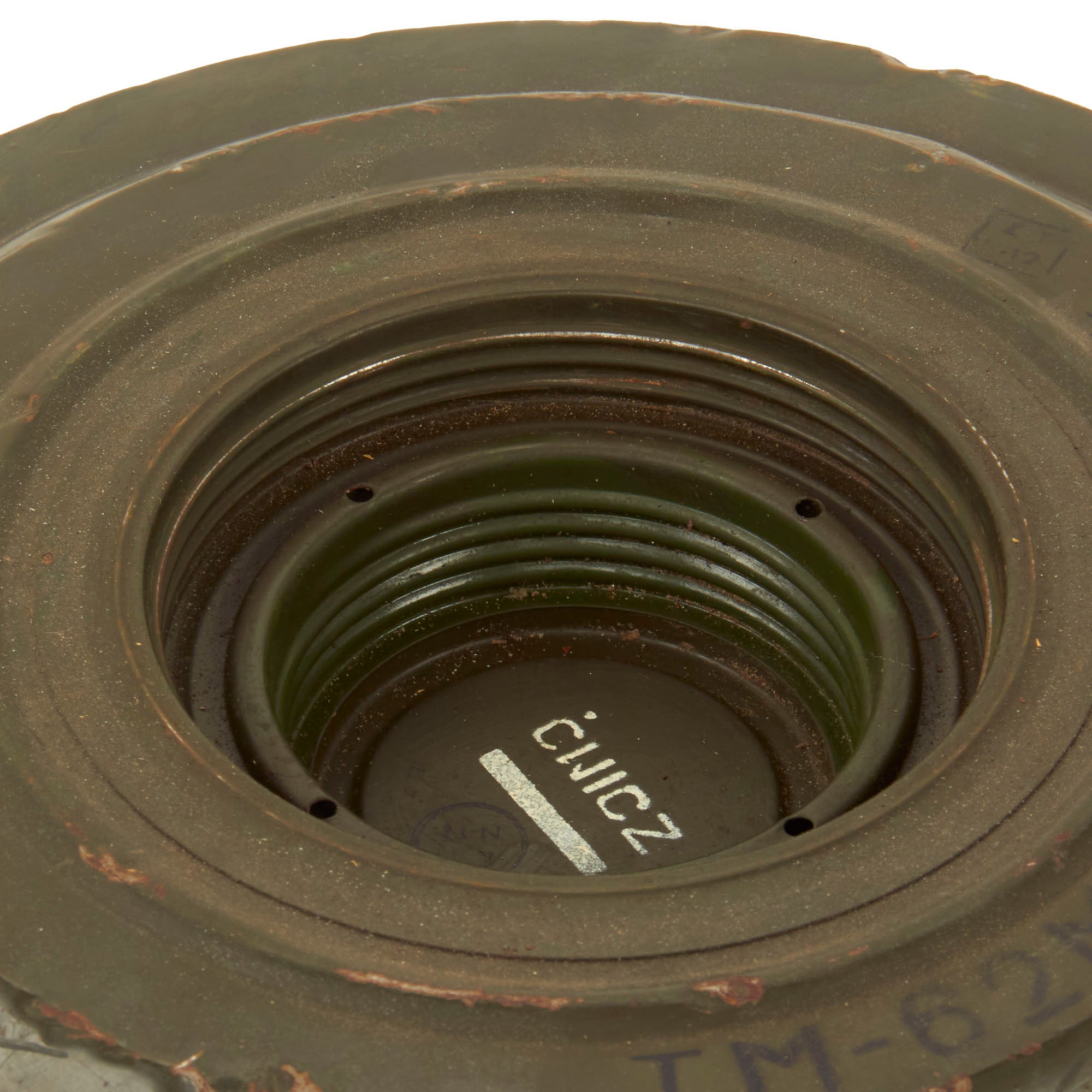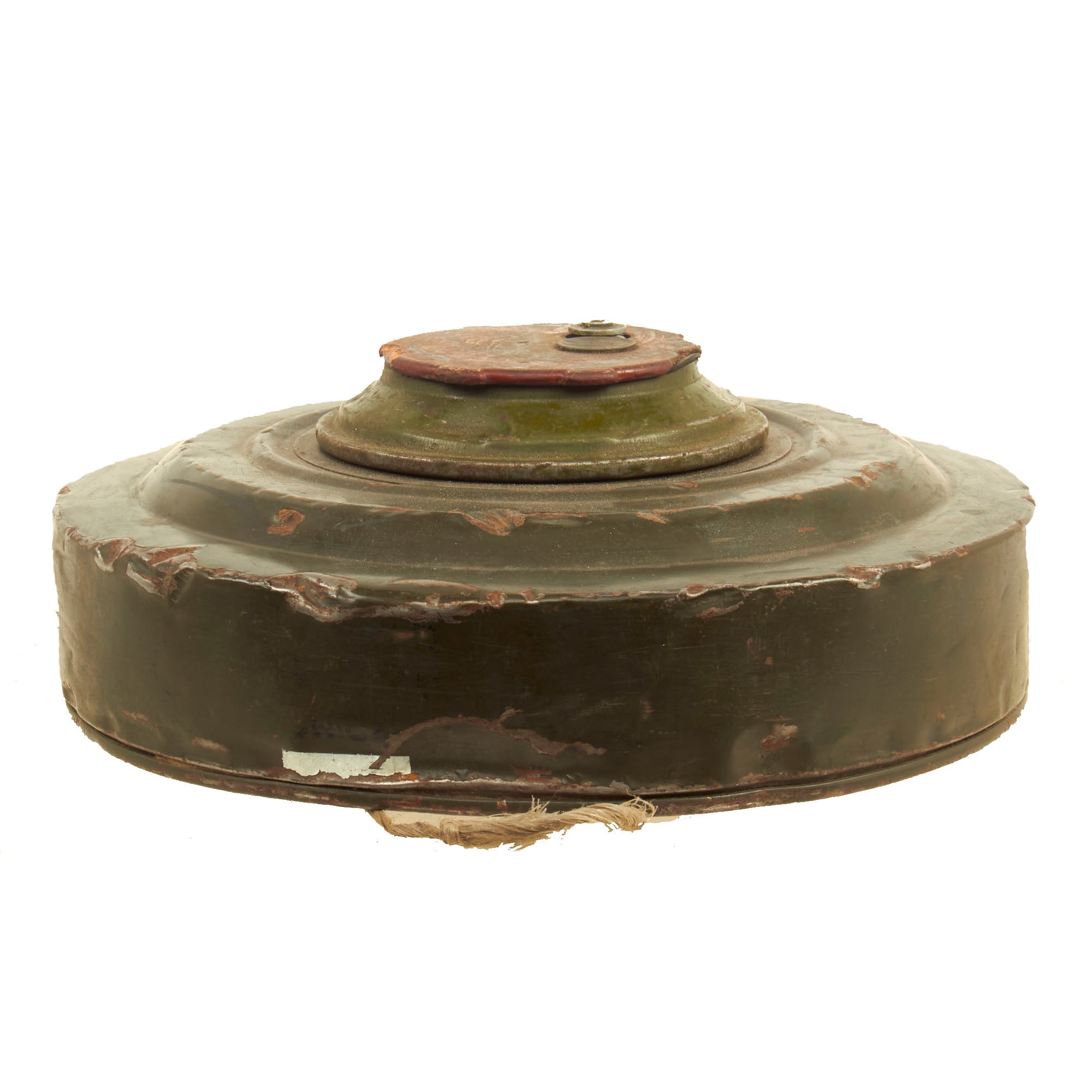 The TM-62 is a Soviet anti-tank blast mine made in many variants. It has a central fuze and typically a 7.5 kilograms (17 lb) explosive charge, but the variants vary greatly in detail. The mine can be laid manually or automatically from a mine laying machine including the PMR-1, PMR-2 wheeled towed mine layers, the GMZ-3 tracked mine laying vehicle and the VMR-2 helicopter mine laying system. The TM-62 can be fitted with the same fuzes as the TM-72, which include MVN-72 and MVN-80 fuzes which are vibration and magnetism sensitive. In a static test, the TM-62M proved capable of penetrating the hull of a Centurion tank, killing the simulated crew of animals inside. Measures approximately 12 1/4" in diameter and 5" tall.