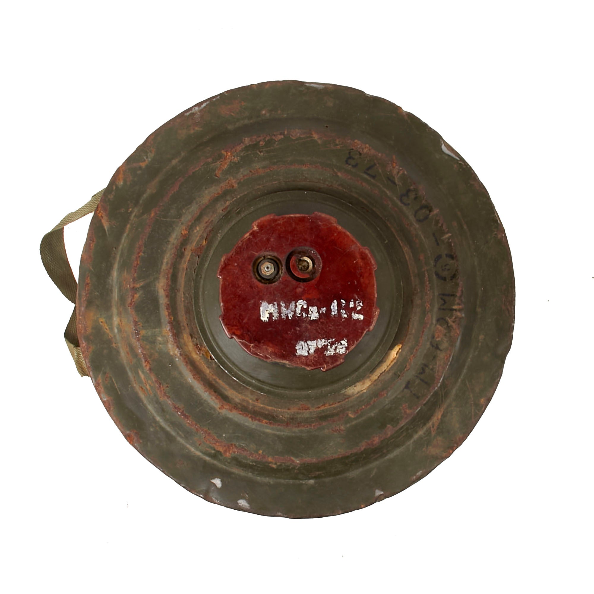 The TM-62 can be fitted with the same fuzes as the TM-72, which include MVN-72 and MVN-80 fuzes which are vibration and magnetism sensitive. In a static test, the TM-62M proved capable of penetrating the hull of a Centurion tank, killing the simulated crew of animals inside. Measures approximately 12 1/4" in diameter and 5" tall.