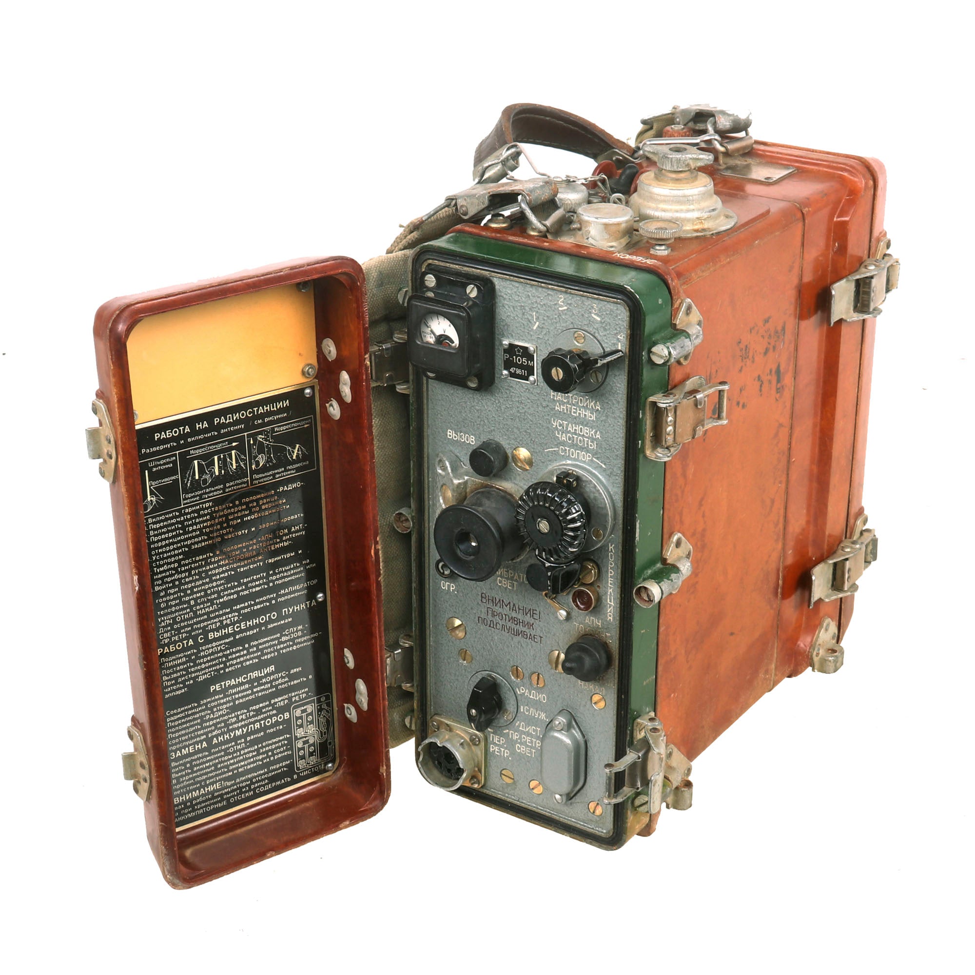 Original Item. Only One Available. The most common of all the Russian radios to be found all over the world, is the R-105 family of backpack radios. The radio is rather primitive by anybody's standards, it is not easy to use, nor does it have any saving graces save one, "If you fire one up, it usually works". First introduced in the early 1950's, it was revamped in the 1960's to use more modern materials ( D models ), and again in the 1970's ( M models ). It has been referred to by many as a slightly updated copy of captured WW II German sets and many of it's characteristics, and accessories will show this lineage.