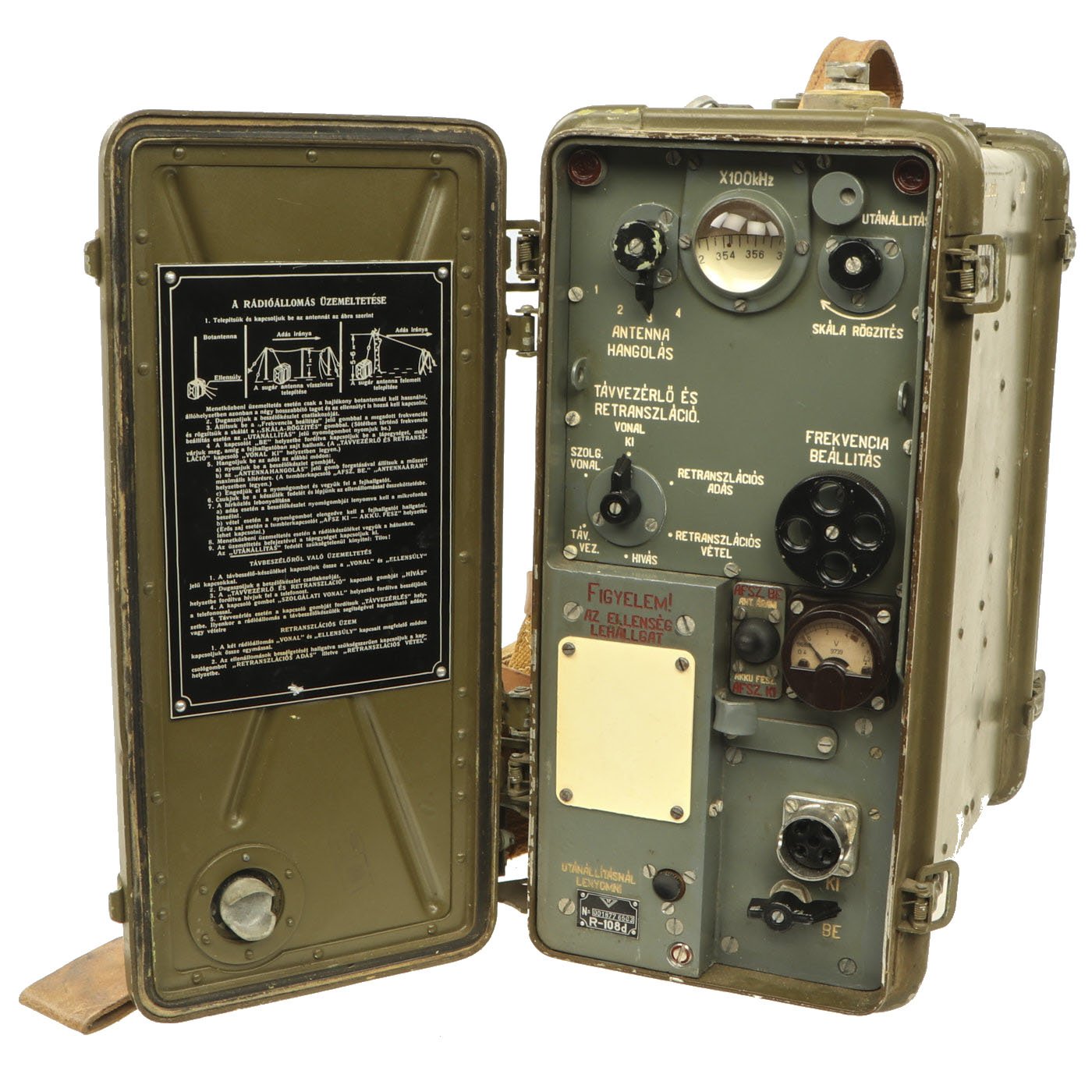 Original Item: Only One Available. The Soviet R-108D is a VHF FM transceiver was first developed in the 1948. It is one in a family of three identical models, differing only in frequency band. Primarily intended as a manpack or vehicle mounted, it was used within the Division at all levels down to Company HQ by Infantry, Artillery and AA Artillery. They were ultimately replaced by the R-105M to R-109M sets.