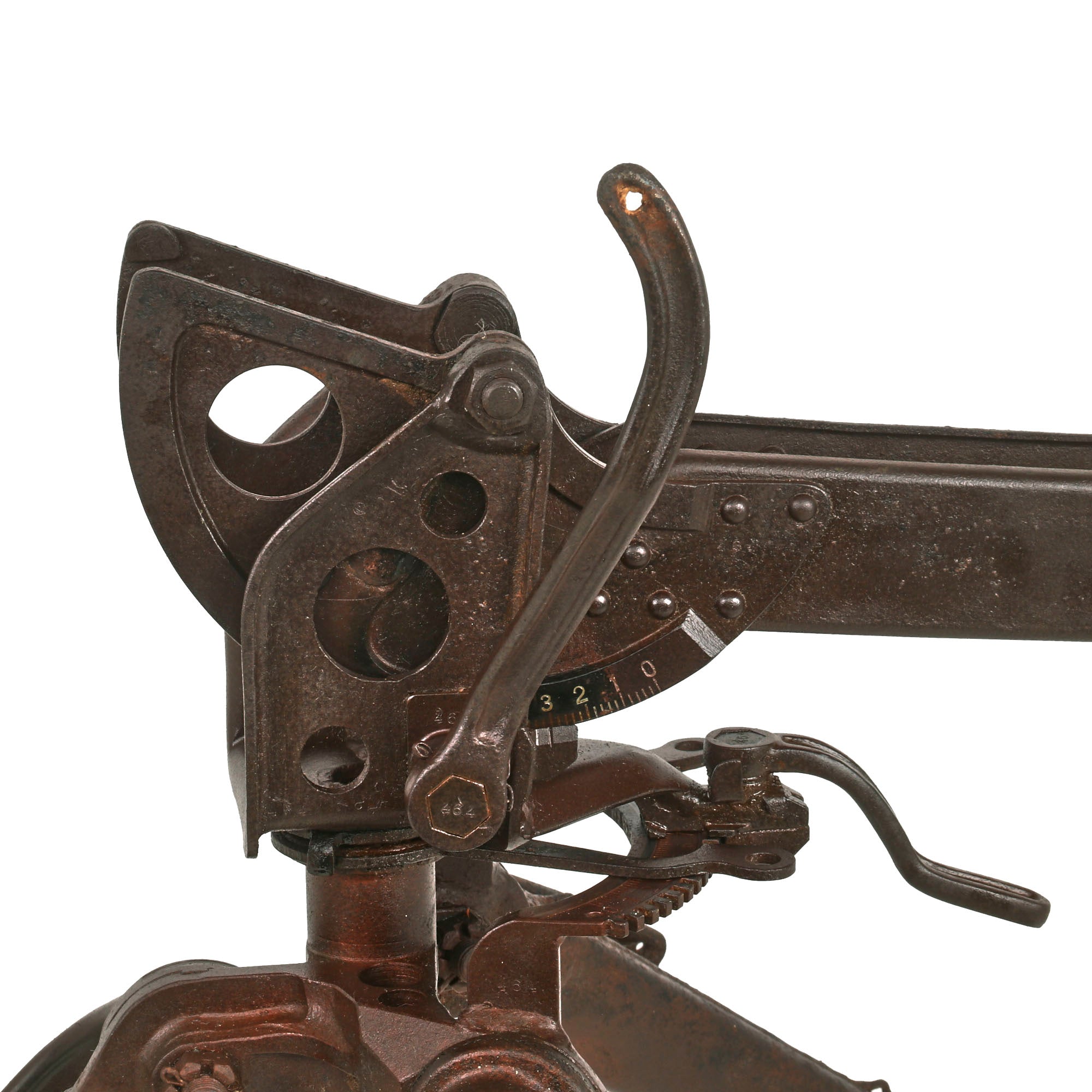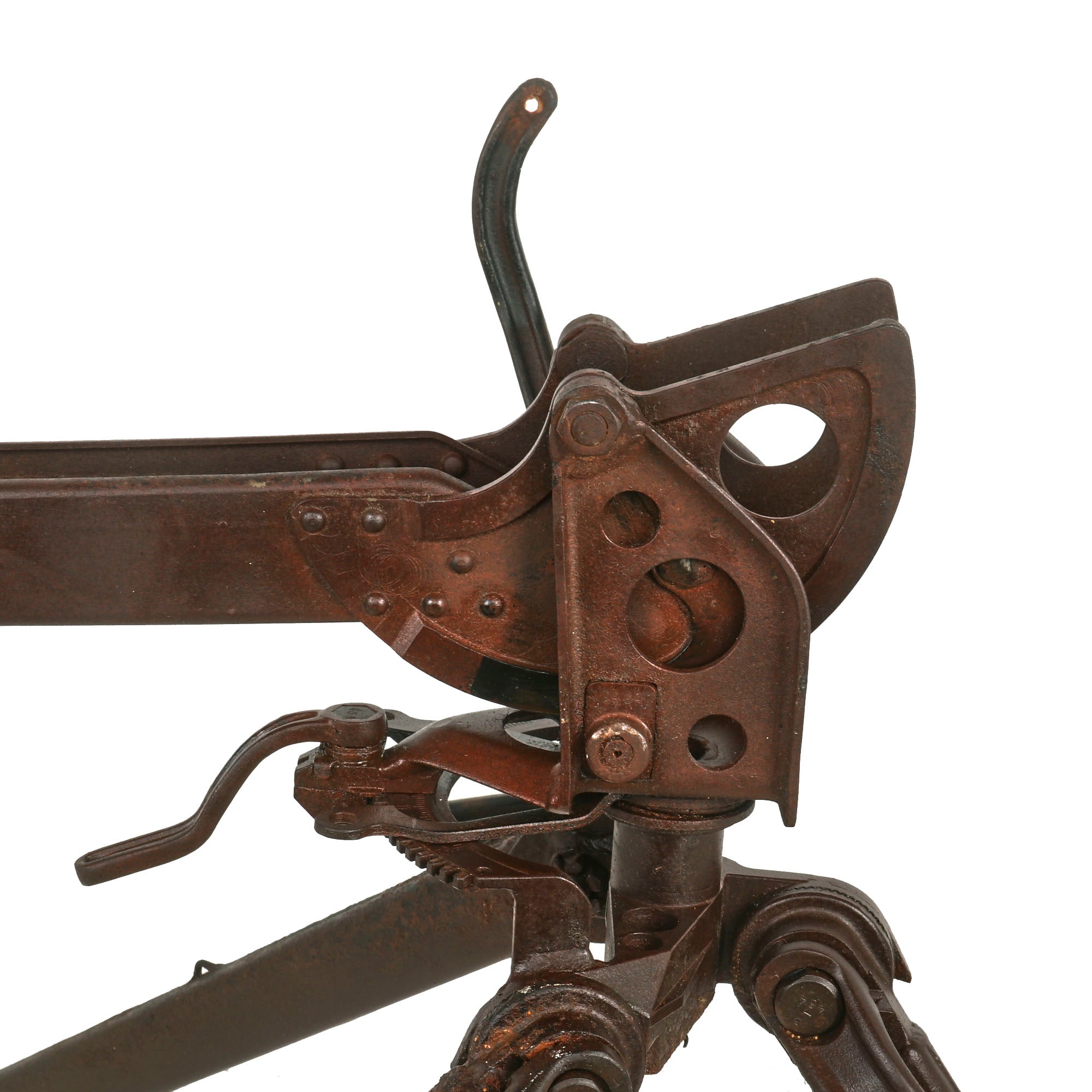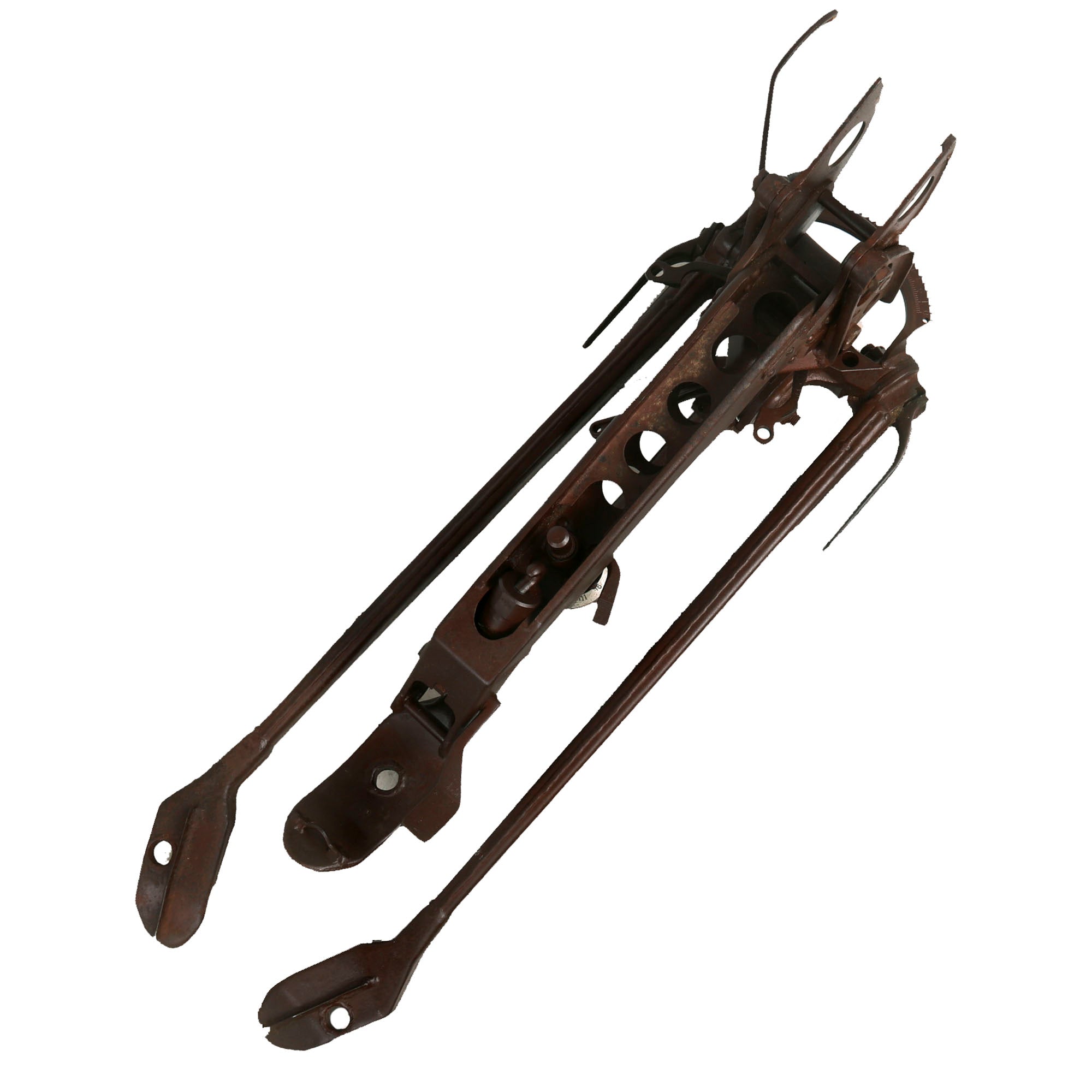 Original Item: Only One Available. This is a lovely cold war issue folding tripod for the Soviet SG-43 / SGM "Goryunov", a medium machine gun design developed during the second world war. Originally quite heavy, post war it was lightened significantly, resulting in the SGM design. This also enabled the development of lighter weight tripods, such as this lovely patinated example. Many of these were exported during the cold war and also made under license by various Warsaw Pact countries, particularly in Hungary.