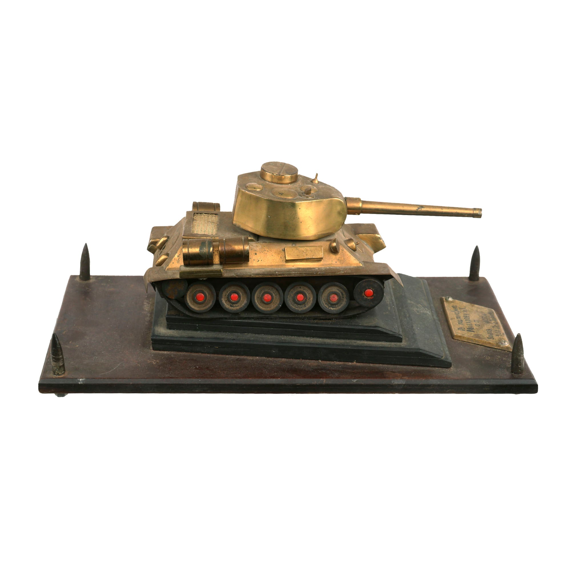 Original Item: Only One available. This is a wonderful example of a model commemorating the service of a T34 Tank Commander The display is in fantastic condition though there are some components that are bent and or loose. There is some expected cracking in the plastic base. The whole item measures approximately 12” x 7” x 5”.