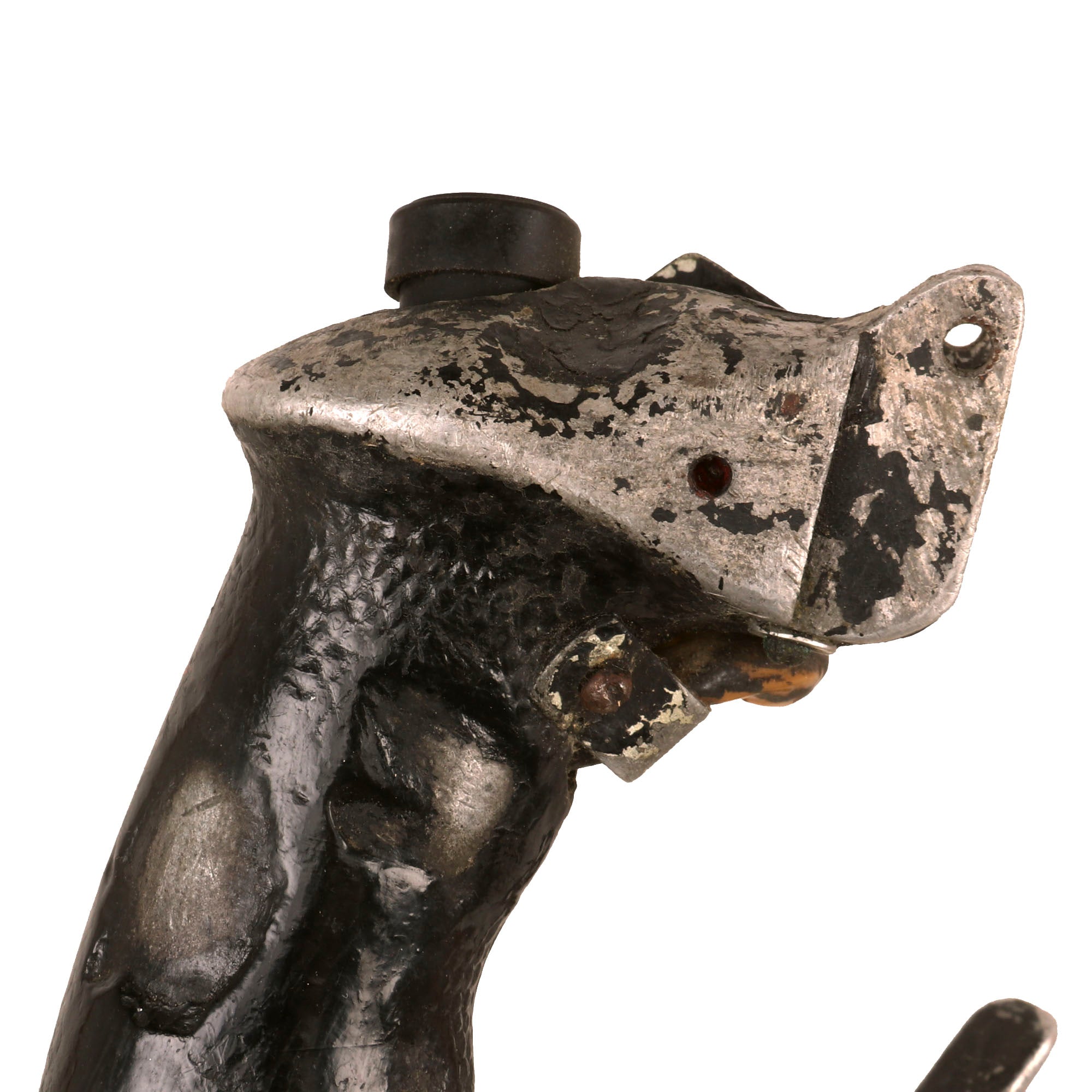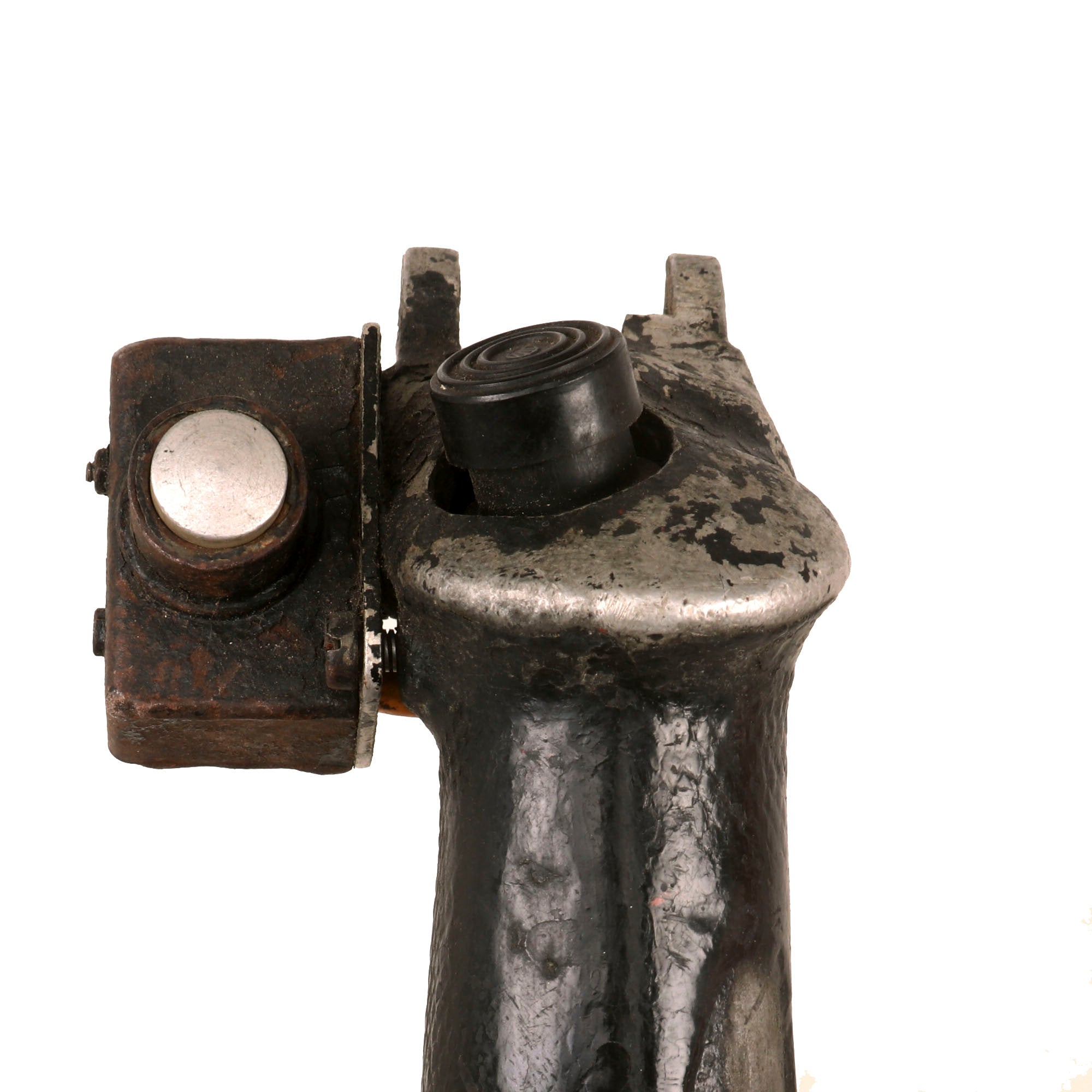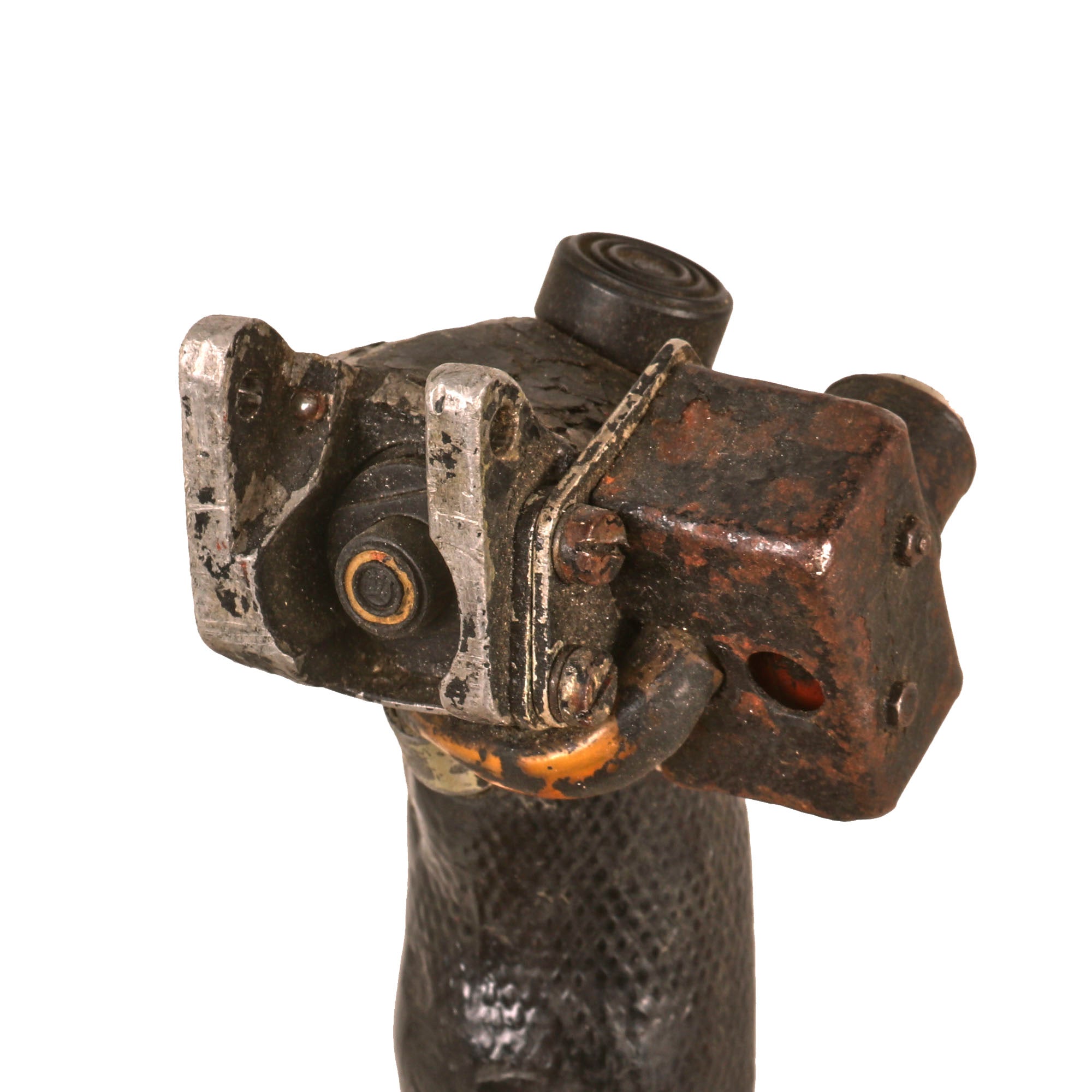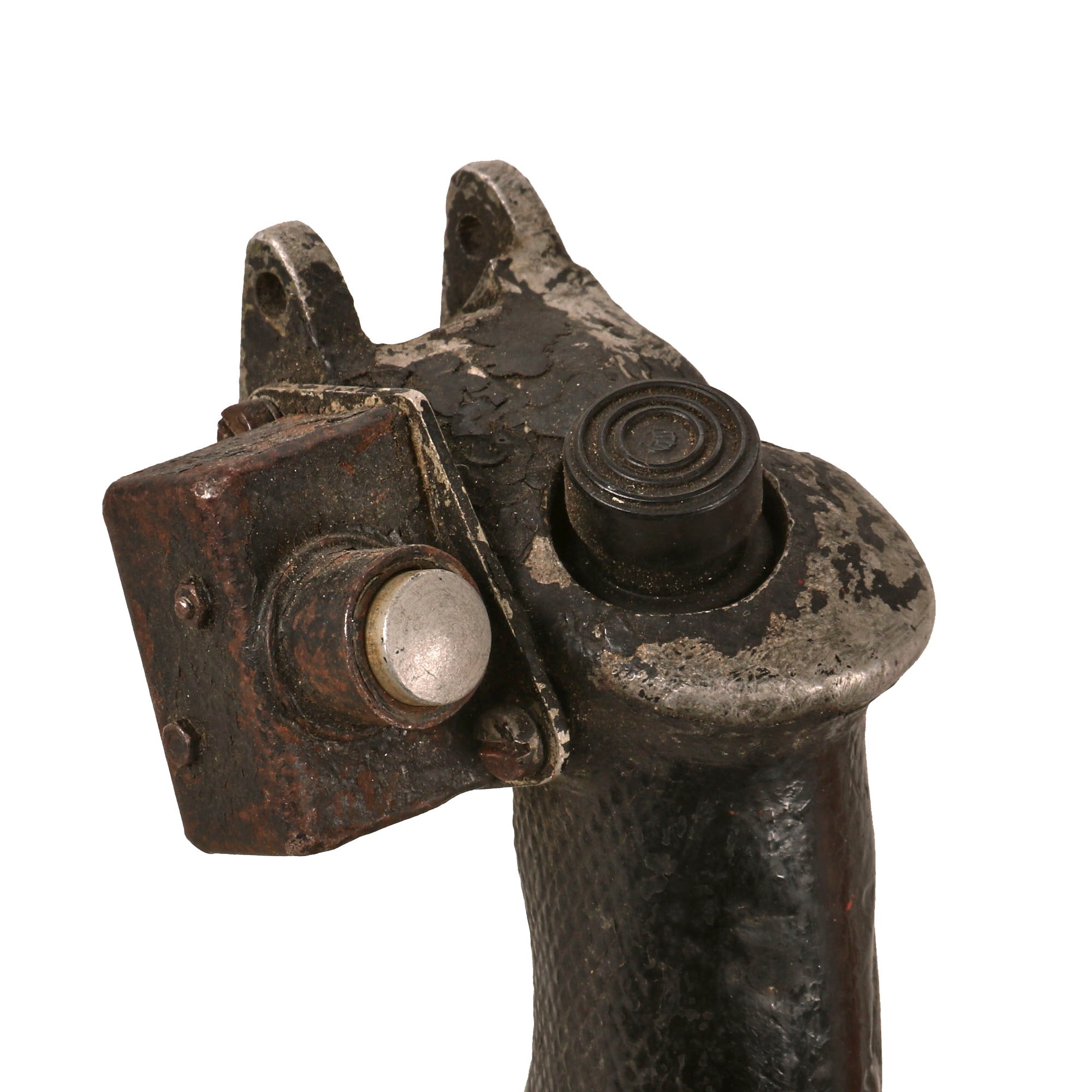Original Item. Only One Available. The Mikoyan-Gurevich MiG-15 (NATO reporting name: Fagot) is a jet fighter aircraft developed by Mikoyan-Gurevich for the Soviet Union. The MiG-15 was one of the first successful jet fighters to incorporate swept wings to achieve high transonic speeds. In aerial combat during the Korean War, it outclassed straight-winged jet day fighters, which were largely relegated to ground-attack roles. In response to the MiG-15's appearance and in order to counter it, the United States Air Force rushed the North American F-86 Sabre to Korea.When refined into the more advanced MiG-17, the basic design would again surprise the West when it proved effective against supersonic fighters such as the Republic F-105 Thunderchief and McDonnell Douglas F-4 Phantom II in the Vietnam War of the 1960s.The MiG-15 is believed to have been one of the most produced jet aircraft with more than 13,000 manufactured. The MiG-15 remains in service with the Korean People's Army Air Force as an advanced trainer.This is a tremendous display piece, the control stick assembly of a Soviet MiG-15, which is in rough condition and missing the flip-down machine gun trigger. The stick shows heavy service use, and retains the Wheelbrake which has been set up with the display stand to actually function. The control stick for the MiG-15 was loosely copied from the German BF-109 control stick, and their similarities are clear.The stick retains the primary button and the side button attached with a small box. There is very little reference to the control stick of the MiG-15 as it was but a stepping stone in the MiG jet development. The stick on its display base measures roughly 22½” tall, and the base is roughly 6 x 7”. The stick retains some of its original paint but there is some heavy loss as shown. There is also some material loss on one side of the grip.This is an extraordinarily scarce piece in great service-used condition. Comes ready for further research and display!The first turbojet fighter developed by Mikoyan-Gurevich OKB was the Mikoyan-Gurevich MiG-9, which appeared in the years immediately after World War II. It used a pair of reverse-engineered German BMW 003 engines. The MiG-9 was a troublesome design that suffered from weak, unreliable engines and control problems. Categorized as a first-generation jet fighter, it was designed with the straight-style wings common to piston-engined fighters.In 1946 Soviet engine technology was far behind the West's. The Germans had been unable to develop airworthy turbojets with thrust over 1,130 kilograms-force (11,100 N; 2,500 lbf) capable of running for more than a few hours at the time of the surrender in May 1945, which limited the performance of immediate Soviet postwar jet aircraft designs. The Soviet aviation minister Mikhail Khrunichev and aircraft designer A. S. Yakovlev suggested to Premier Joseph Stalin that the USSR buy the reliable, fully developed, Rolls-Royce Nene (having been alerted to the fact that the UK Labour government wanted to improve post-war UK-Russia foreign relations) for the purpose of copying them in a minimum of time. Stalin is said to have replied, "What fool will sell us his secrets?"However, he gave his consent to the proposal and Mikoyan, engine designer Vladimir Yakovlevich Klimov, and others travelled to the United Kingdom to request the engines. To Stalin's amazement, the British Labour government and its Minister of Trade, Sir Stafford Cripps, were perfectly willing to provide technical information and a license to manufacture the Rolls-Royce Nene. Sample engines were purchased and delivered with blueprints. Following evaluation and adaptation to Russian conditions, the windfall technology was tooled for mass-production as the Klimov RD-45 to be incorporated into the MiG-15.