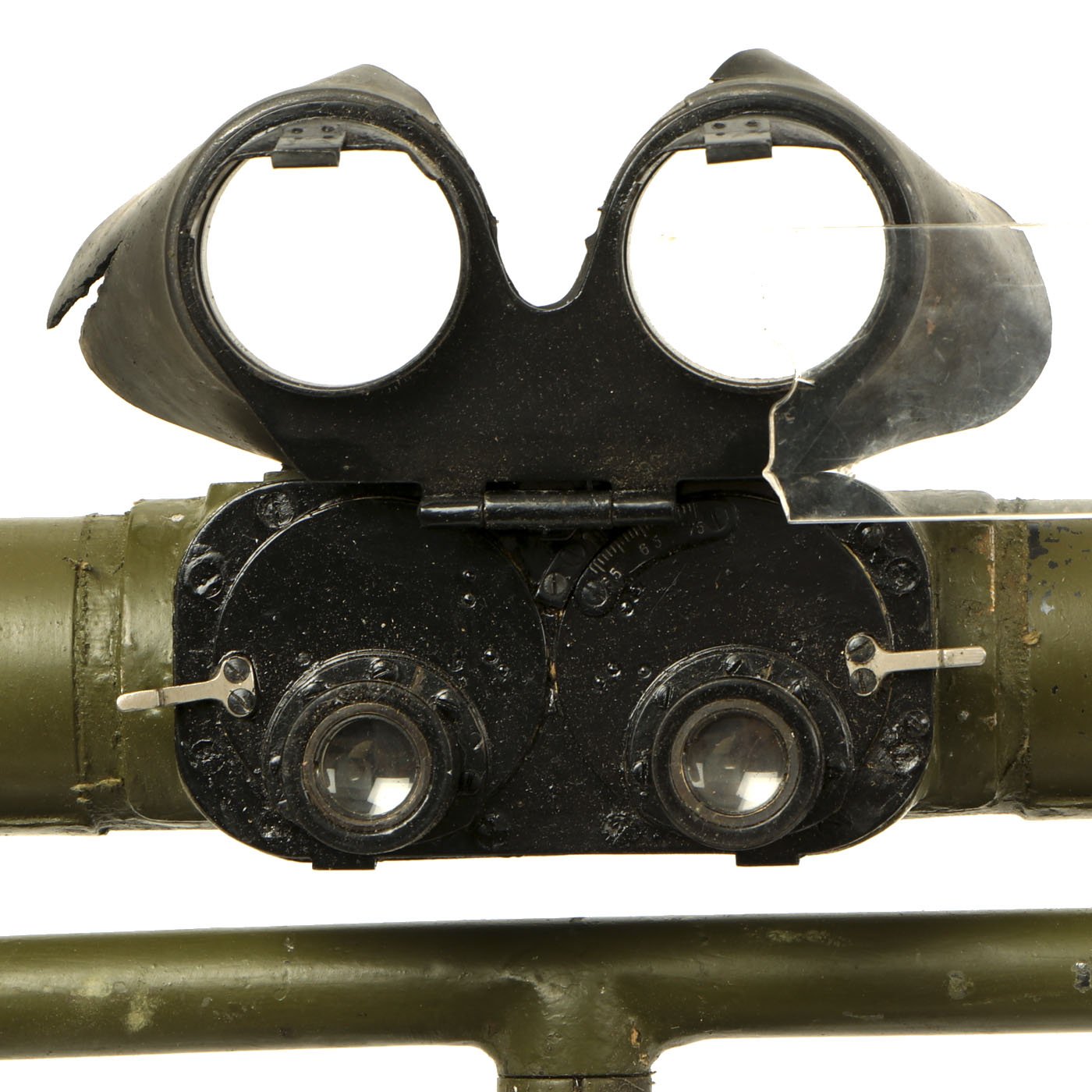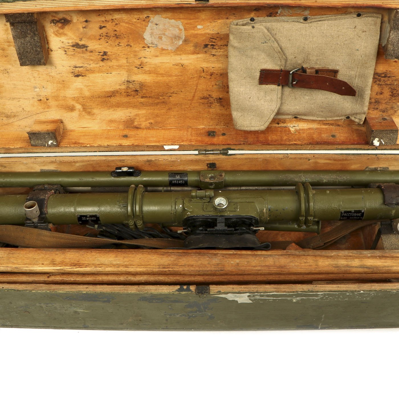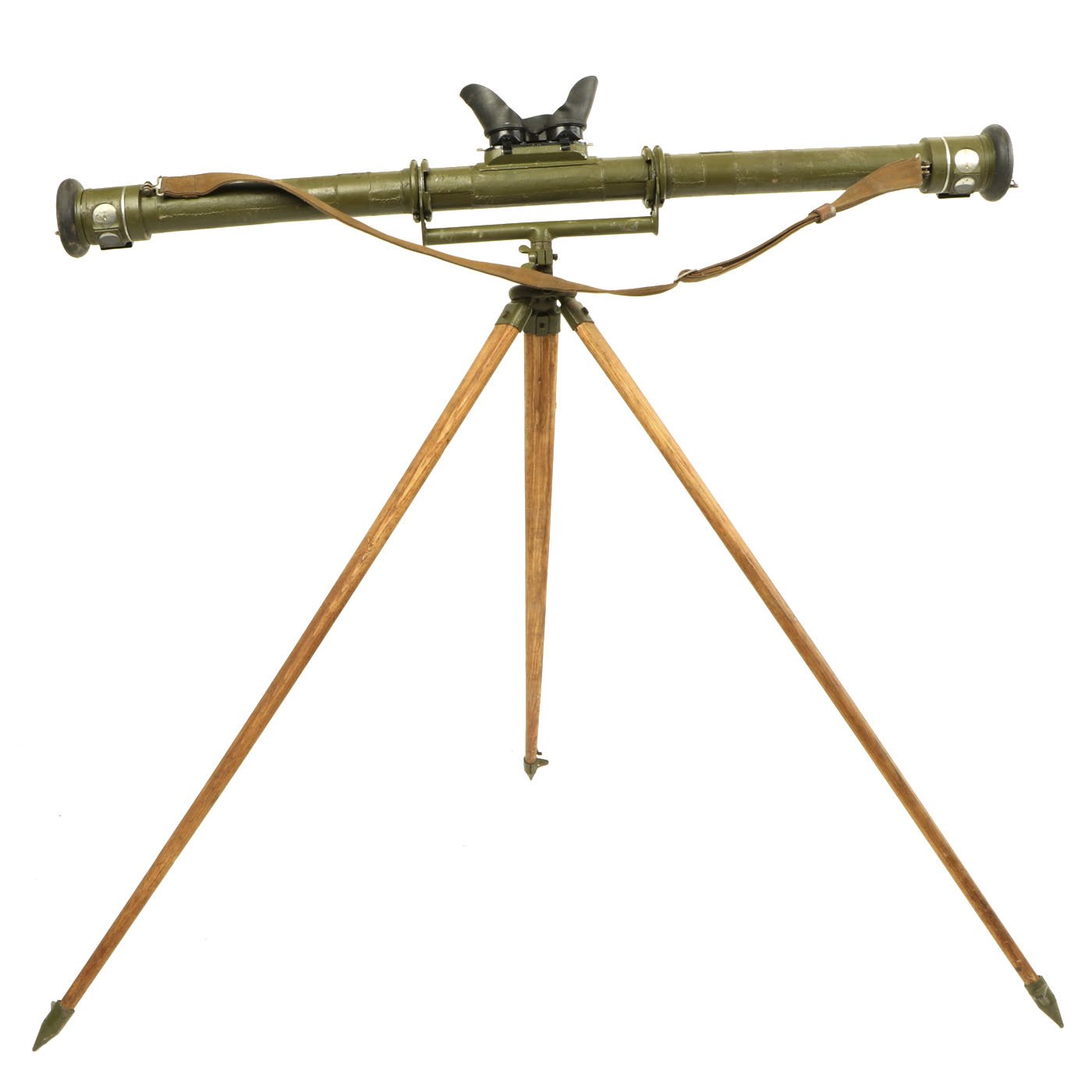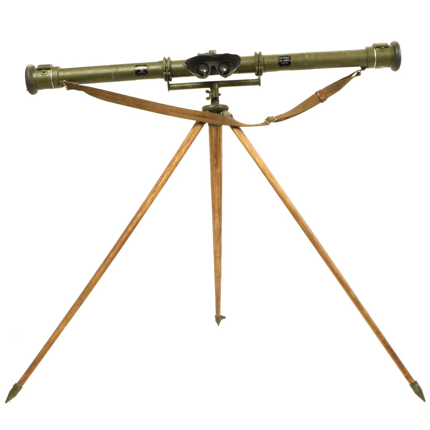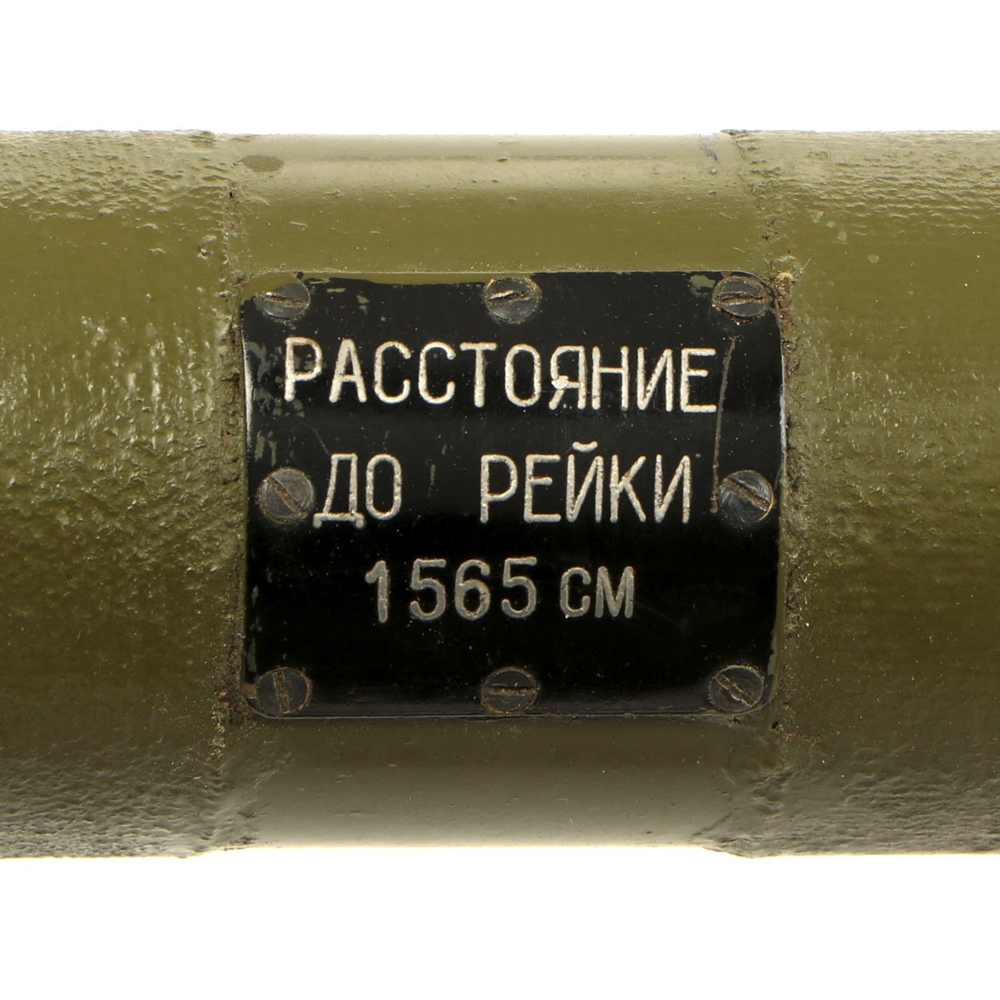 Original Item: Only One Available. This is a fantastic Cold War era rangefinder produced for the Soviet military. It measures approximately 44" in length and has a wood tripod with legs that measure approximately 40". Features original data plates, one with a hammer and sickle and original wood transit chest.